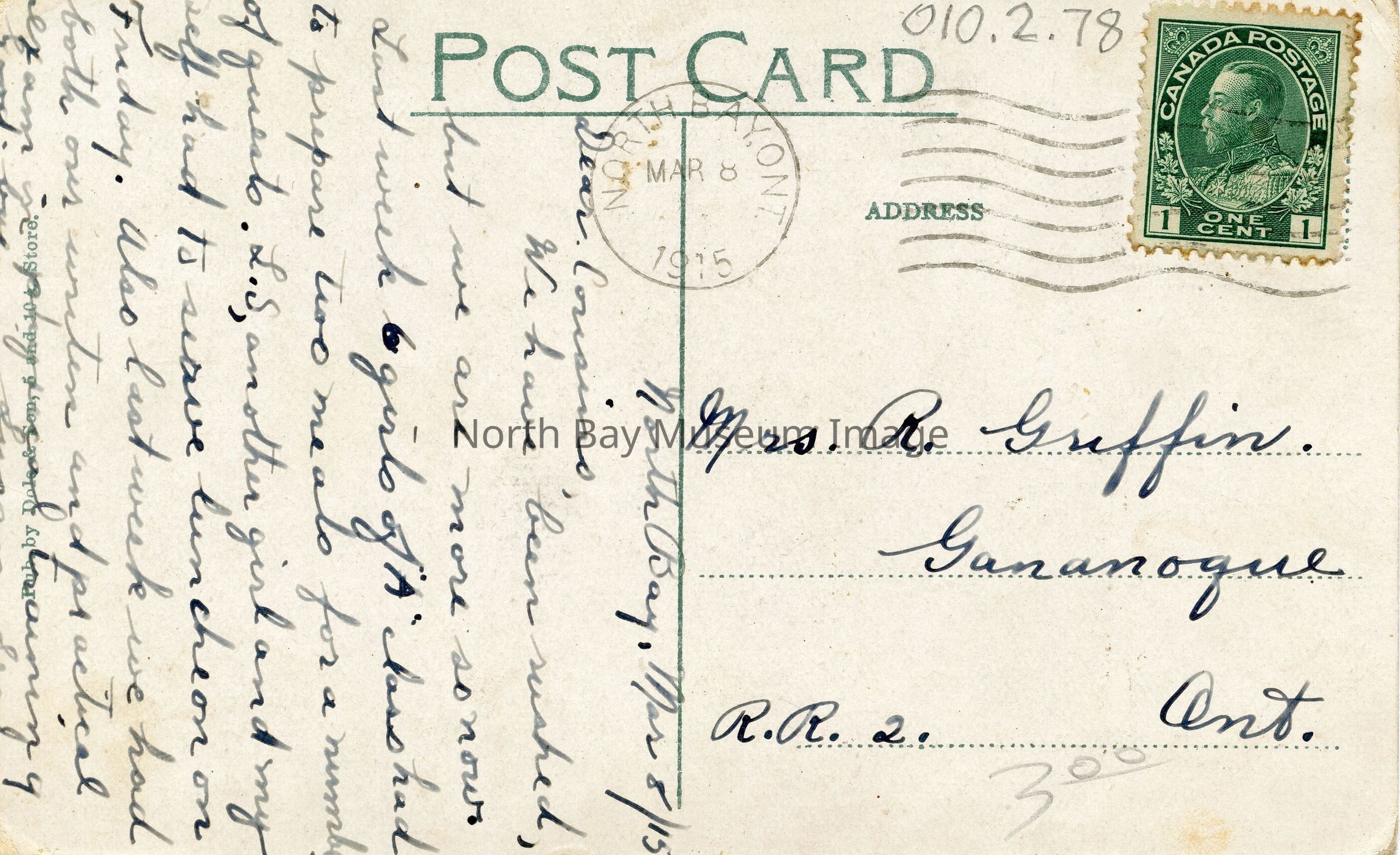 Postmark: North Bay, Ont., Mar 8 1915
