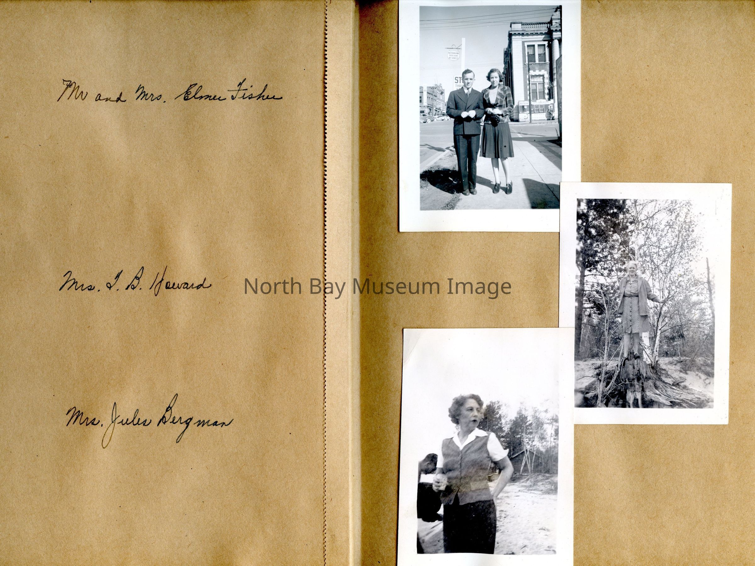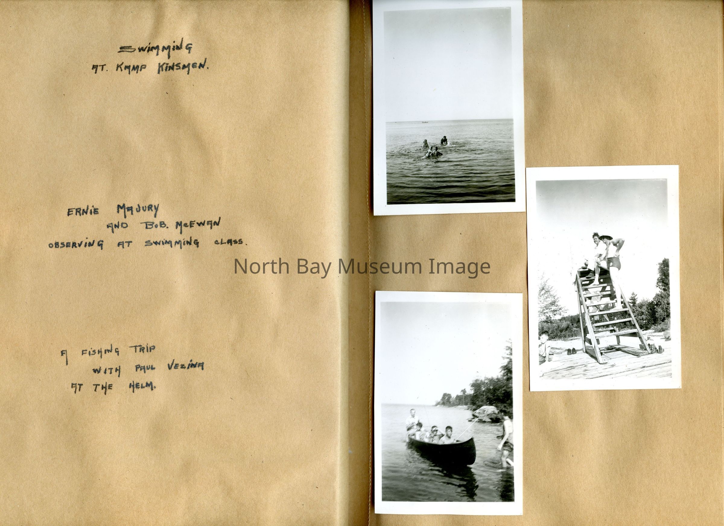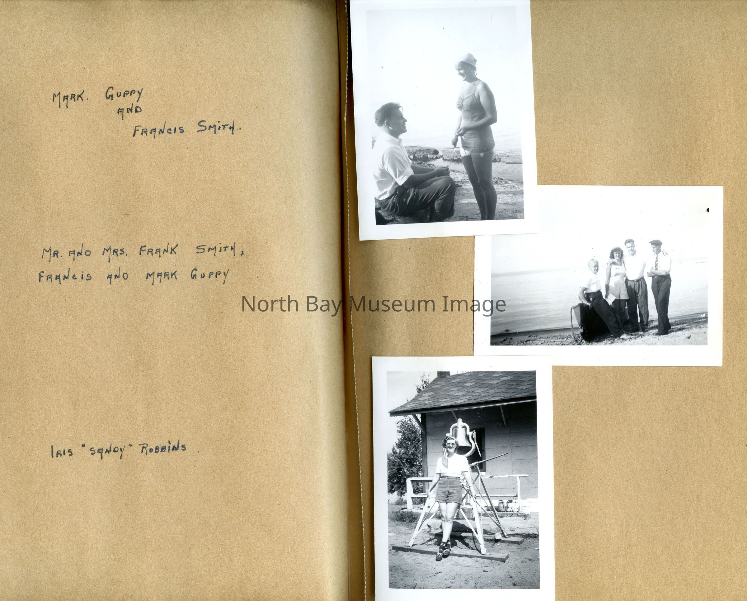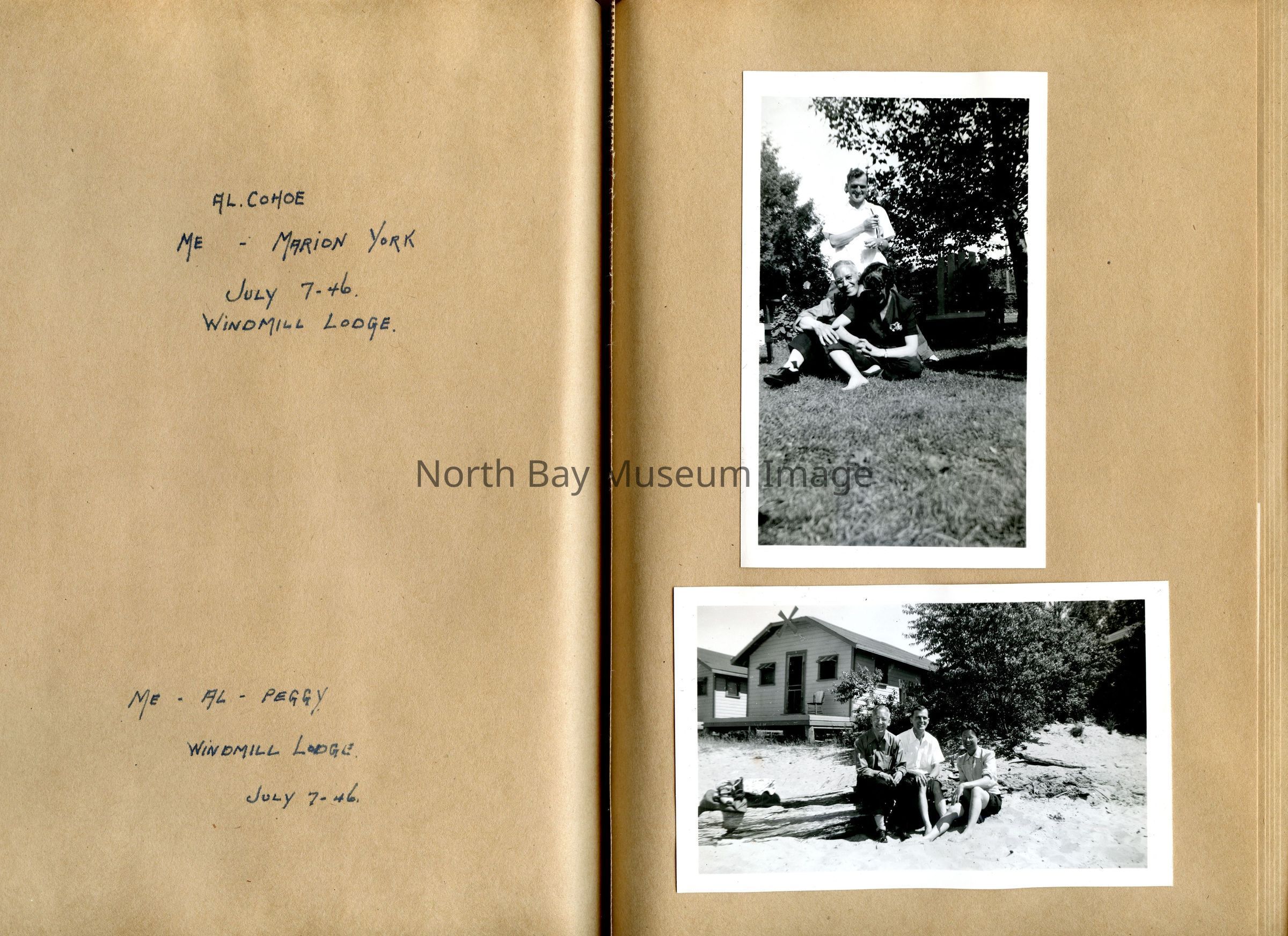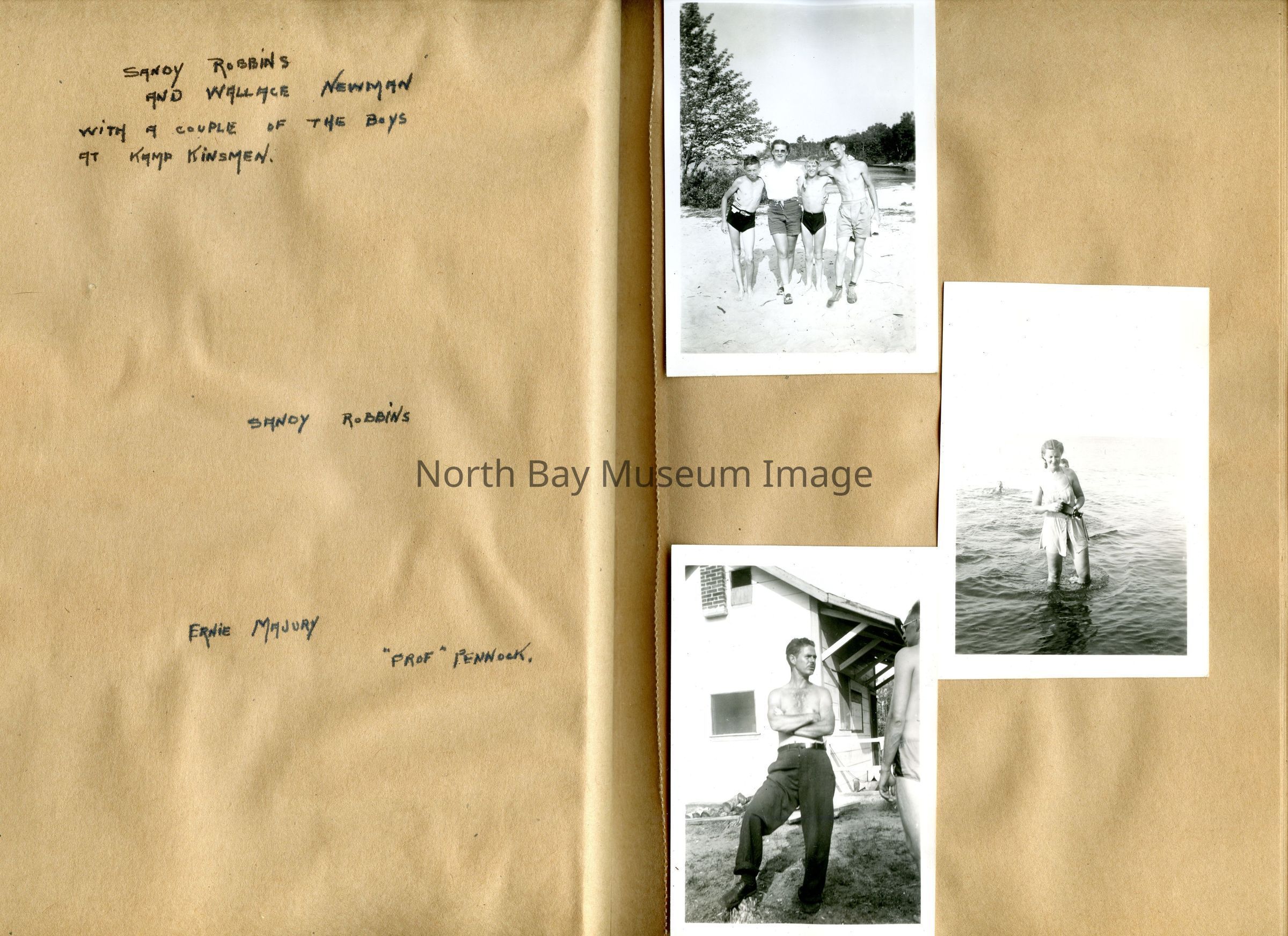 Includes photos of Camp Tillicum and Kamp Kinsmen, Dorothy Hicks, Marion York, Mr. and Mrs Robinson, Mr and Mrs Fisher, Mrs Howard, Julies Bergman, Harold Harobin, Doris and John Smorithwaite, Jack Barnaby, Jack Huntington, Robinson family, Windmill lodge, York family, paul and pauline vezina, wallace newman, ted pyett, Caswell family, and more.