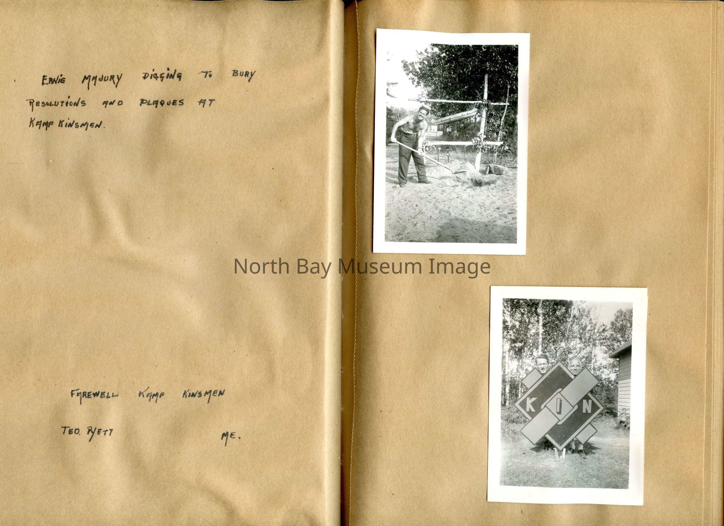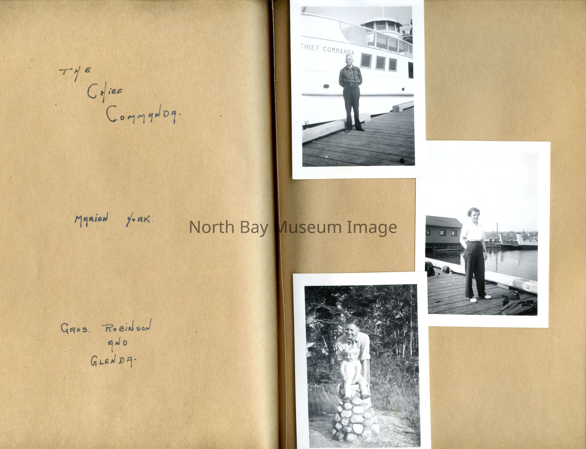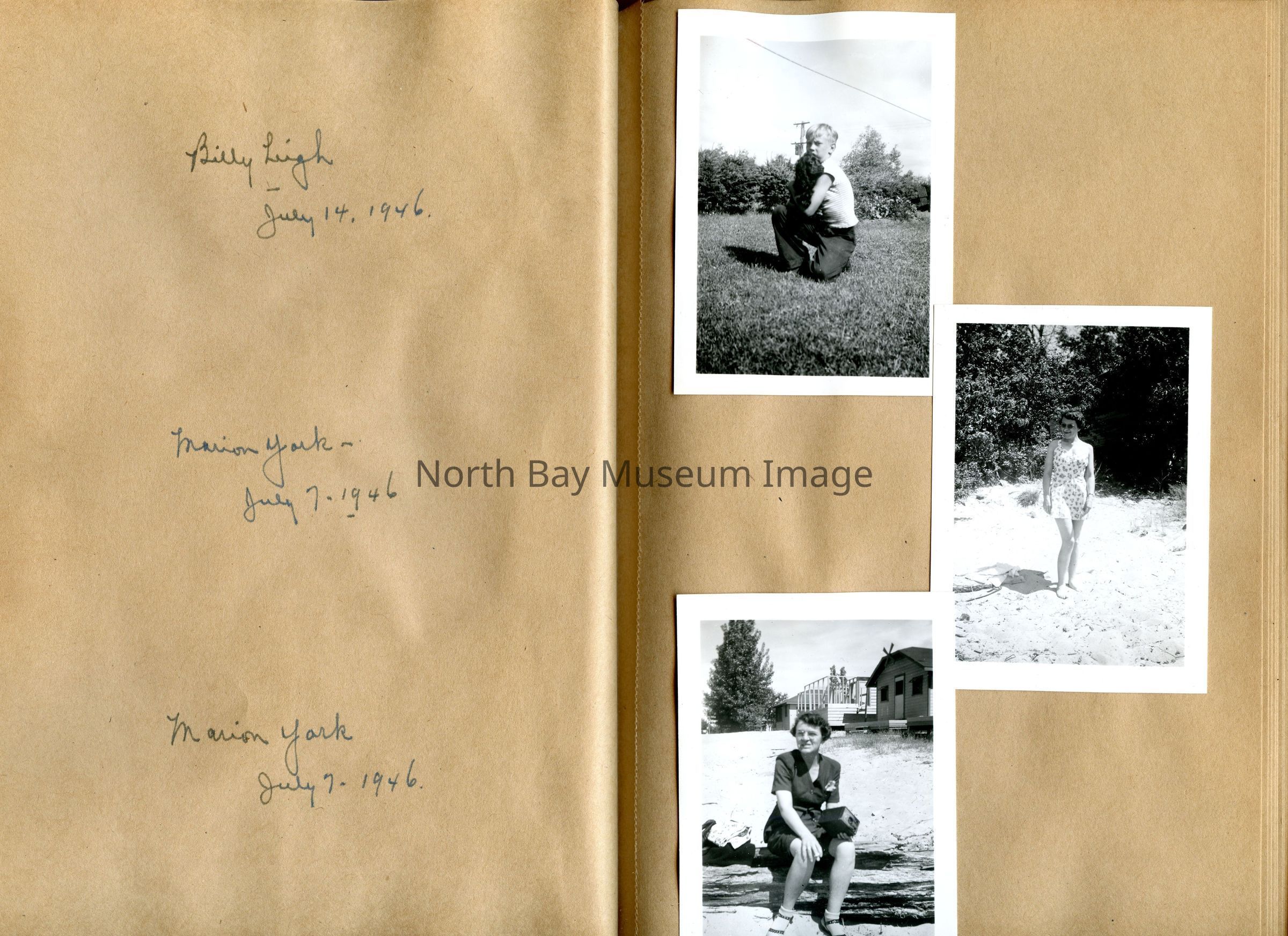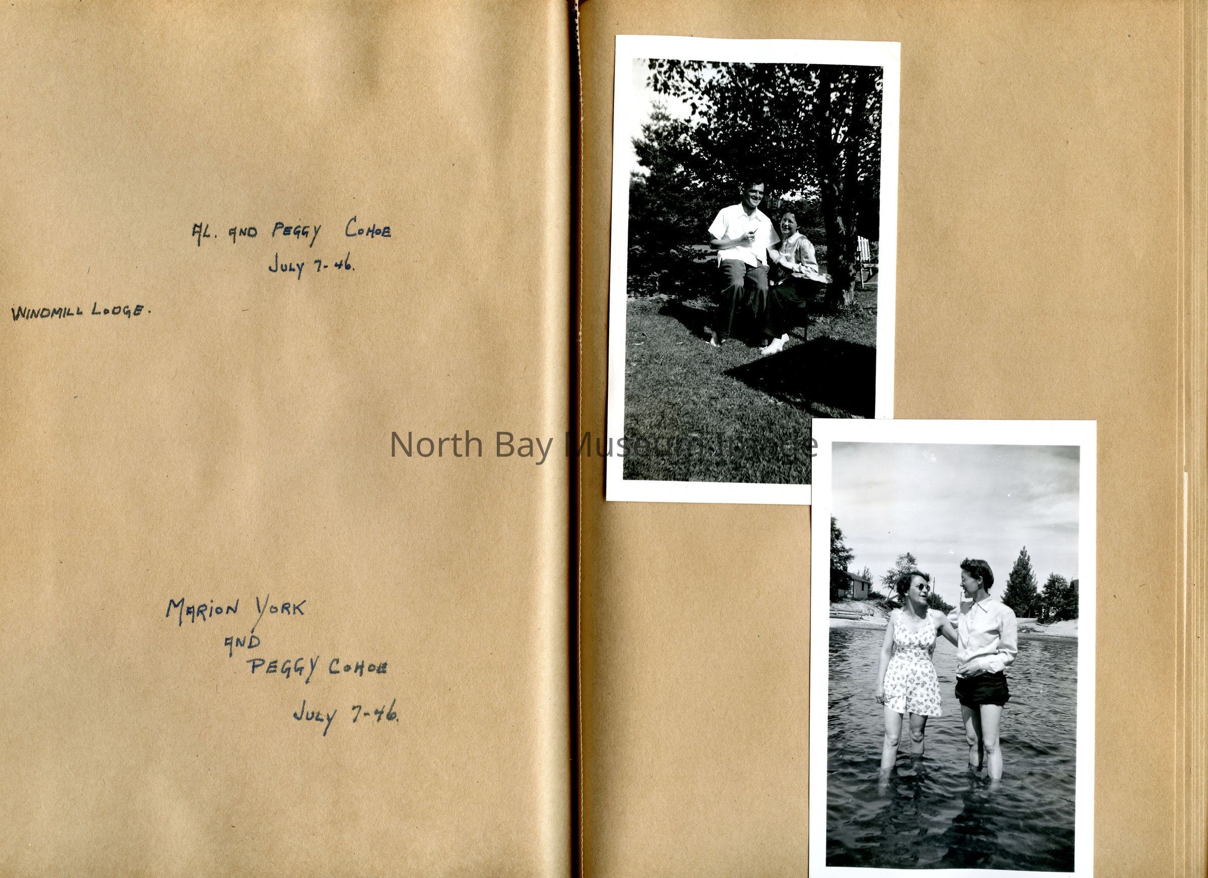 Includes photos of Camp Tillicum and Kamp Kinsmen, Dorothy Hicks, Marion York, Mr. and Mrs Robinson, Mr and Mrs Fisher, Mrs Howard, Julies Bergman, Harold Harobin, Doris and John Smorithwaite, Jack Barnaby, Jack Huntington, Robinson family, Windmill lodge, York family, paul and pauline vezina, wallace newman, ted pyett, Caswell family, and more.