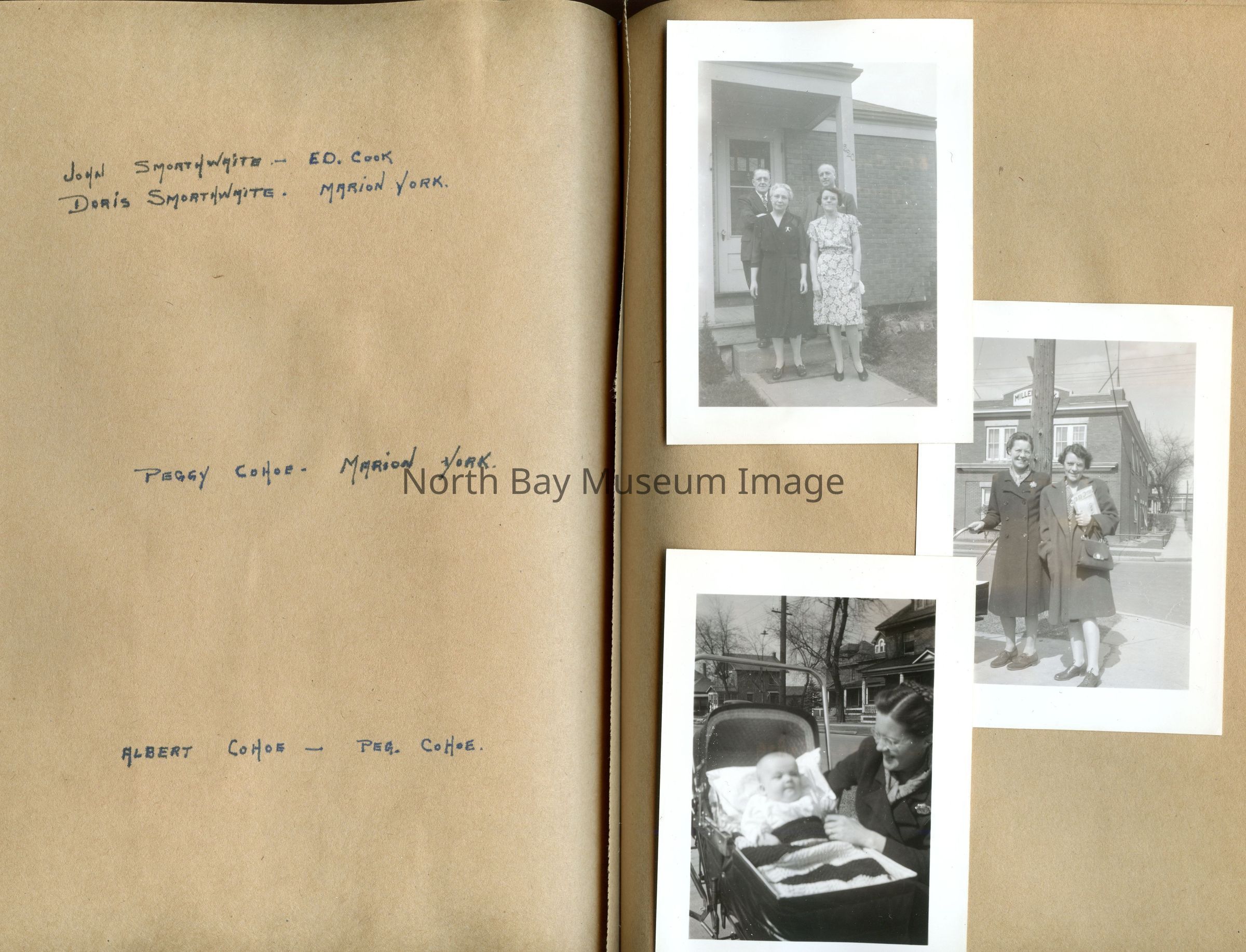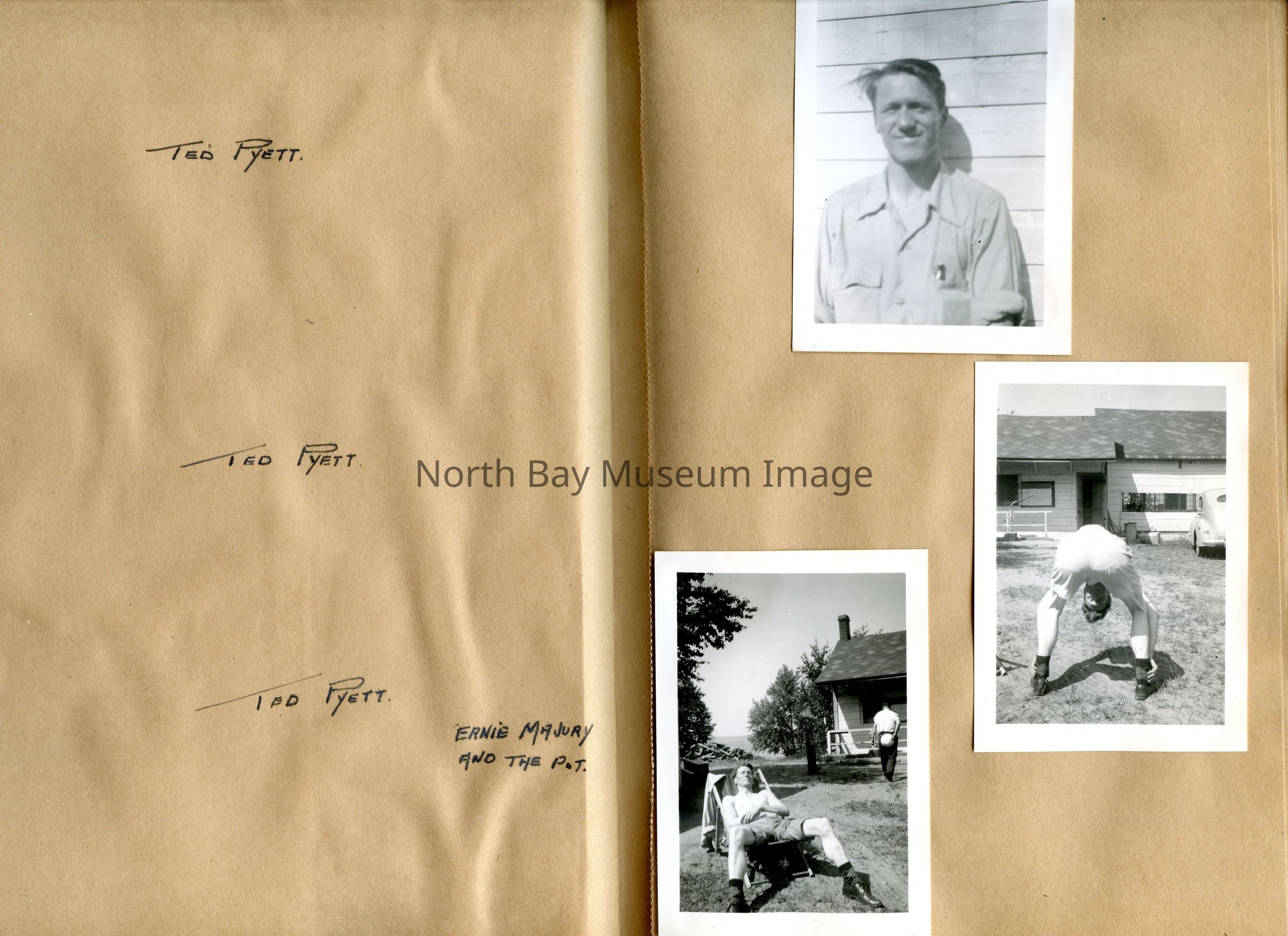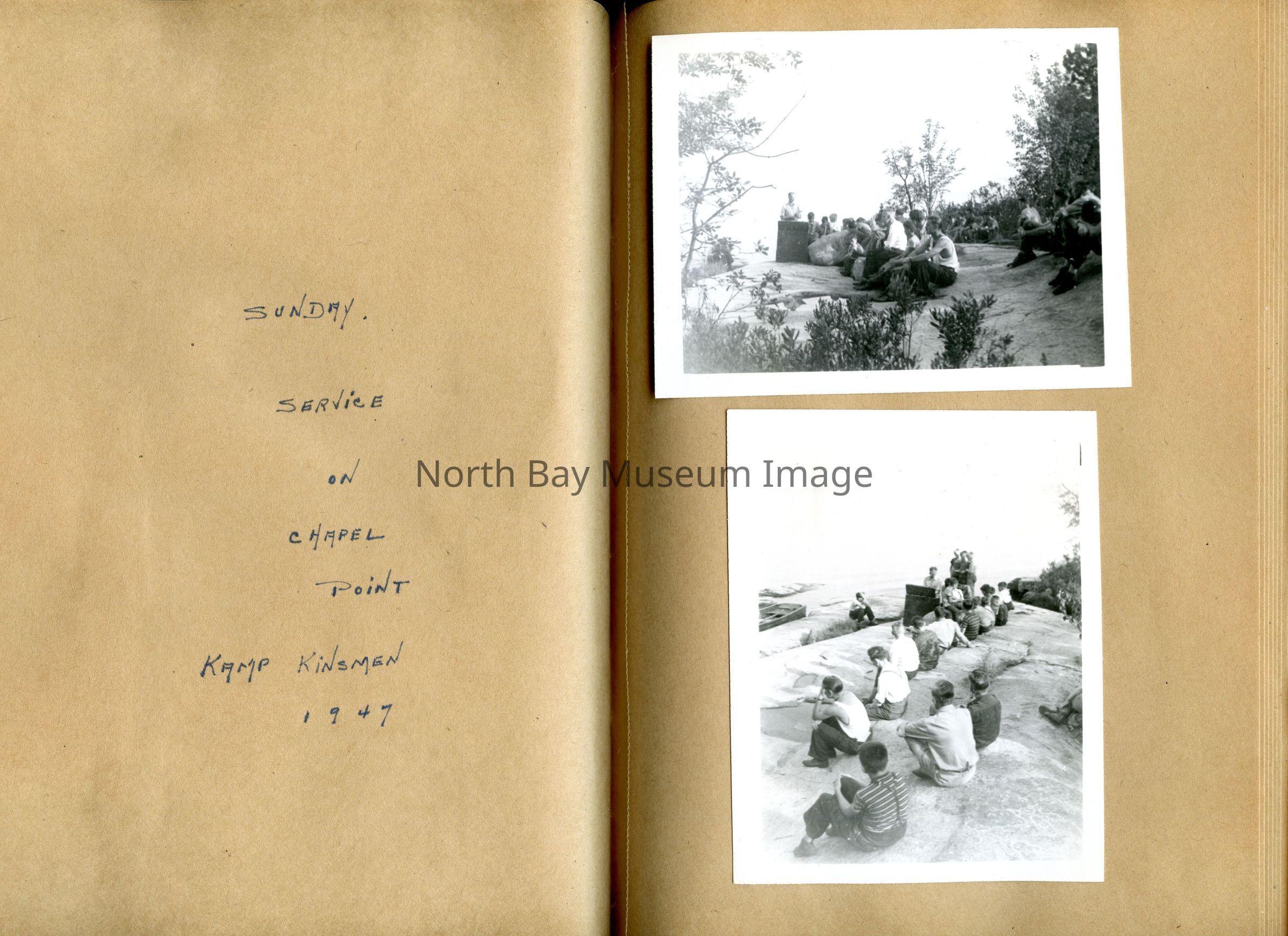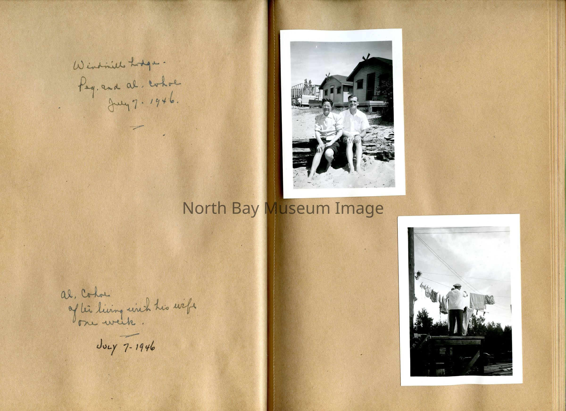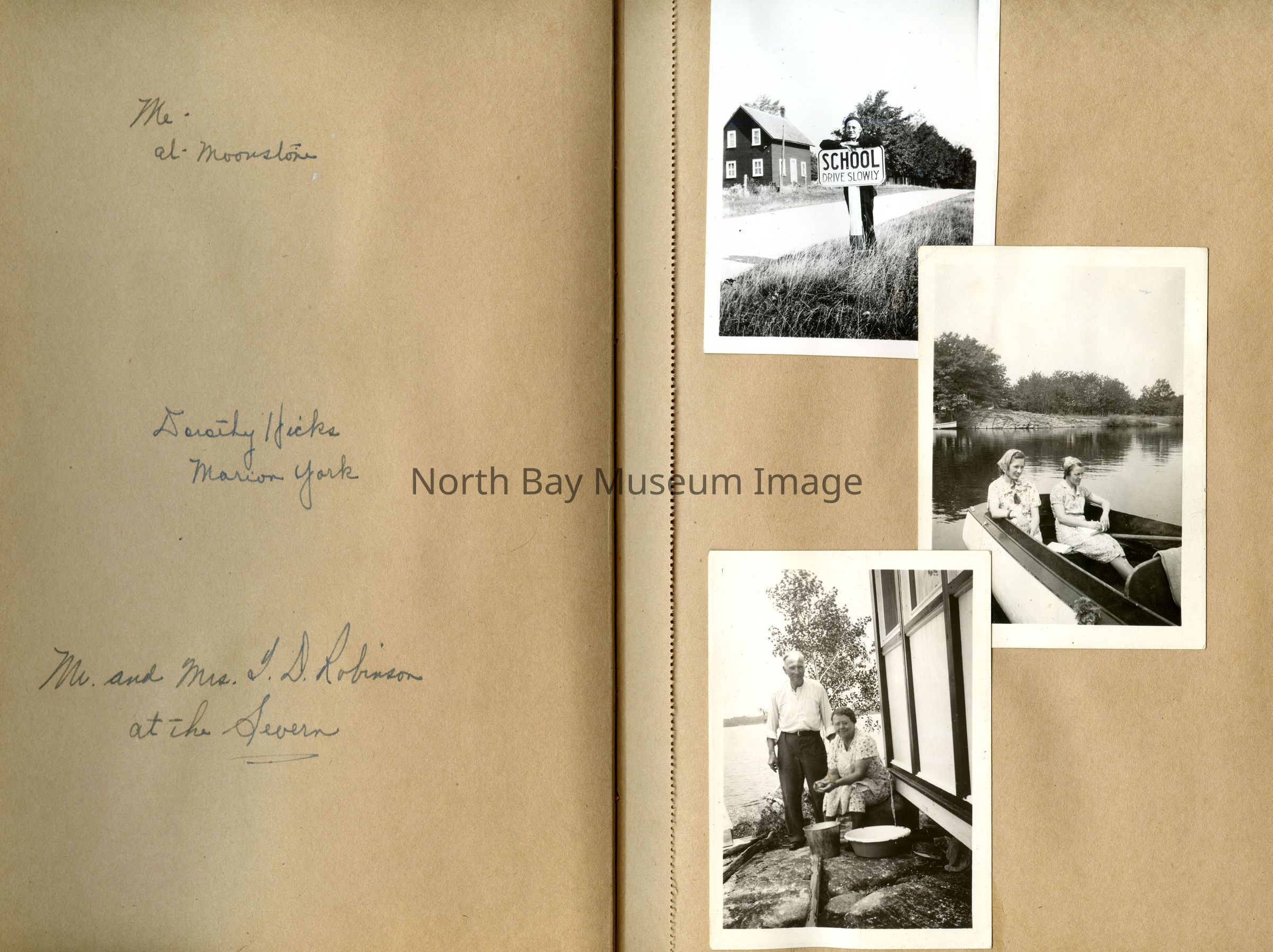 Includes photos of Camp Tillicum and Kamp Kinsmen, Dorothy Hicks, Marion York, Mr. and Mrs Robinson, Mr and Mrs Fisher, Mrs Howard, Julies Bergman, Harold Harobin, Doris and John Smorithwaite, Jack Barnaby, Jack Huntington, Robinson family, Windmill lodge, York family, paul and pauline vezina, wallace newman, ted pyett, Caswell family, and more.