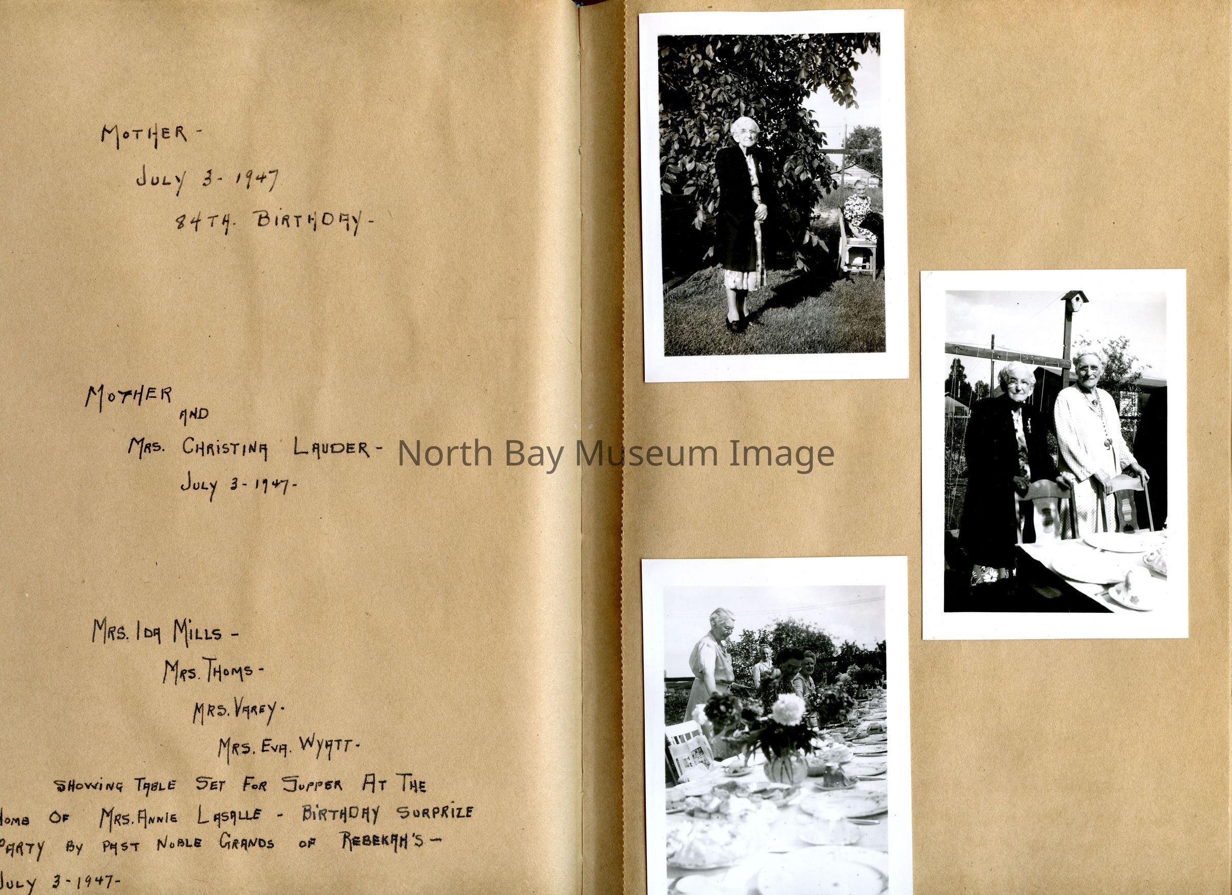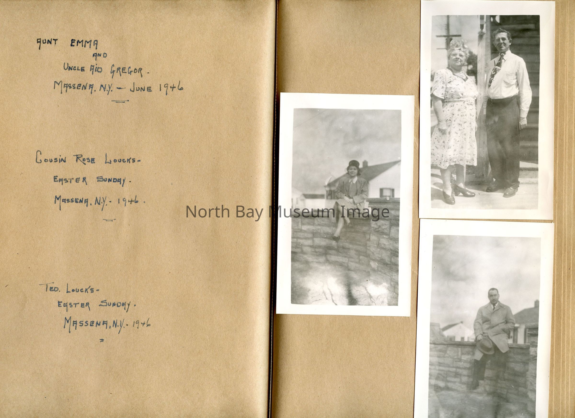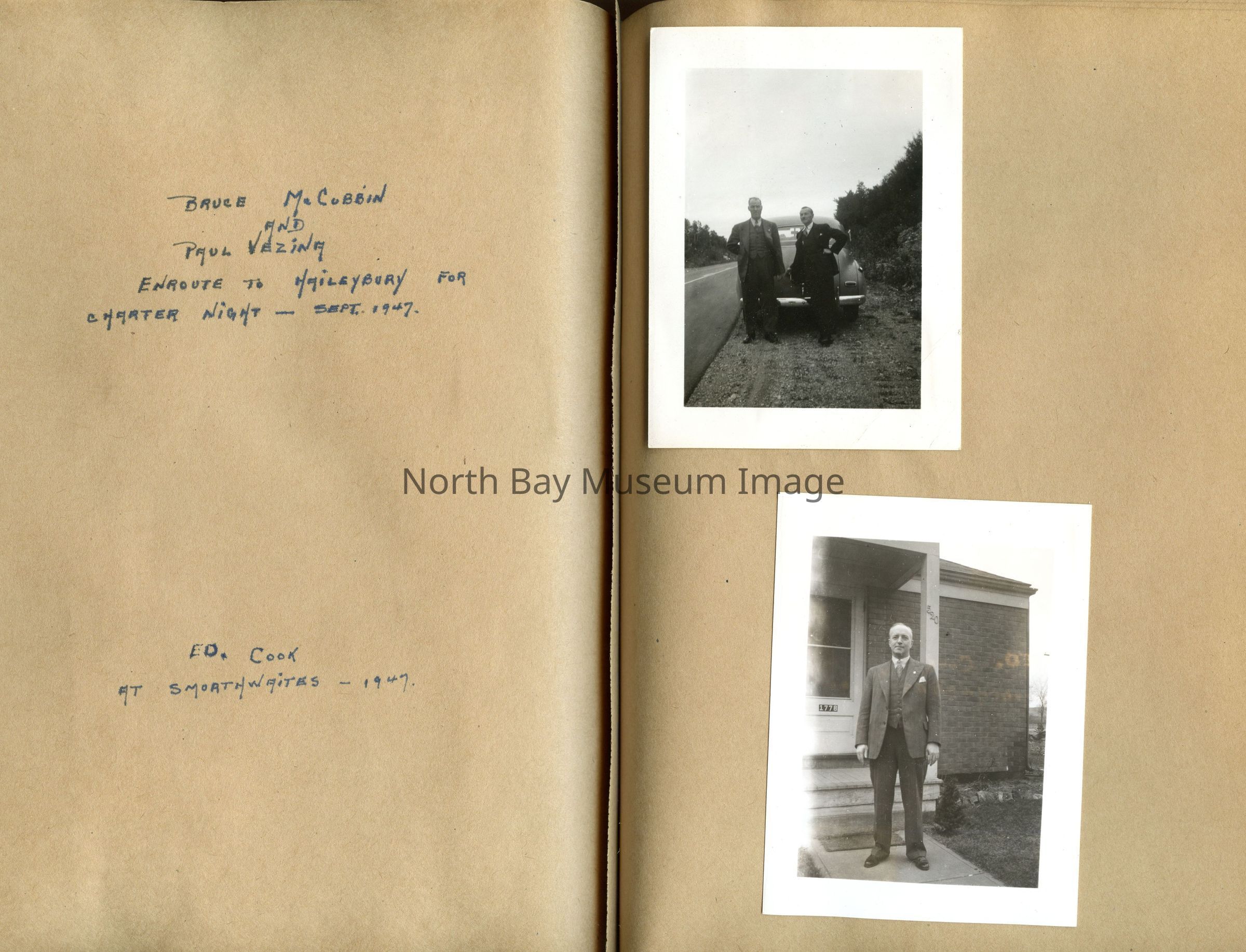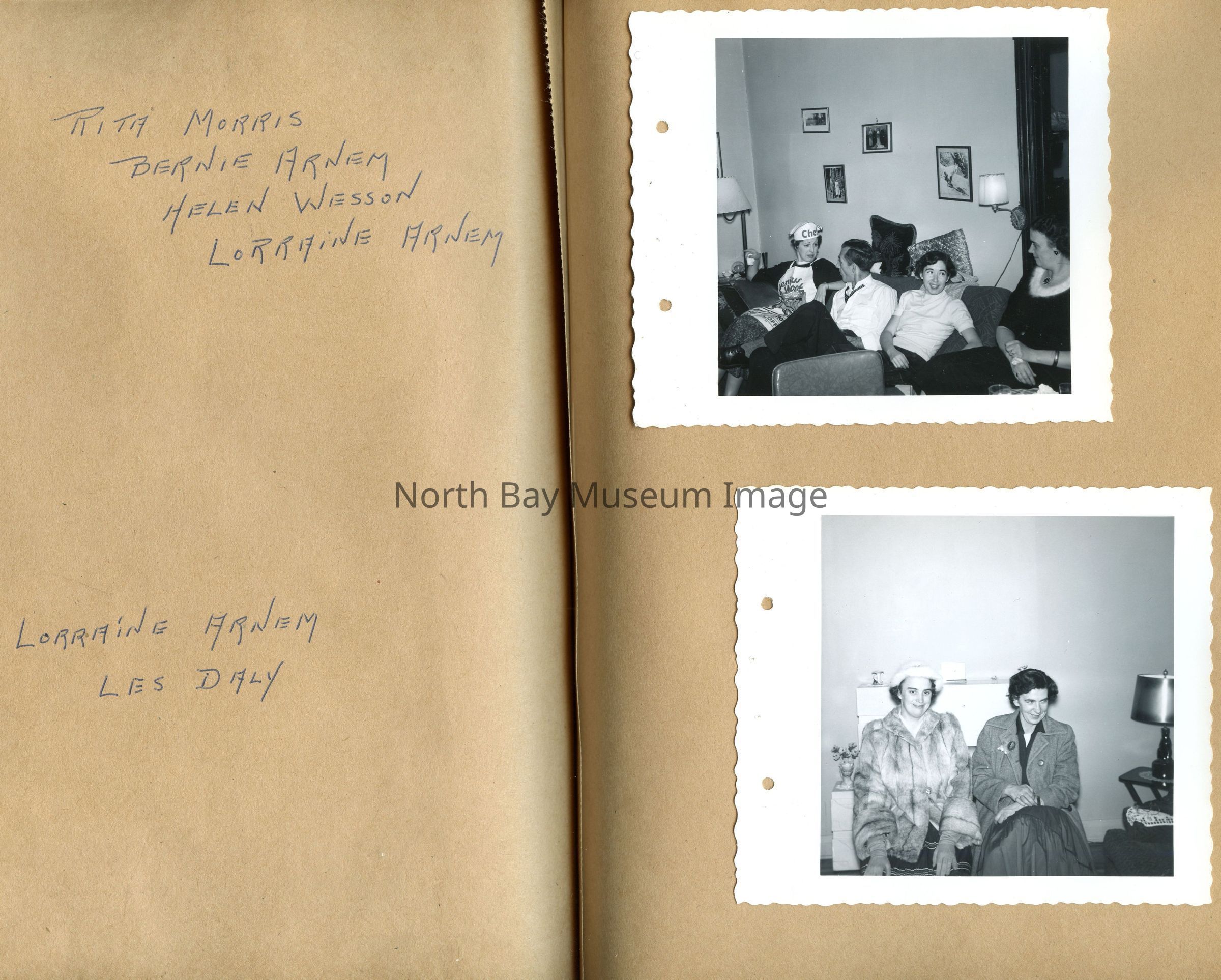Includes photos of Camp Tillicum and Kamp Kinsmen, Dorothy Hicks, Marion York, Mr. and Mrs Robinson, Mr and Mrs Fisher, Mrs Howard, Julies Bergman, Harold Harobin, Doris and John Smorithwaite, Jack Barnaby, Jack Huntington, Robinson family, Windmill lodge, York family, paul and pauline vezina, wallace newman, ted pyett, Caswell family, and more.