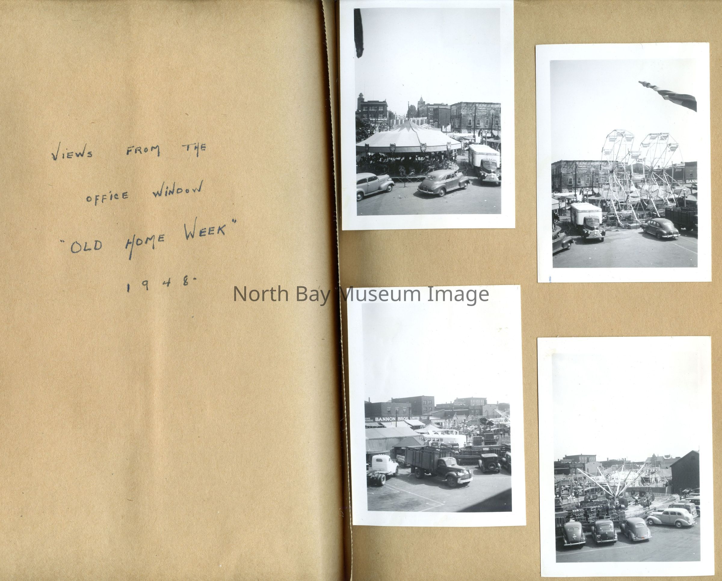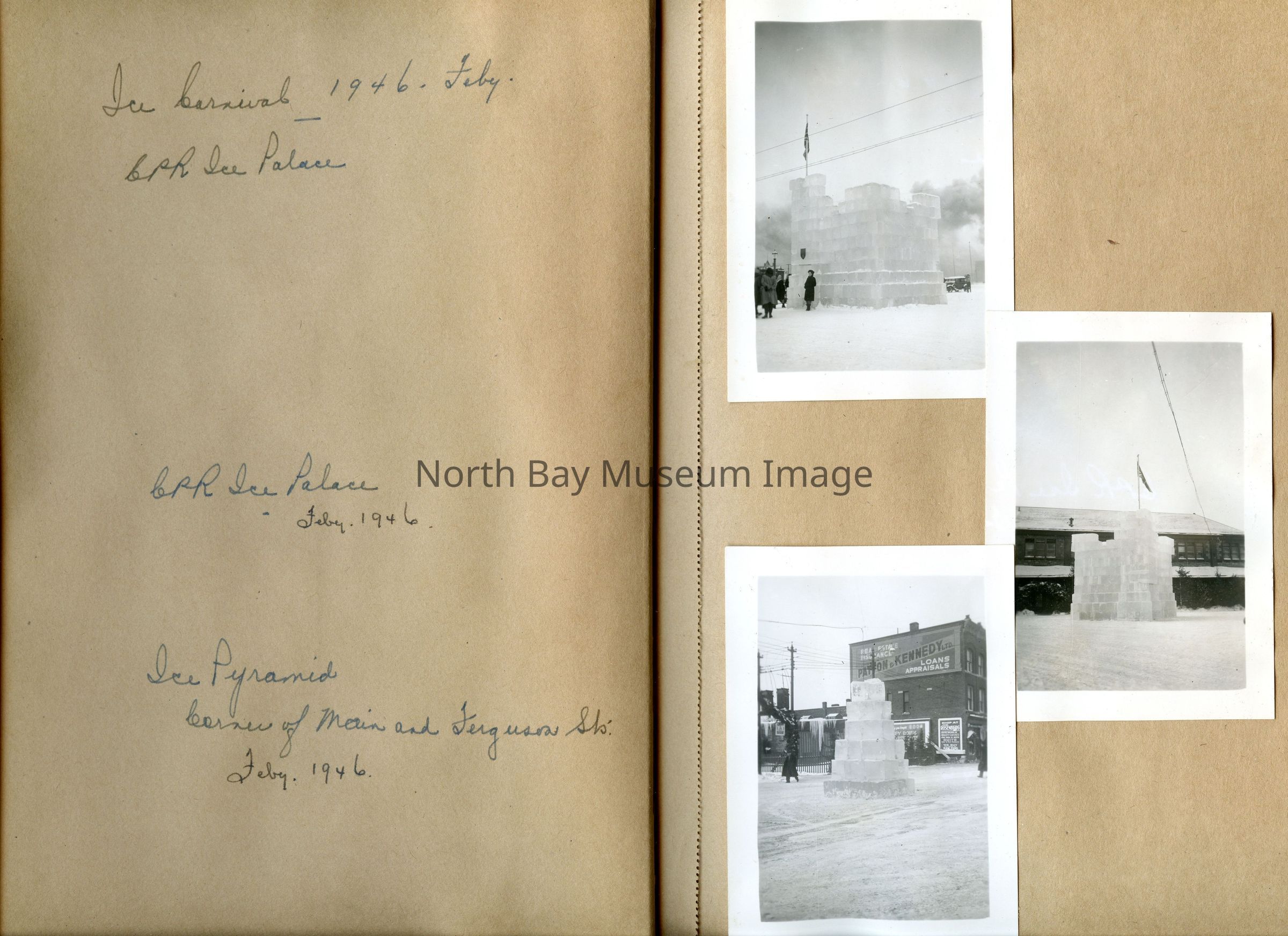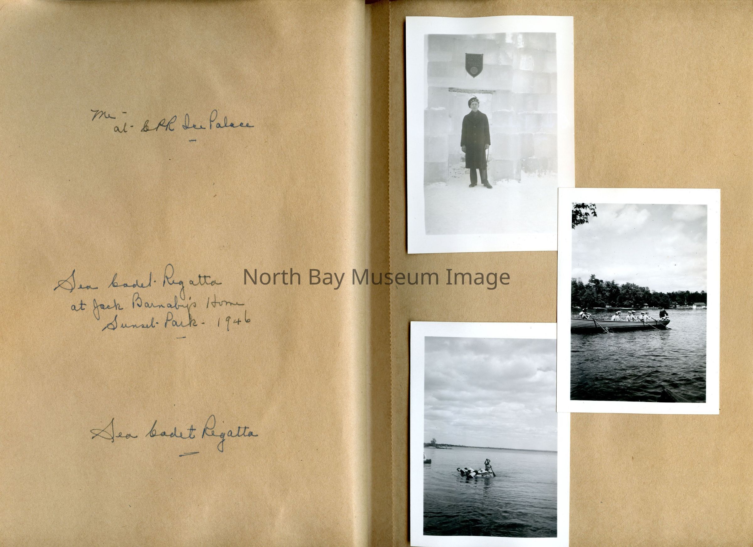Also contains photos of the CPR Ice palace and pyramids from 1946, se cadet regatta from 1946 in sunset park, the wedding of Harild Graham Scott and Mary Isabel Sanderson, the Chief Commanda, photos of the 1948 Old Home Week, and the Civic Hospital.