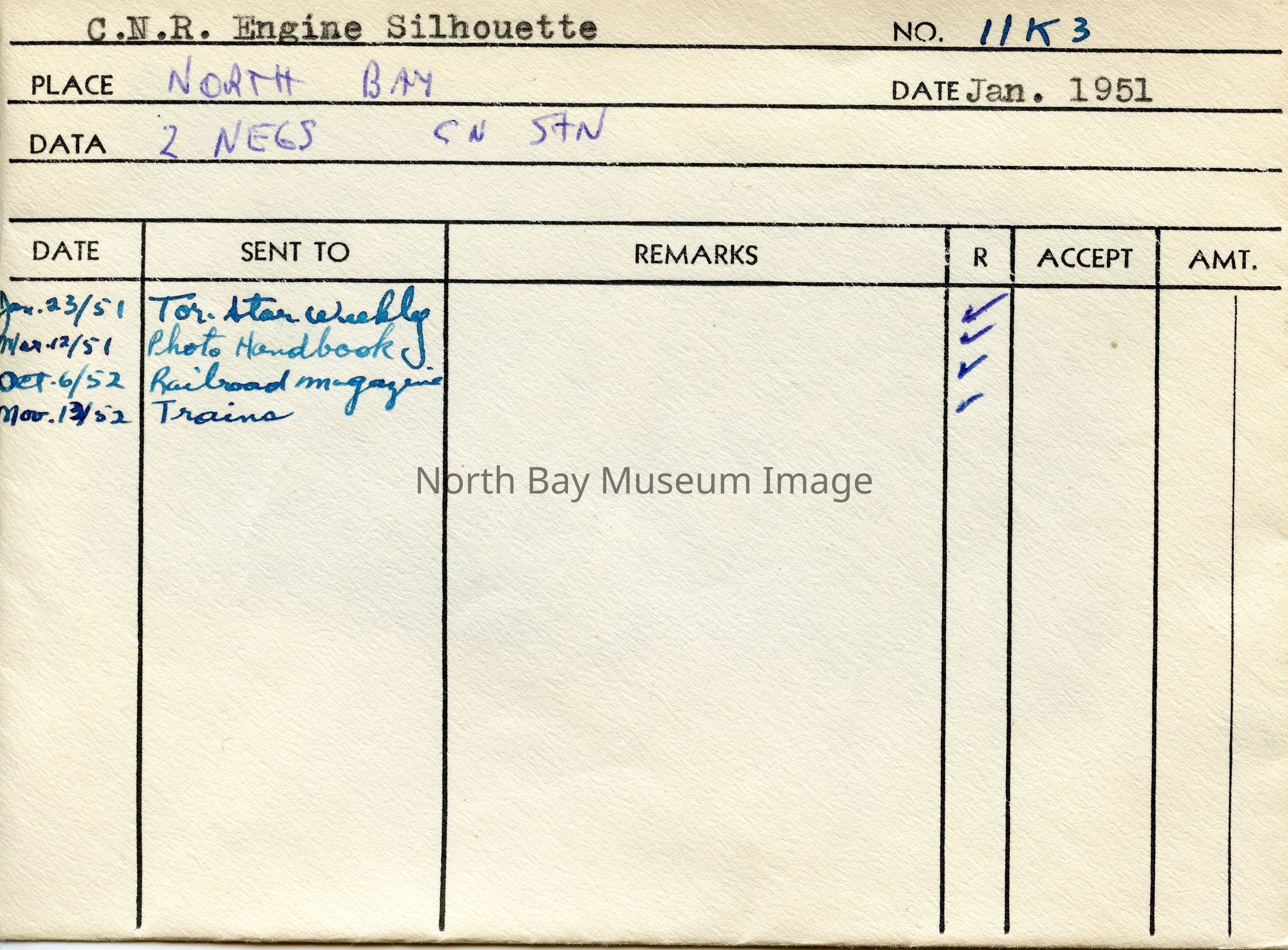 019.60.396a - Envelope. Inscriptions: "C.N.R. Engine Silhouette", "No. 11K3", "Jan. 1951".