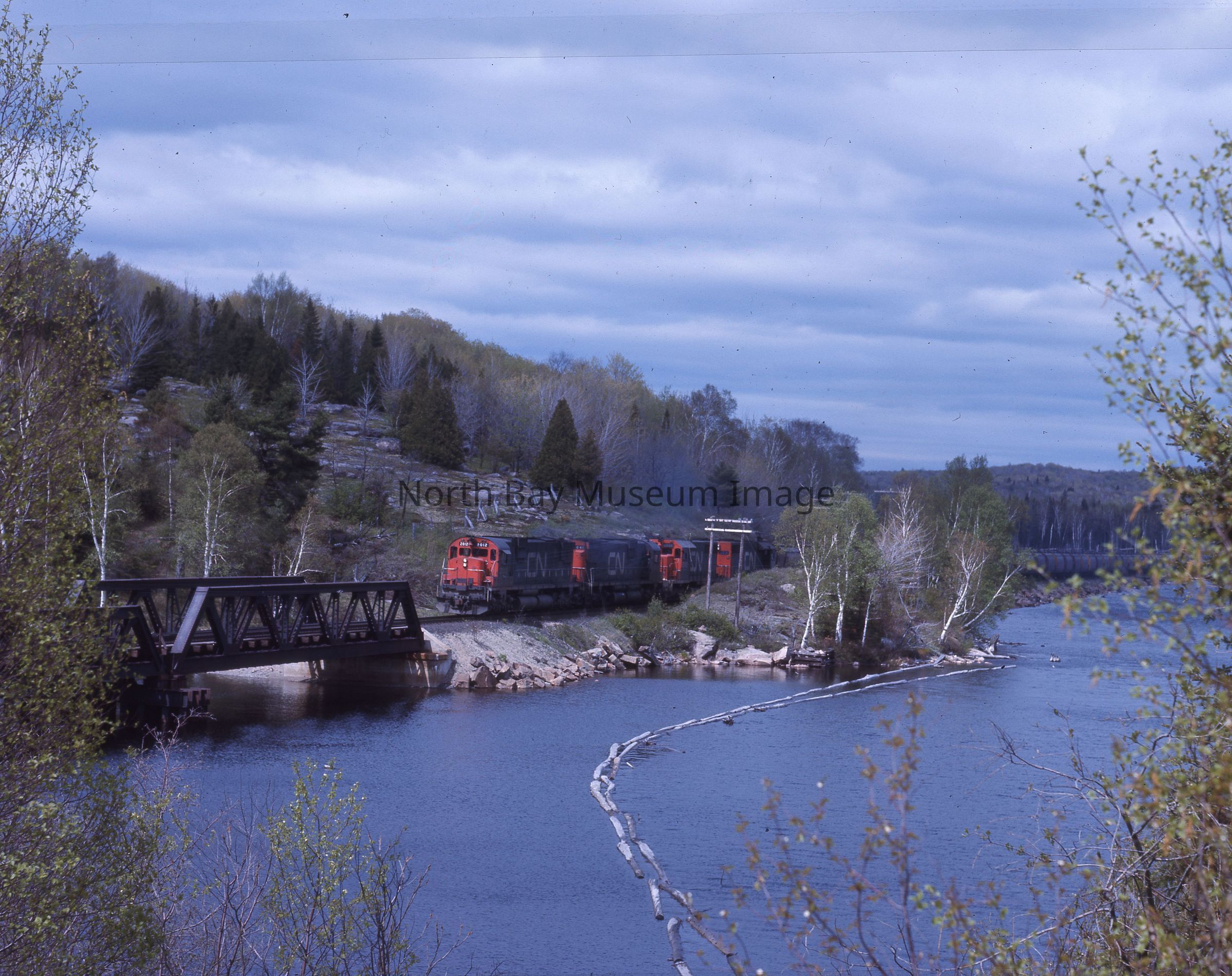 CN, Freight, Southbound, South River at Bridge.