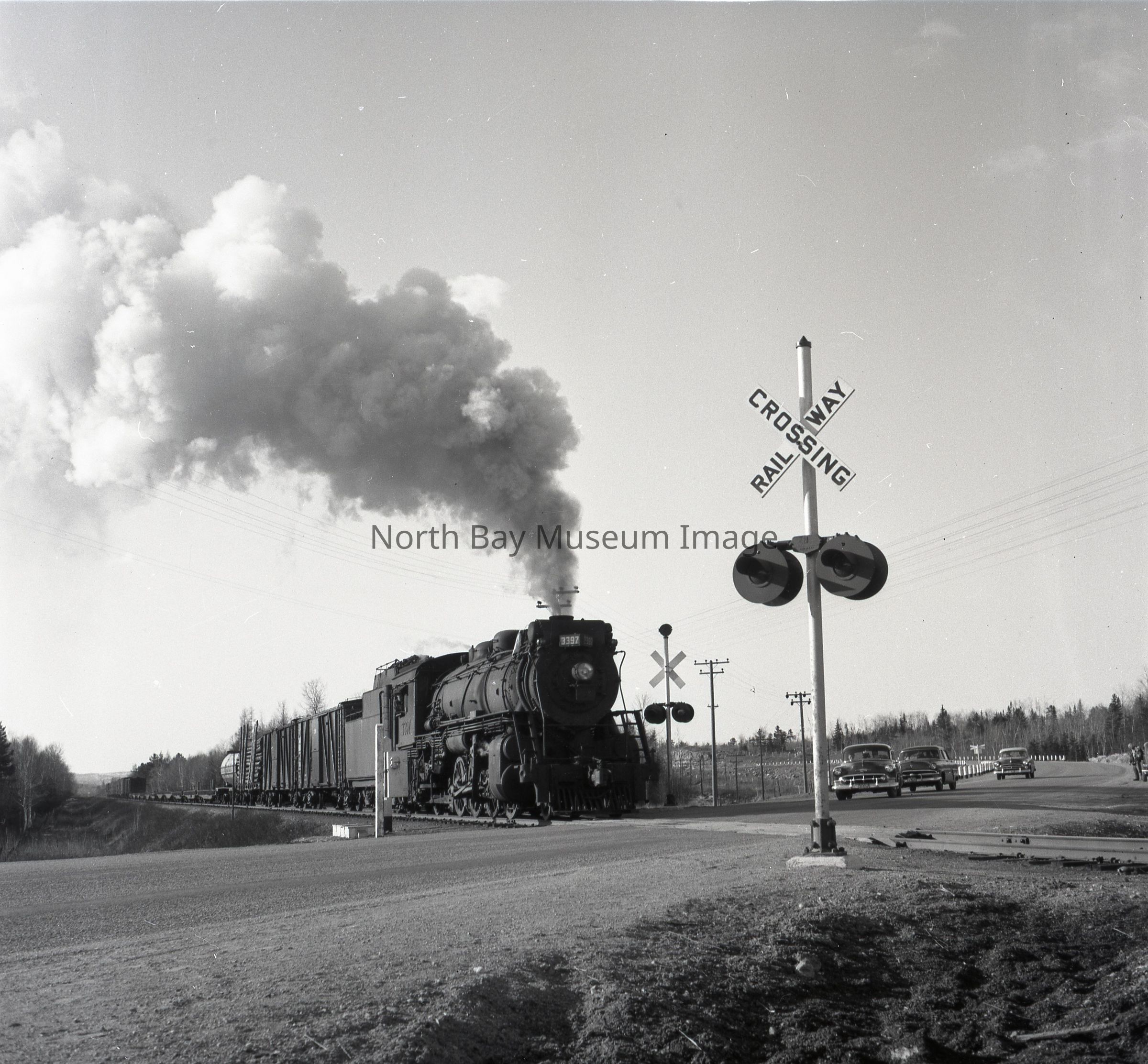 019.60.403b: Black and white negative. Corbeil Road, Freight Eastbound.Creator