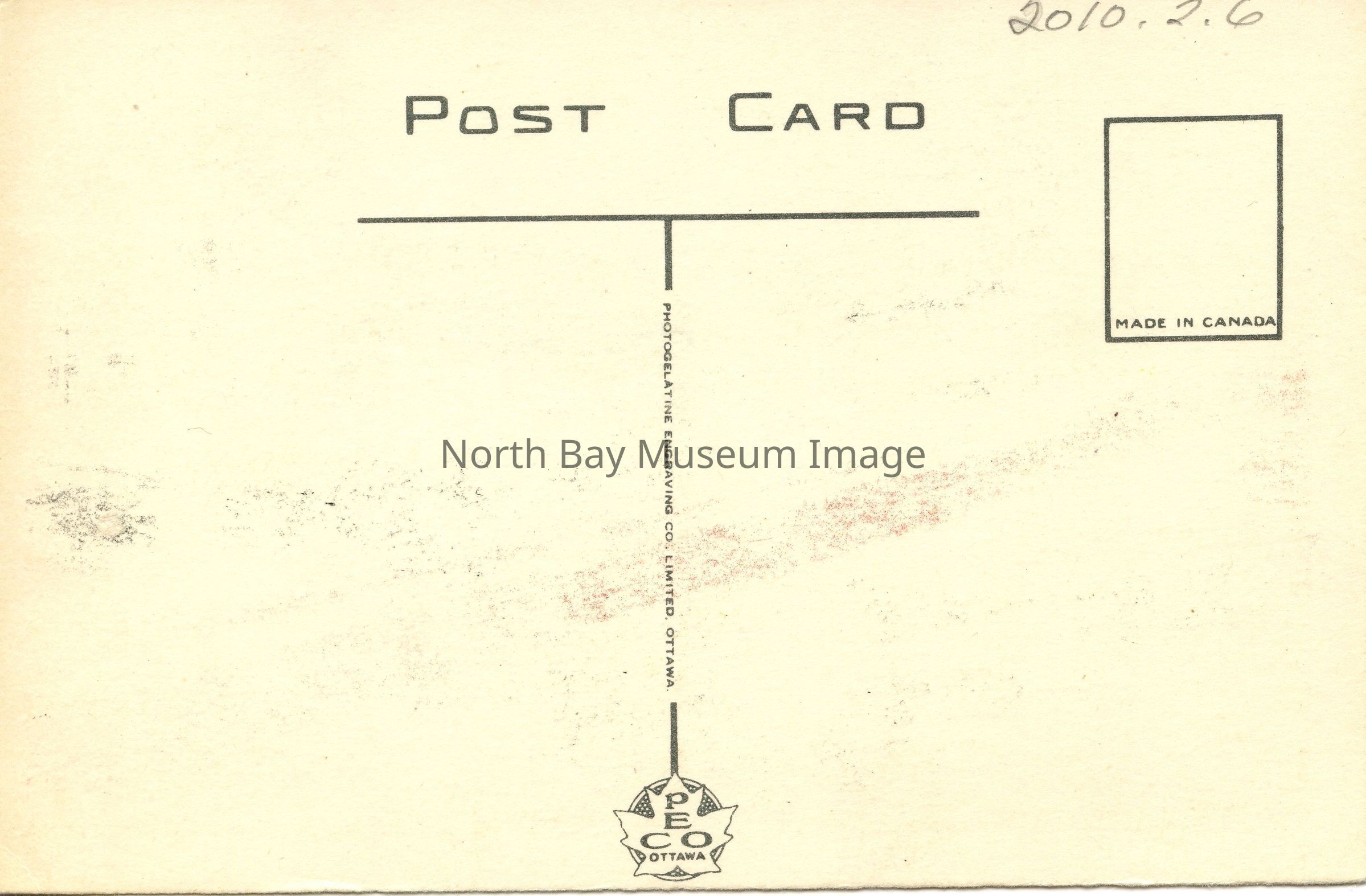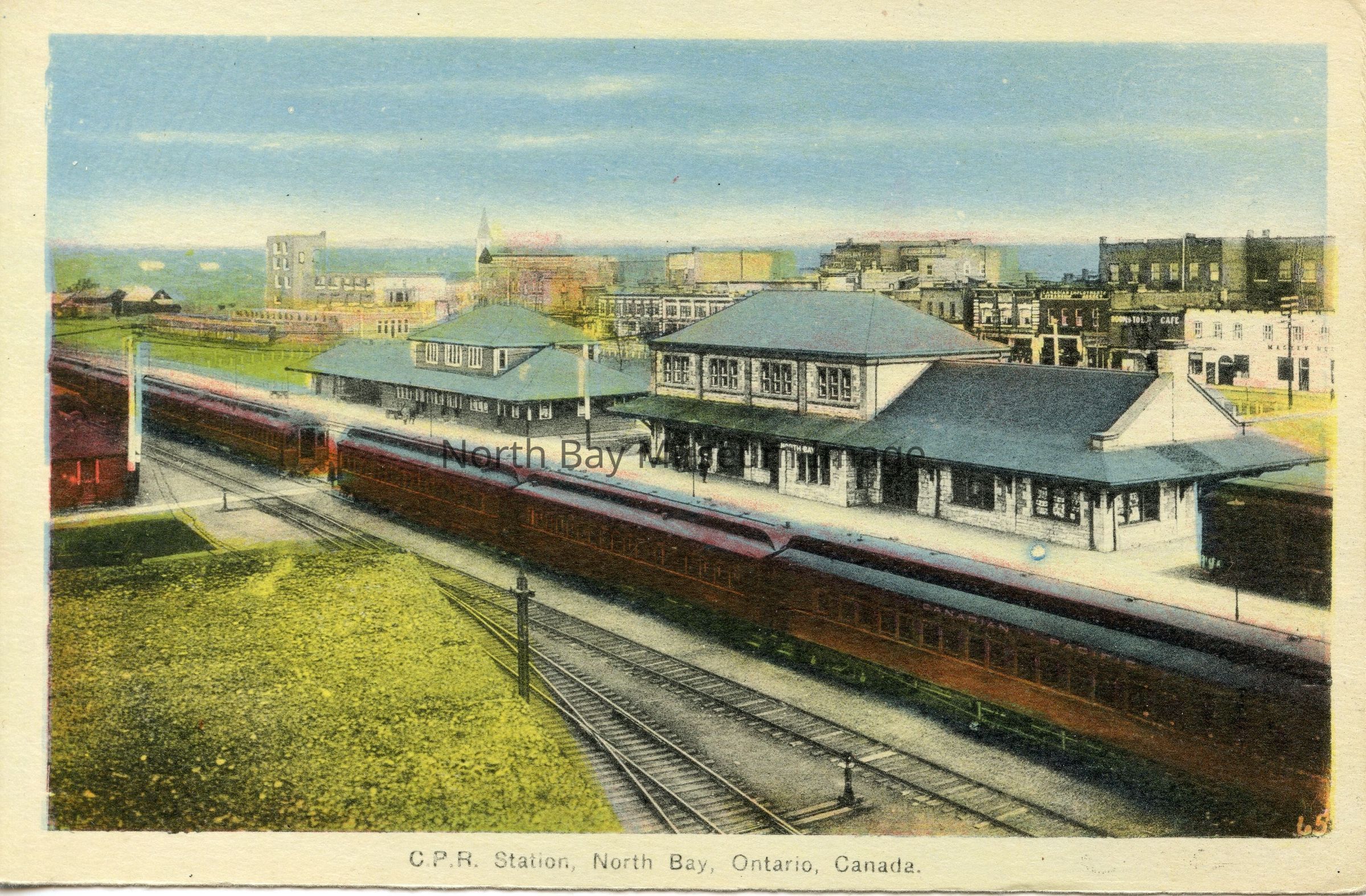 Postcard with coloured photo of CPR Station, North Bay, Ontario, Canada