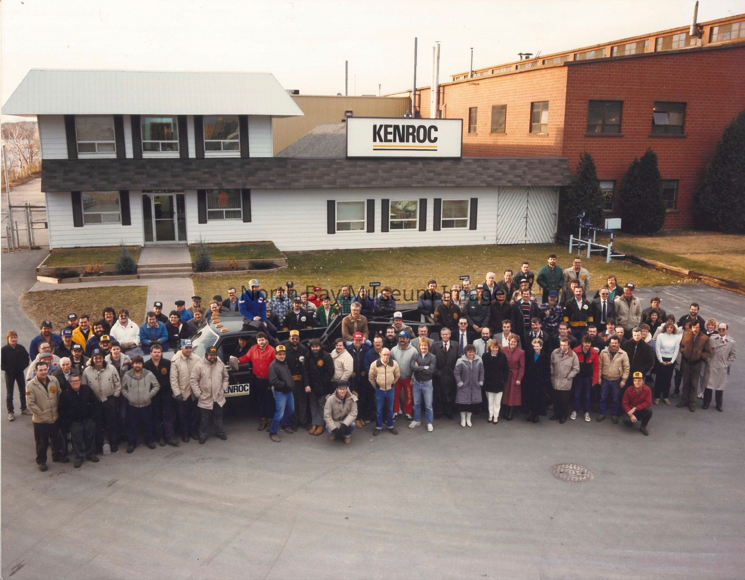 This photo features staff from Kenroc plant posing in front of the building.
