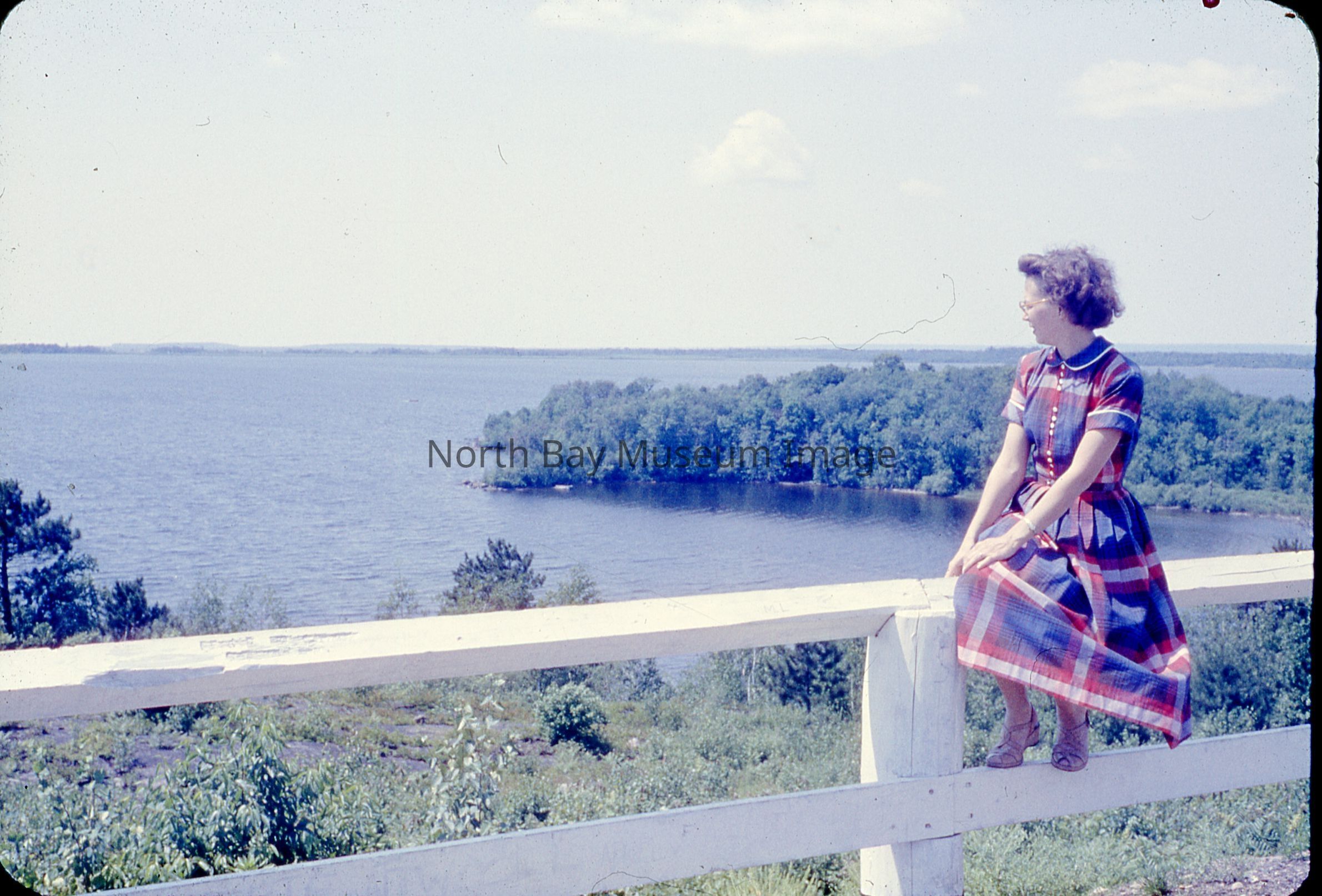 Slide with no envelope or information from Forder collection. Taken shortly after construction as trees had been "culled" to provide clear view. Female in photo may be Forder's sister Hilda.
