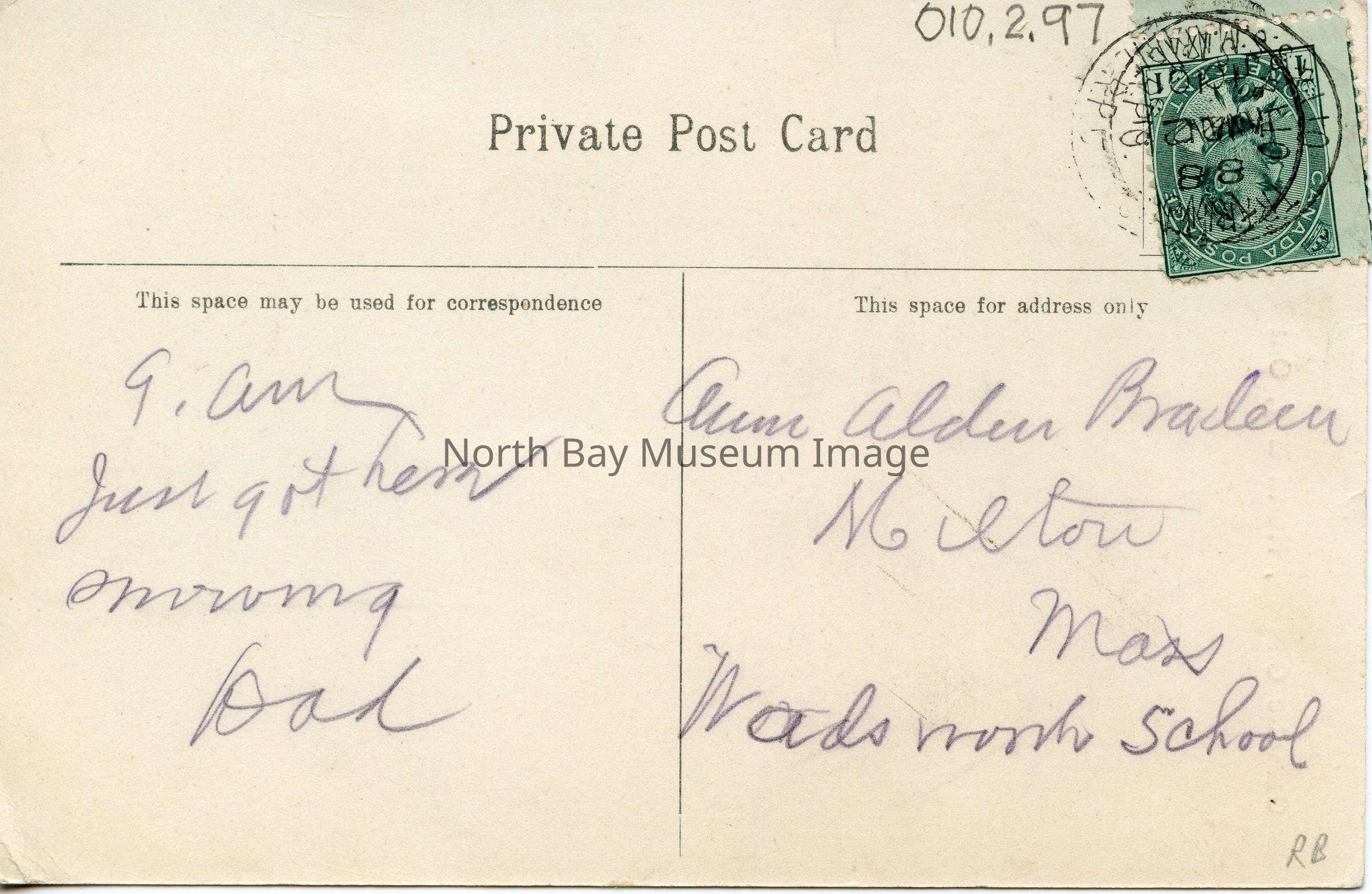 Addressee: Ann Aldedn Bradeau, Milton, Mass, Wadsworth School