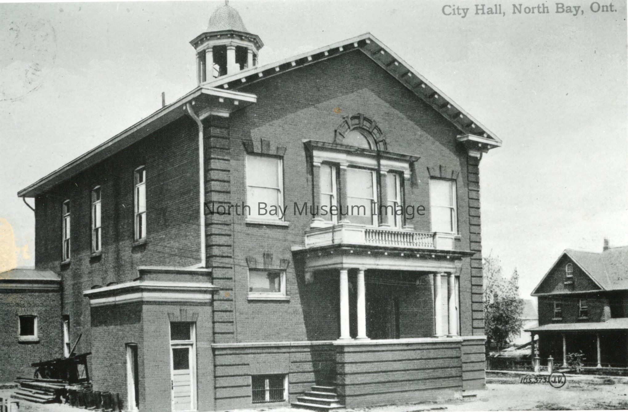 -Printed on top of photo, the words "City Hall, North Bay, O.N.".