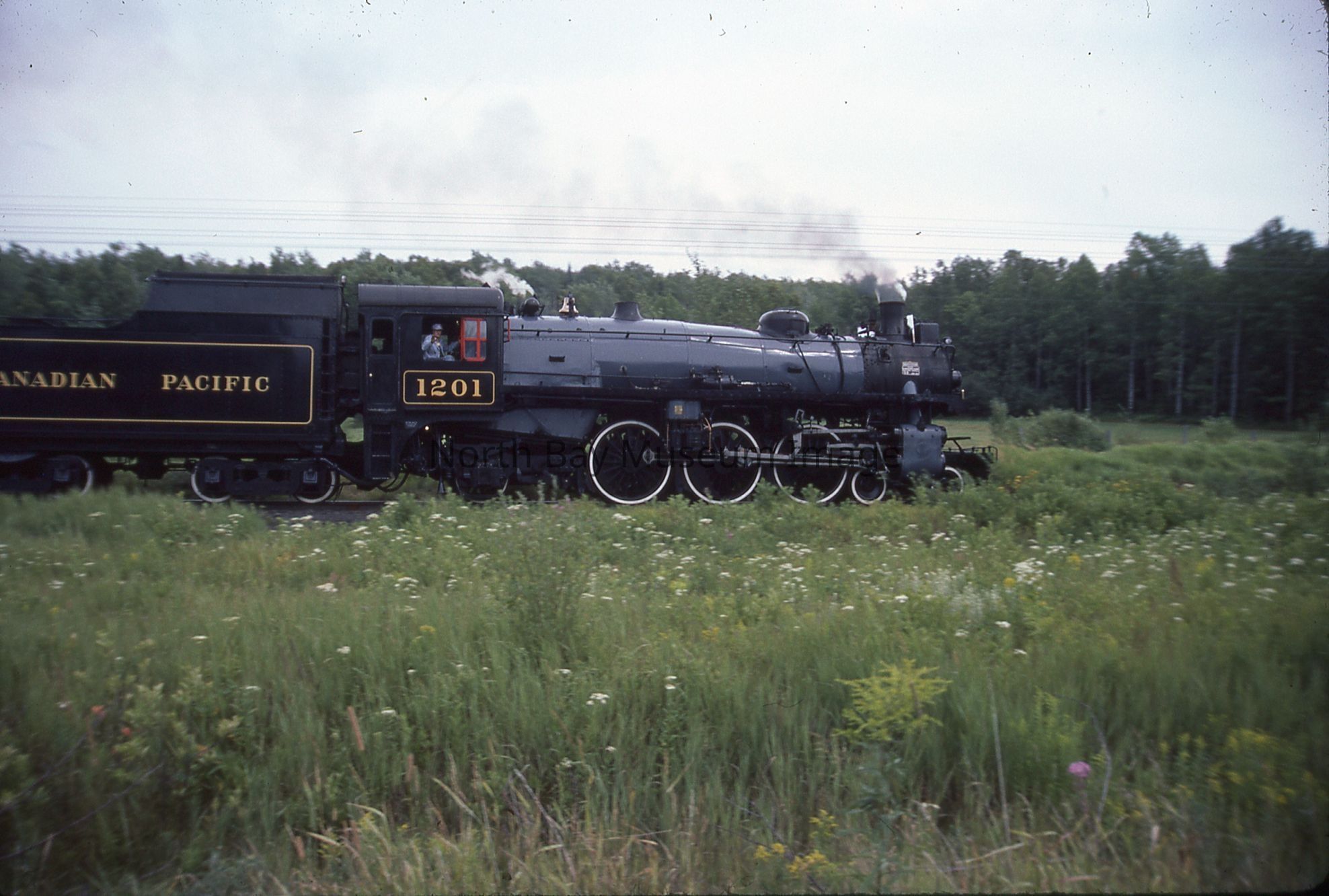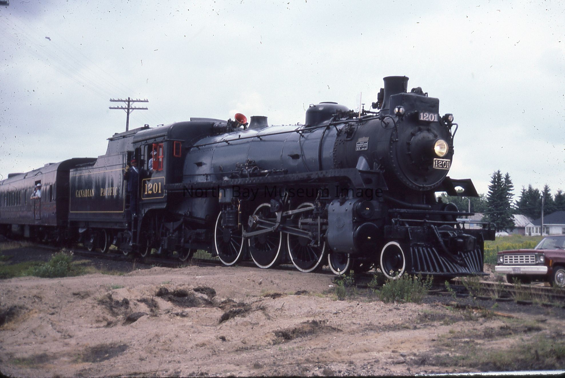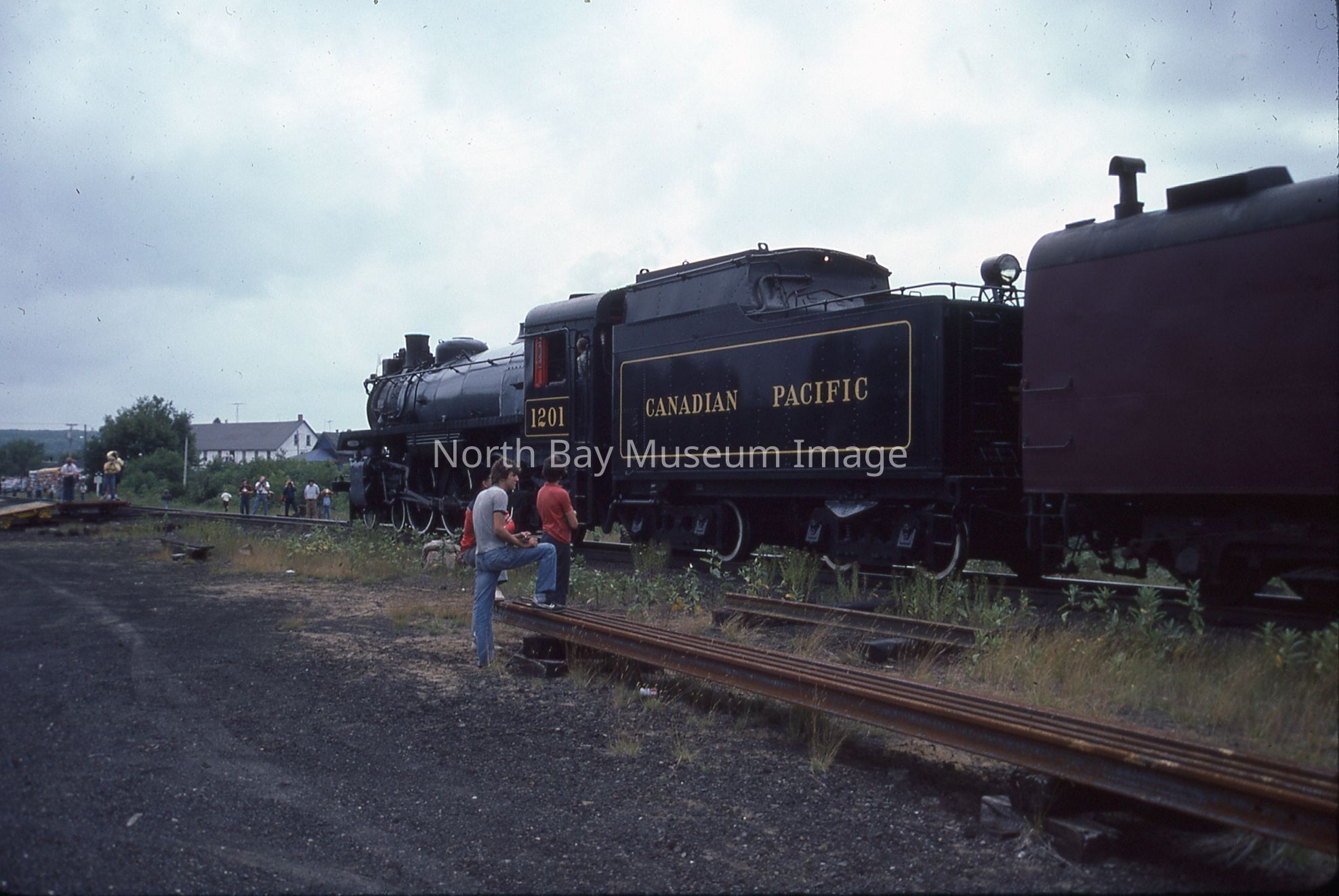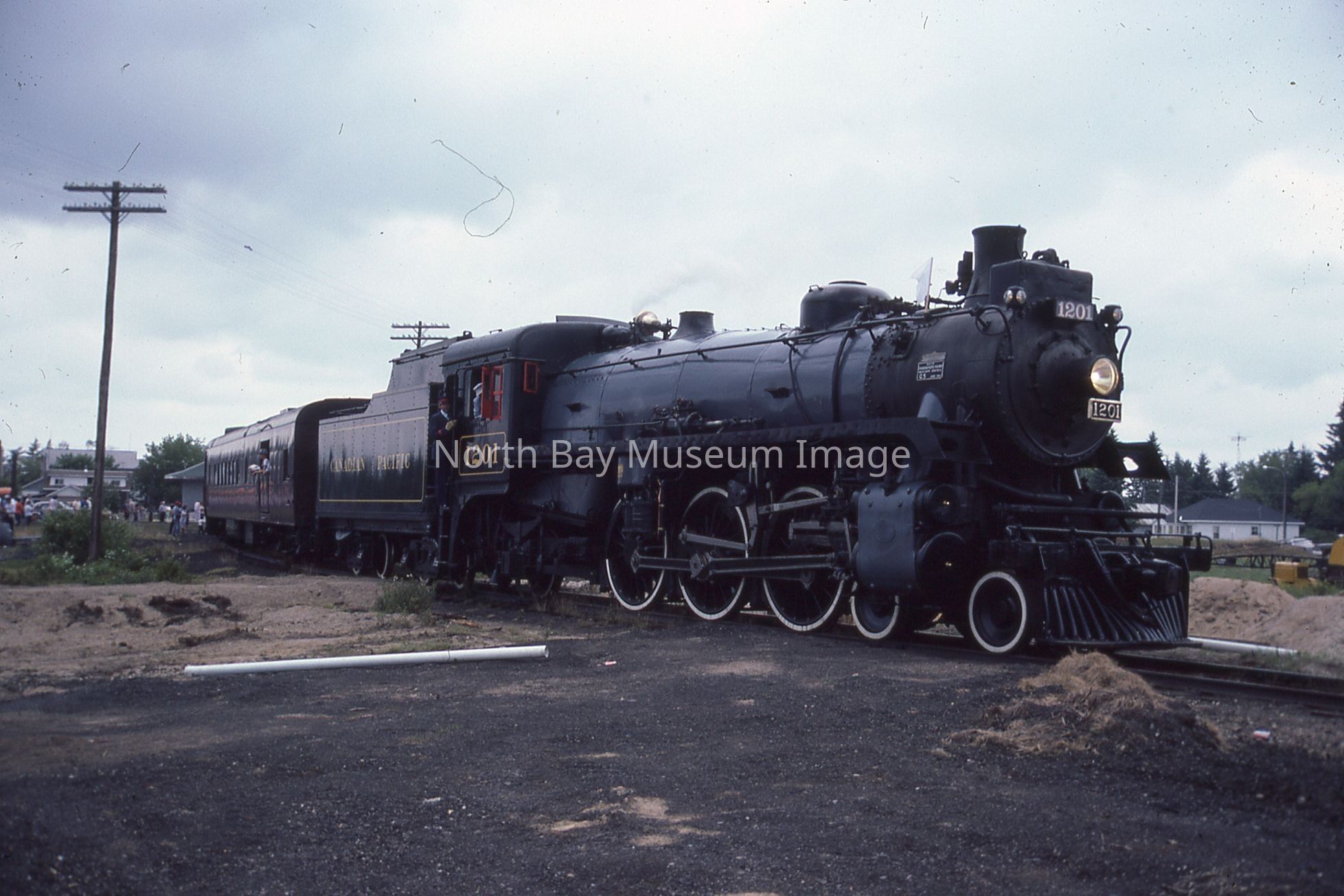 According to inscription on containing envelope, items relate to "CPR ENG # 1201 visits North Bay for '100 Years of Rail' Week, 1982", "40 - 35 mm Slides".