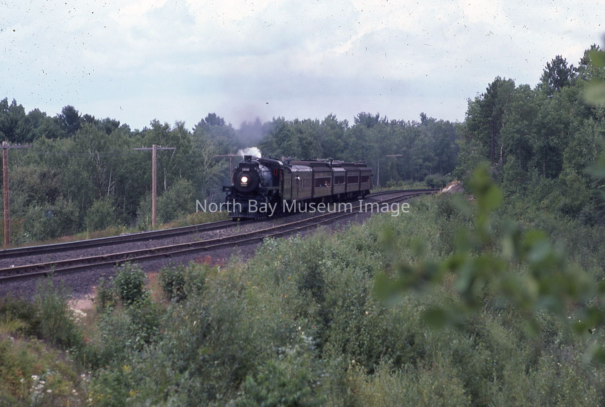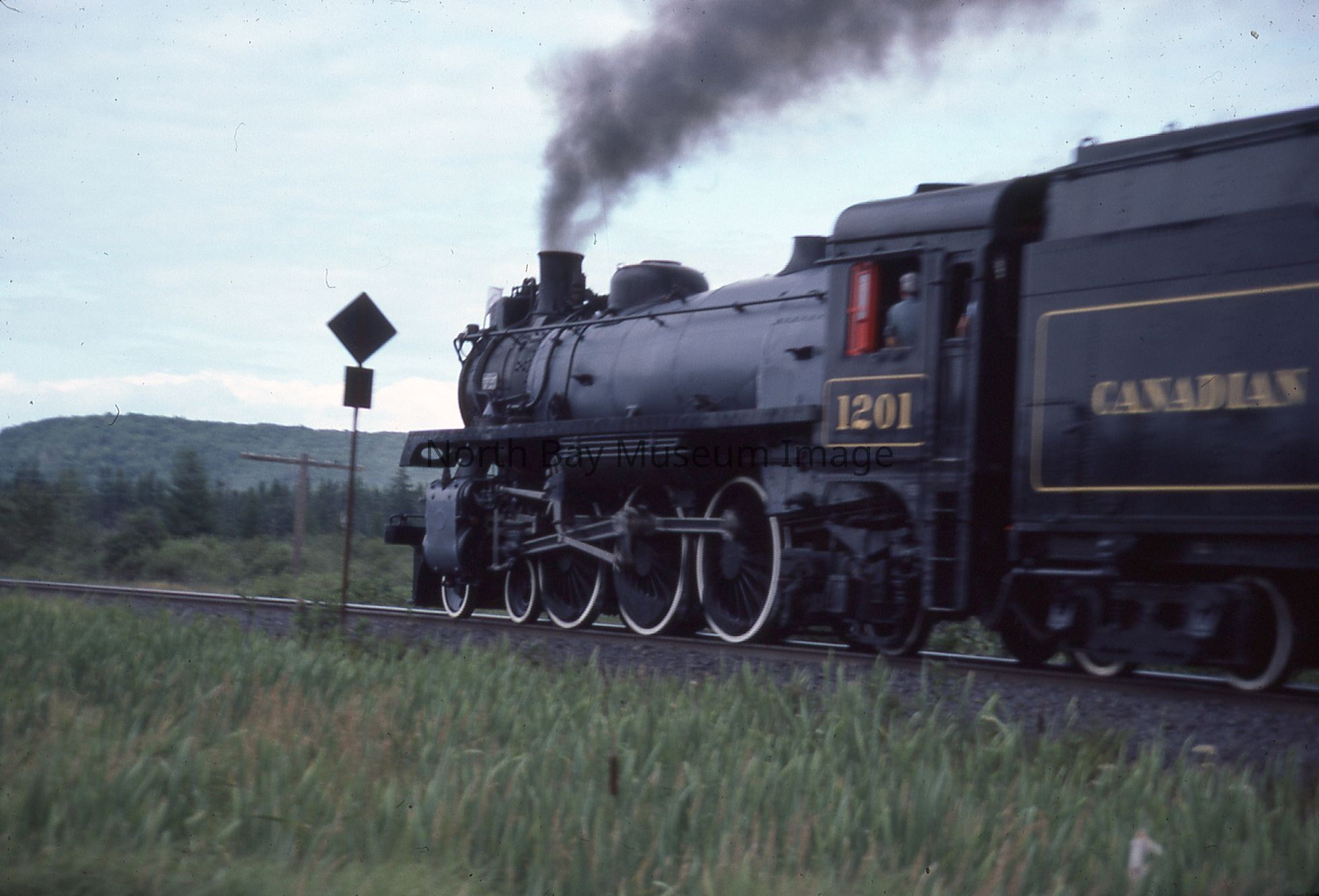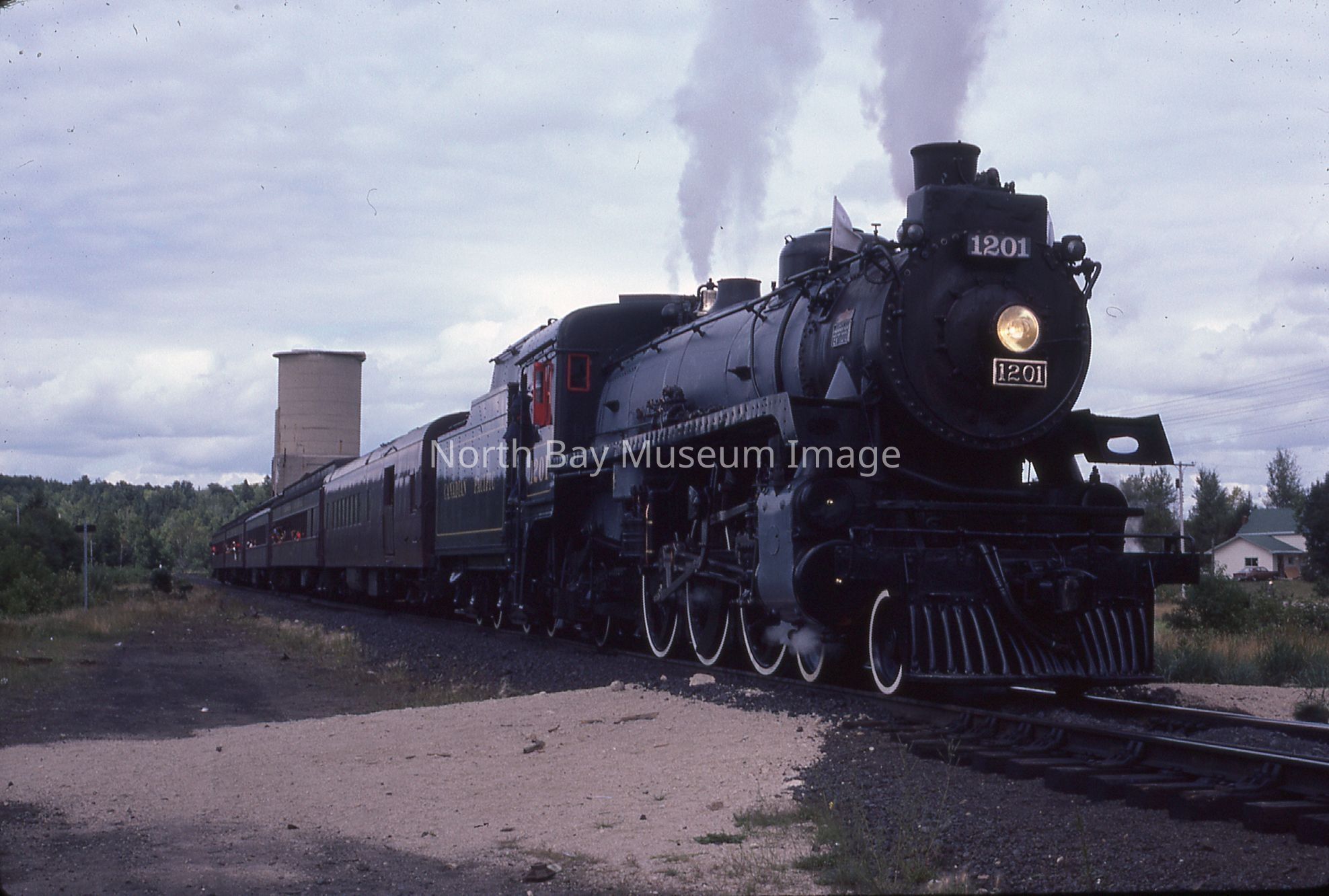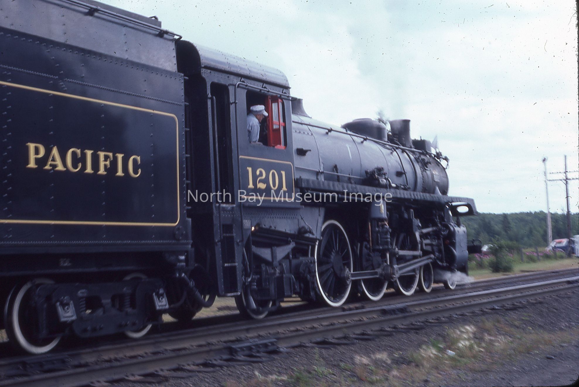 According to inscription on containing envelope, items relate to "CPR ENG # 1201 visits North Bay for '100 Years of Rail' Week, 1982", "40 - 35 mm Slides".