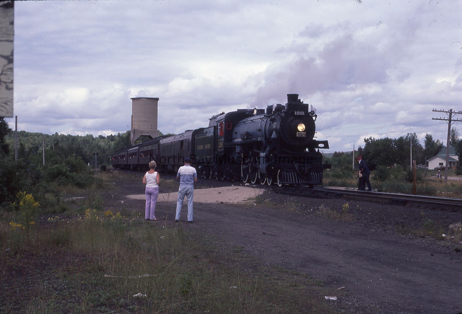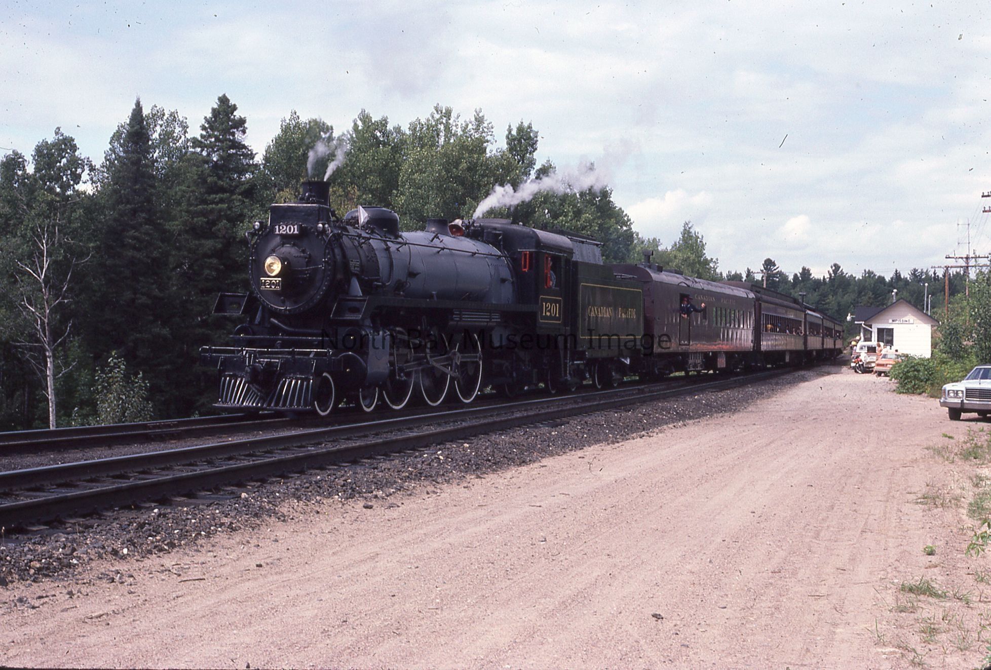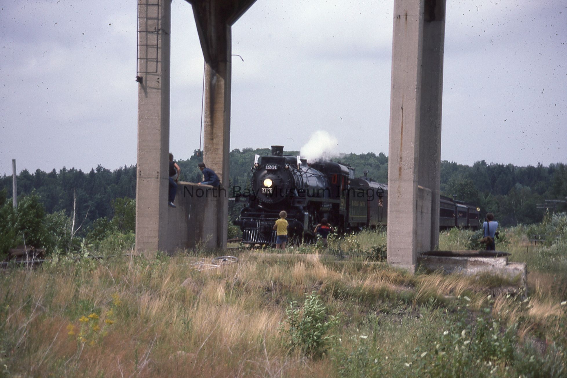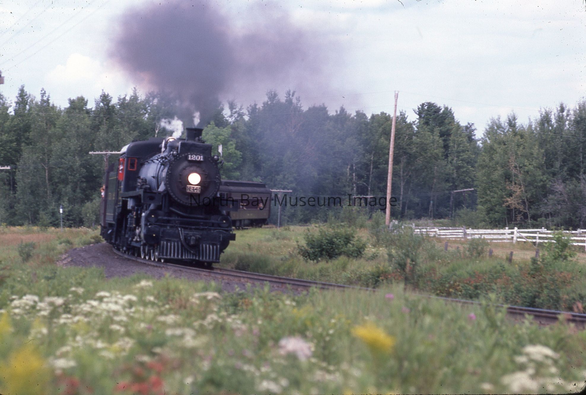 According to inscription on containing envelope, items relate to "CPR ENG # 1201 visits North Bay for '100 Years of Rail' Week, 1982", "40 - 35 mm Slides".