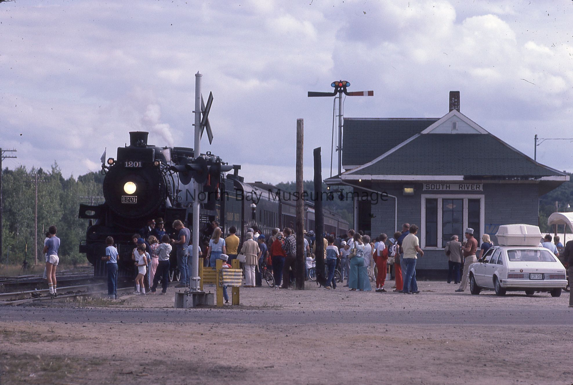 019.60.552ad - Inscription: "CPR # 1201, SB, Trout Creek - 1982", "N. Bays 100 yrs of Rail", "Aug".