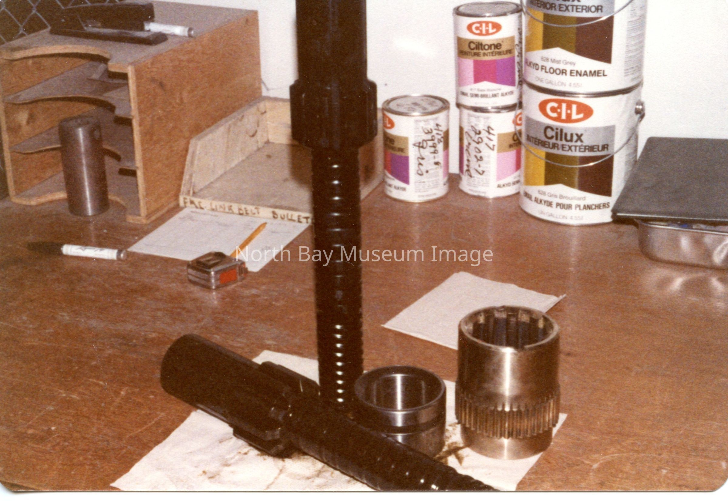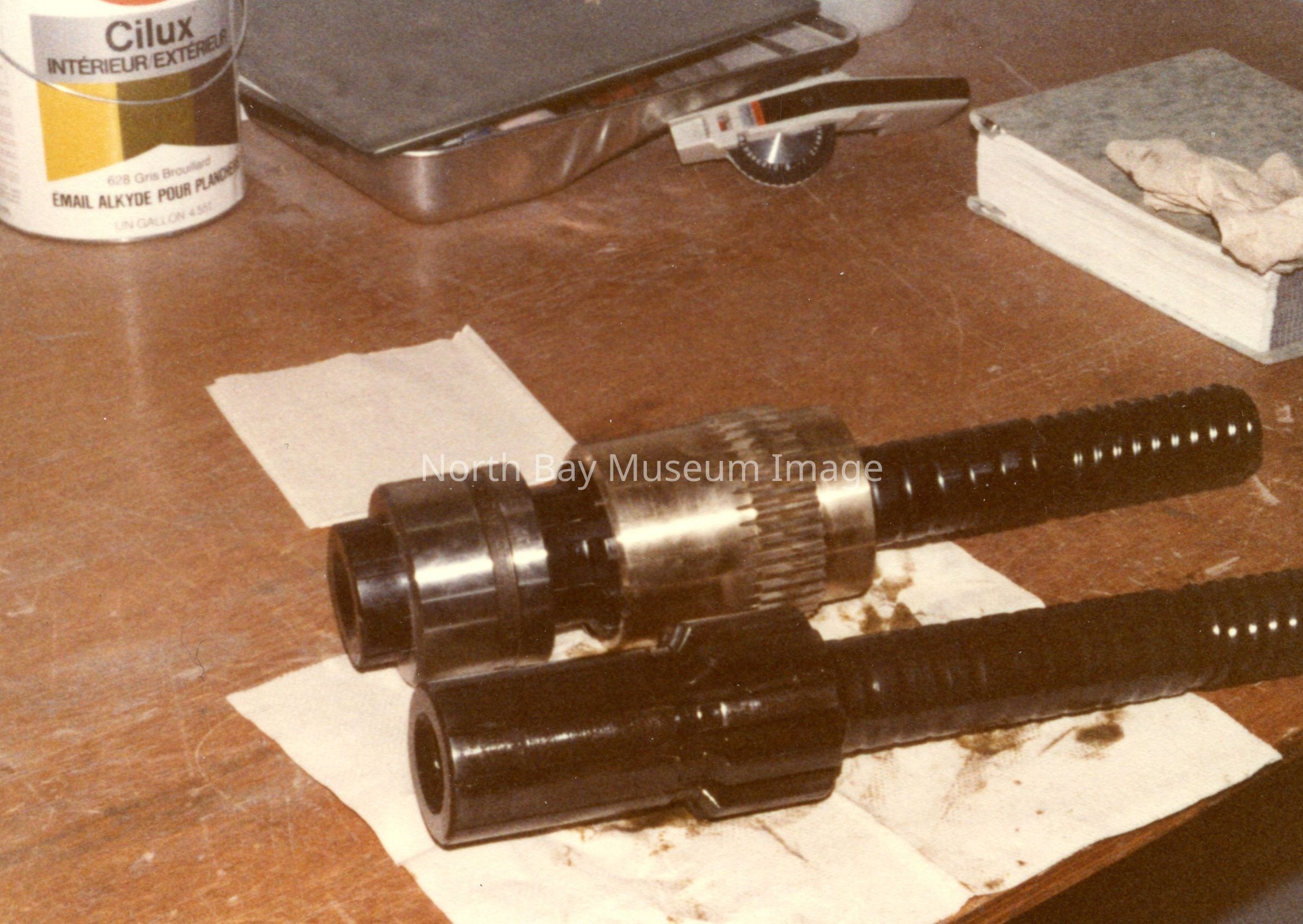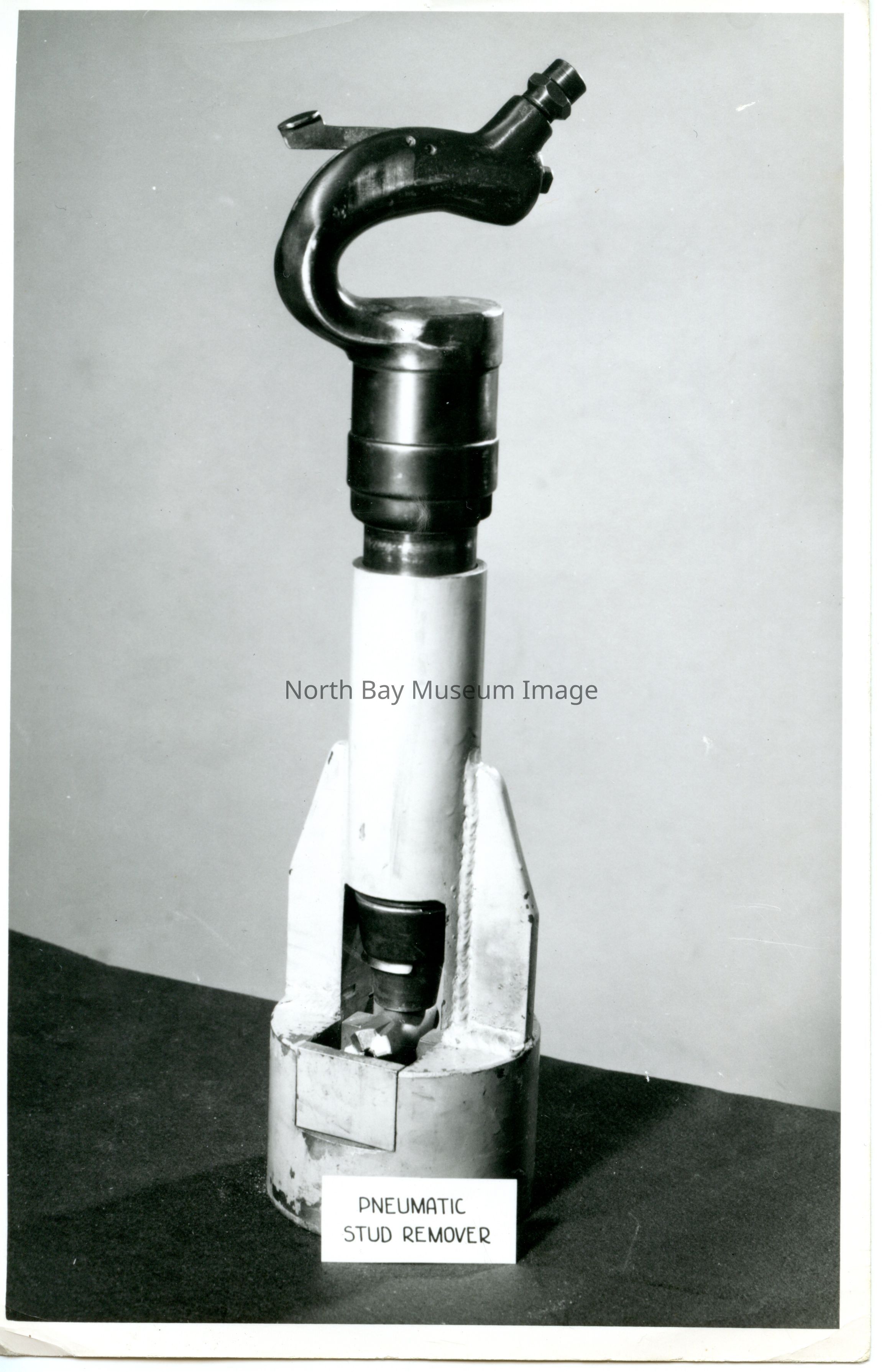 Photos and containing envelope. Unclear if photos in the folder are in the same order the owner originally arranged them in. Subjects include: "The Craig Bit Co LTD.", "Equipment for Mining, Construction and Industry", a factory, machinery, factory workers, "UNIROC", administrative staffer (owner? manager? executive?), jovial crowds downtown, "office", 1951 expansion, "Elliot Lake".