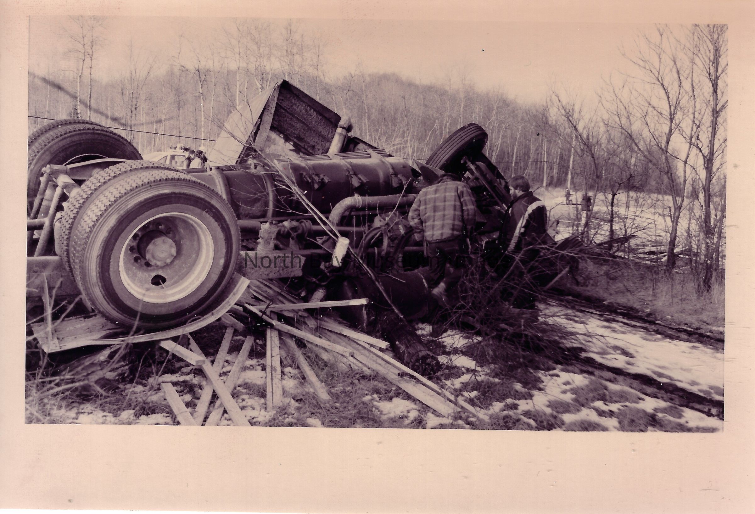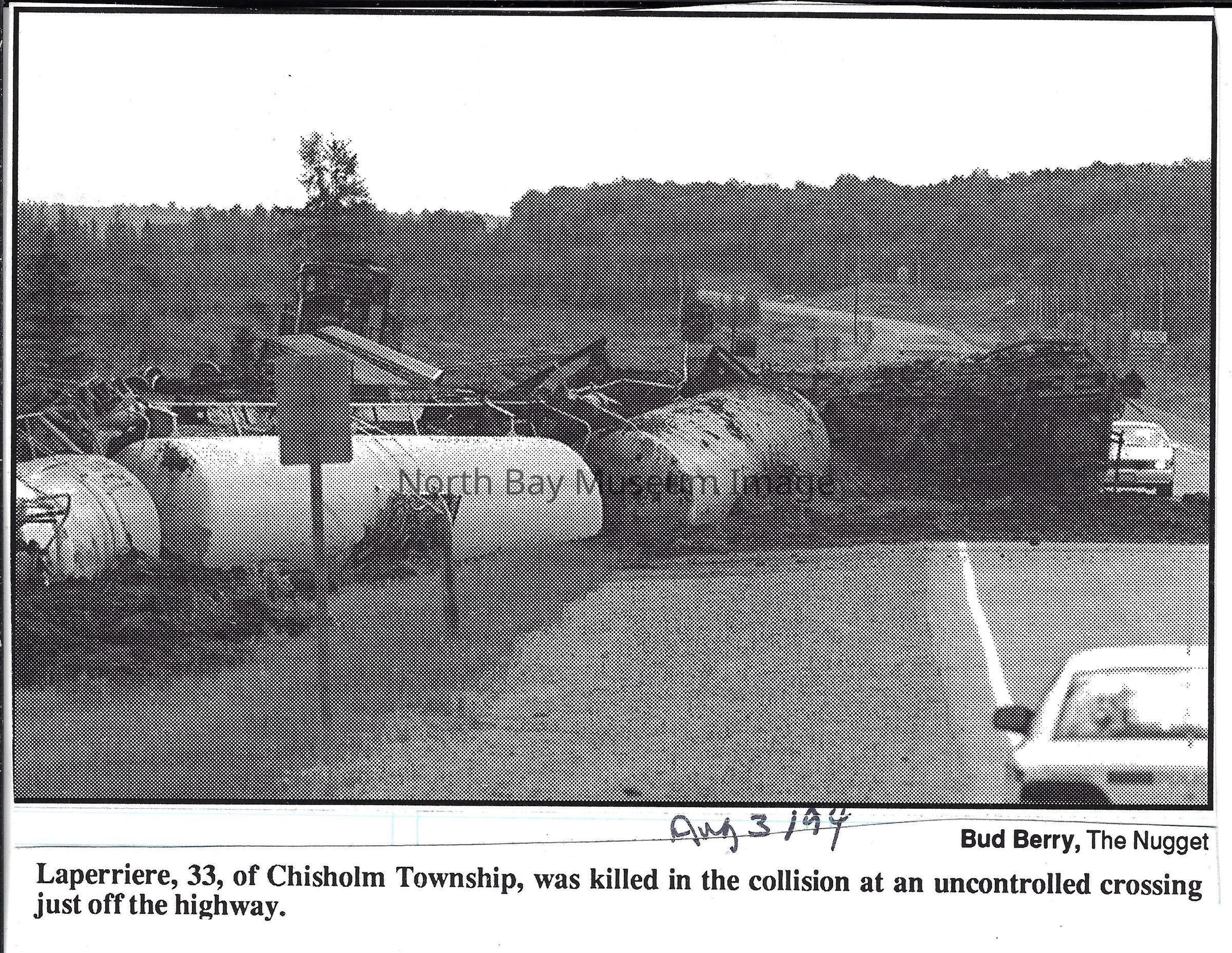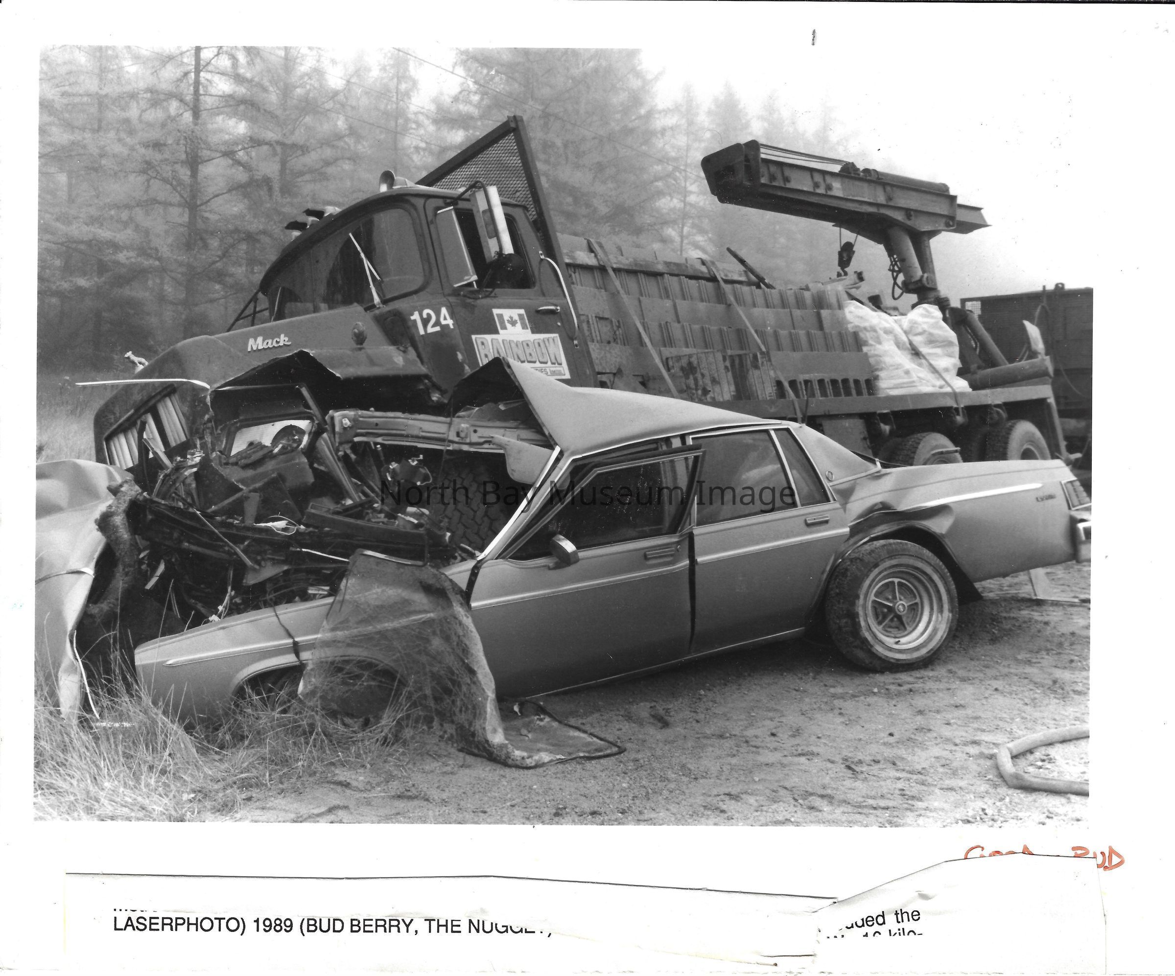 Photos and newspaper clipping or car, transport truck and plane crashes.