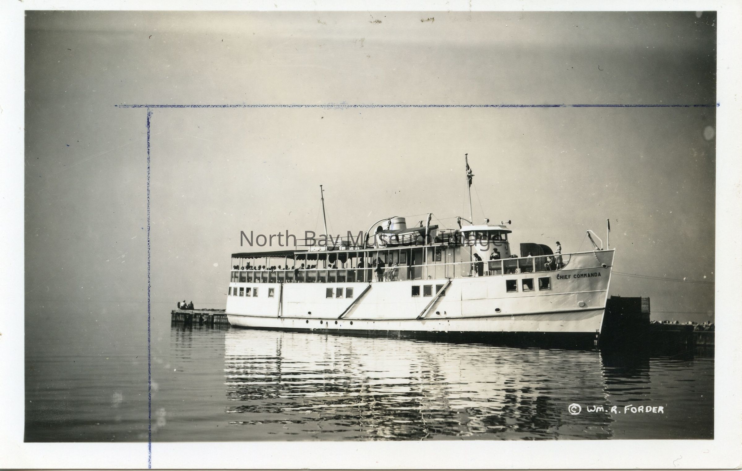 Postcard with B&W photo of "Chief Commanda" at Government Wharf, North Bay, Ontario
