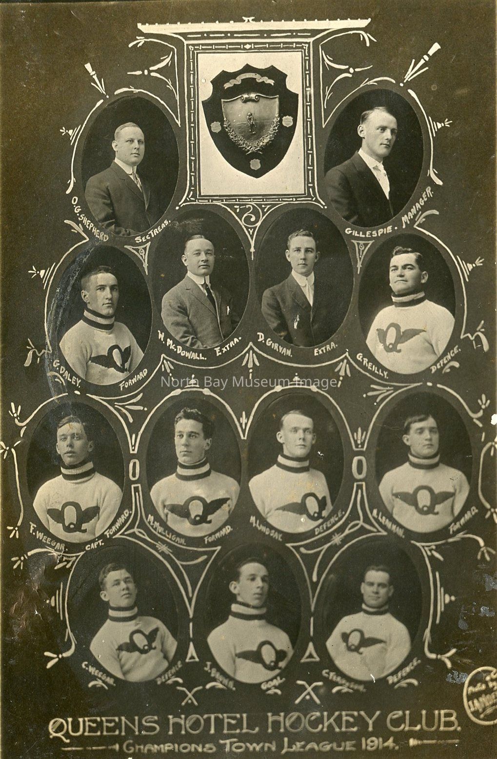2 black and white photographic prints of hockey teams. The "alerts" and the Queen's Hotel hockey team.