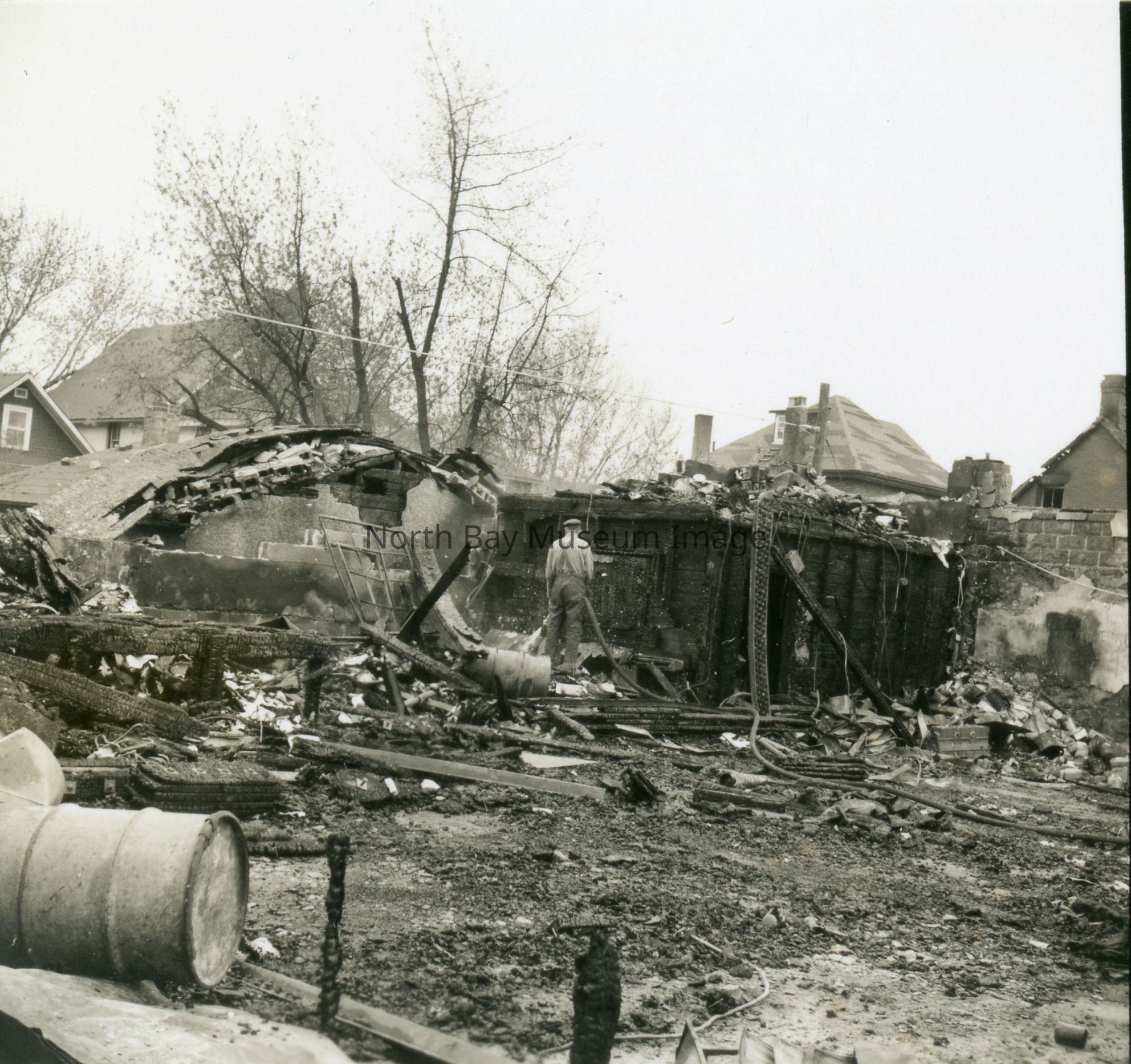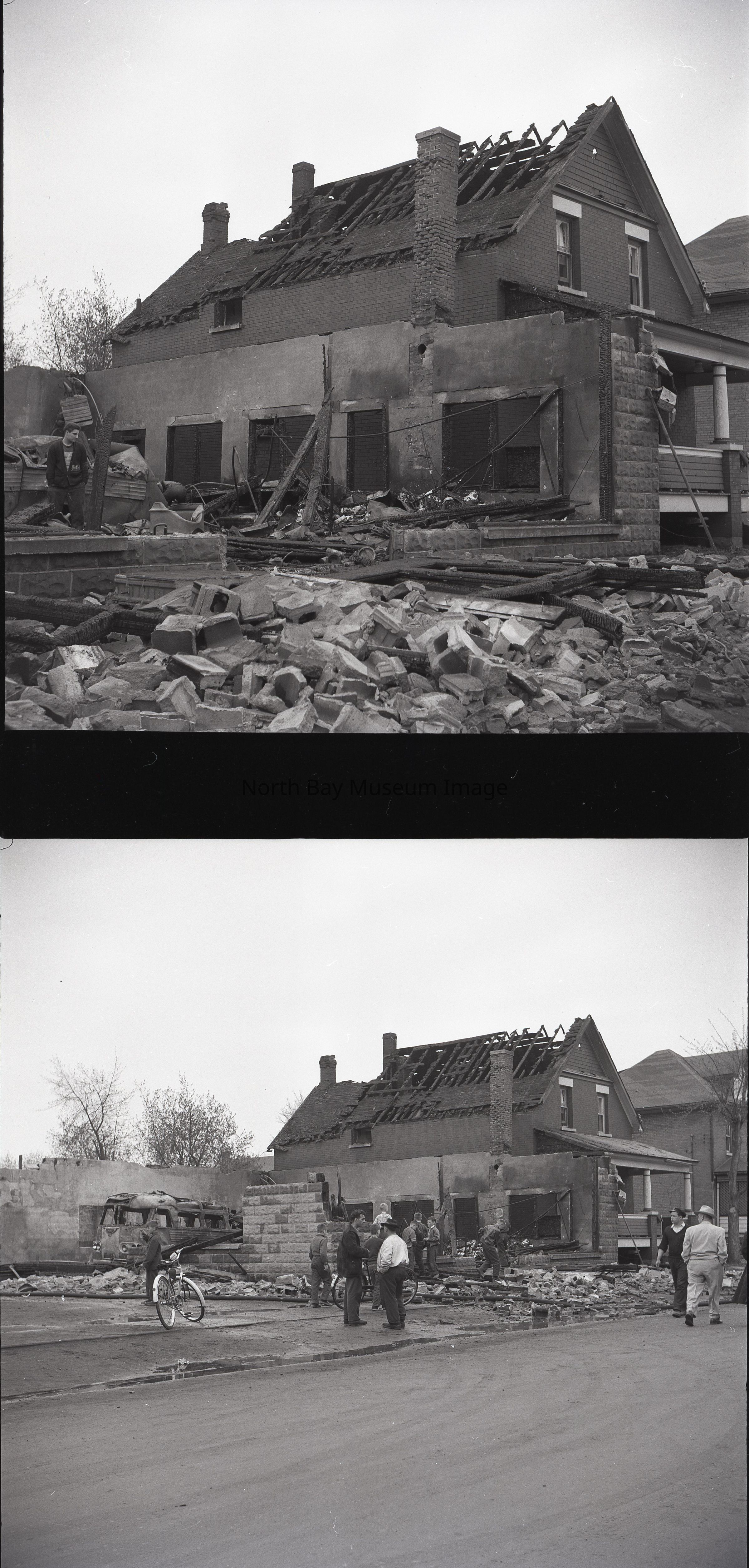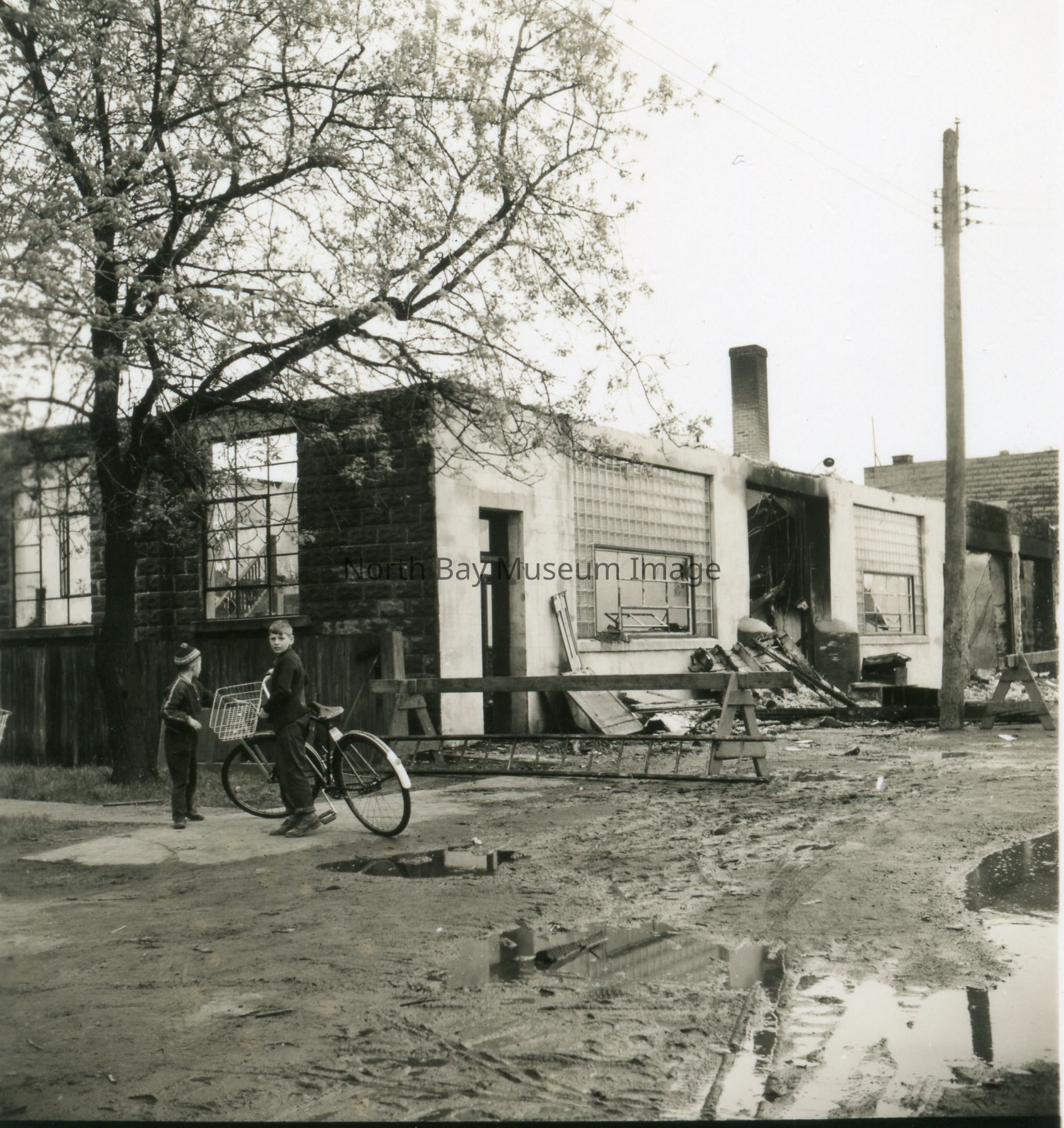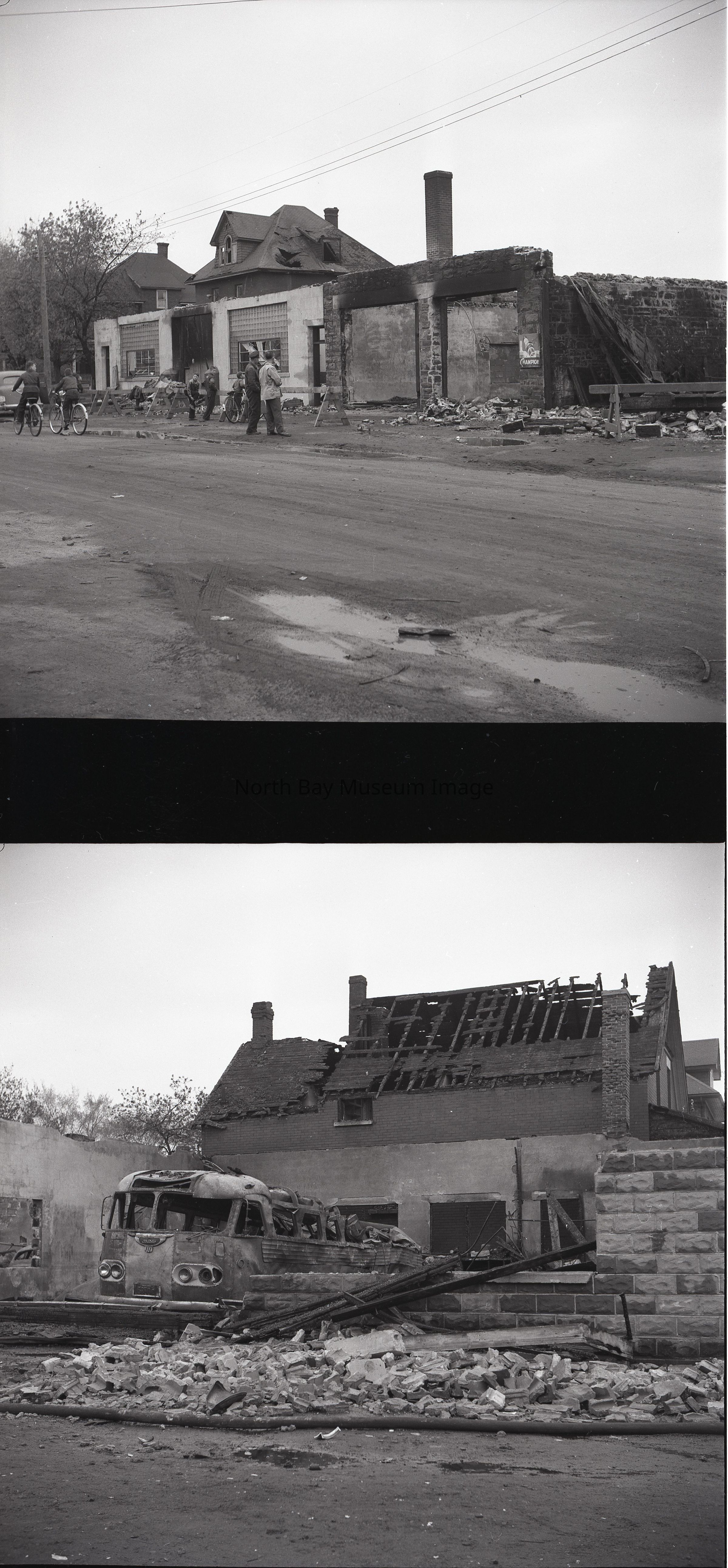 (b/c) Contains two negatives. (b) shows the rubble inside of the building. (c) shows us the outside walls still standing, with two children in front. (d/e) Contains two negative. (d) taken at a different angle, this time showing a house next to the building with the roof affected. (e) shows us a similar angle, this time zoomed out, people in the shot. (f/g) Contains two negatives. Negative (f) shows a different angle of the corner with the house, unveilling that there is a burnt bus in the building. People standing in the shot. Negative (g) shows different angle of building, shot taken through a window to show the inside damage. (h/i) Contains two negatives. Negative (h) shows the entire length of the building, similar angle as negative (c), some cars parked infront. Negative (i) shows a single person watering down a large pile of rubble, faily close up. (j/k) Contains two negatives. Negative (j) shows the length of the building again, different angle, people standing in front. Negative (k) is similar negative to (f), different angle. (l/m) Contains two negatives. Negative (l) shows again inside the building rubble, showing some old cars inside as well. Negative (m) shows the same bus as before, different angle. Picture (n) is negative (b). Picture (o) is negative (c). Picture (p) is negative (d). Picture (q) is negative (e). Picture (r) is negative (f). Picture (s) is negative (g). Picture (t) is negtive (h). Picture (u) is negative (i). Picture (v) is negative (j). Picture (w) is negative (k). Picture (x) is negative (l). Picture (y) is negative (m). A part of the Forder Collection. All the publications of the images are written on the envelope.Creator