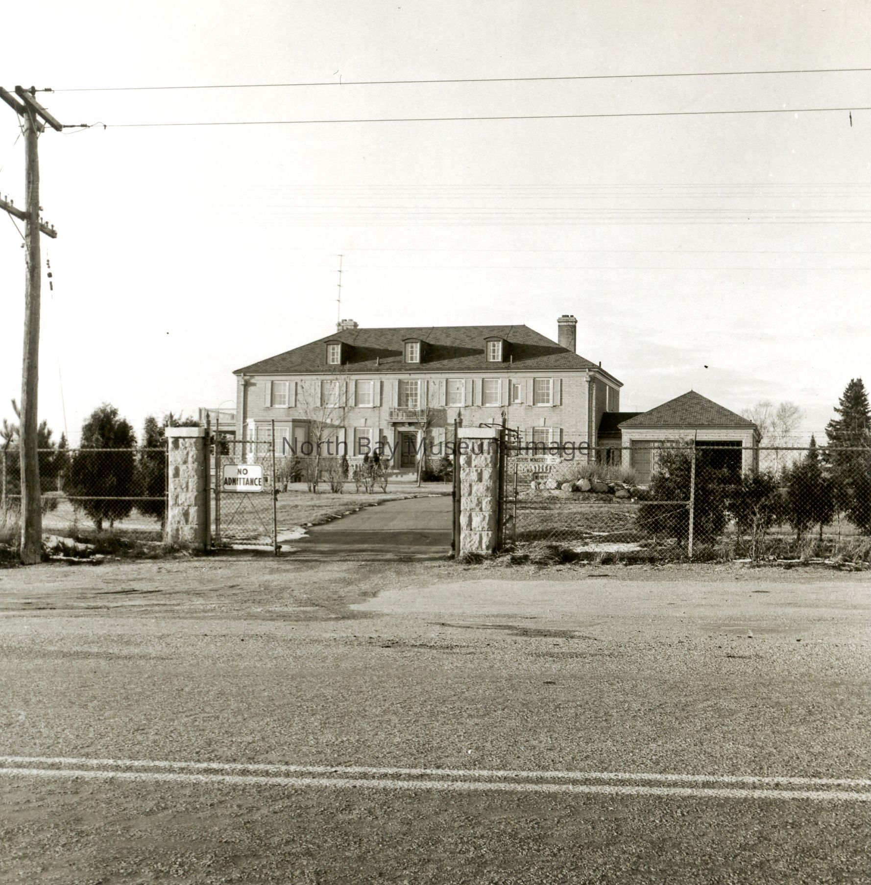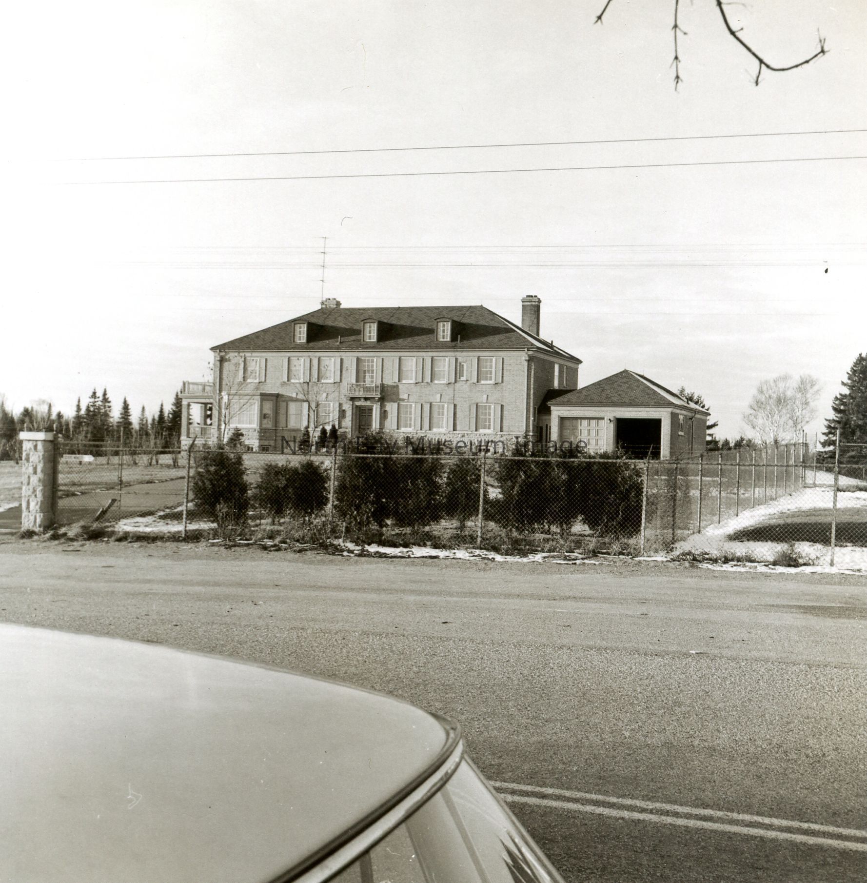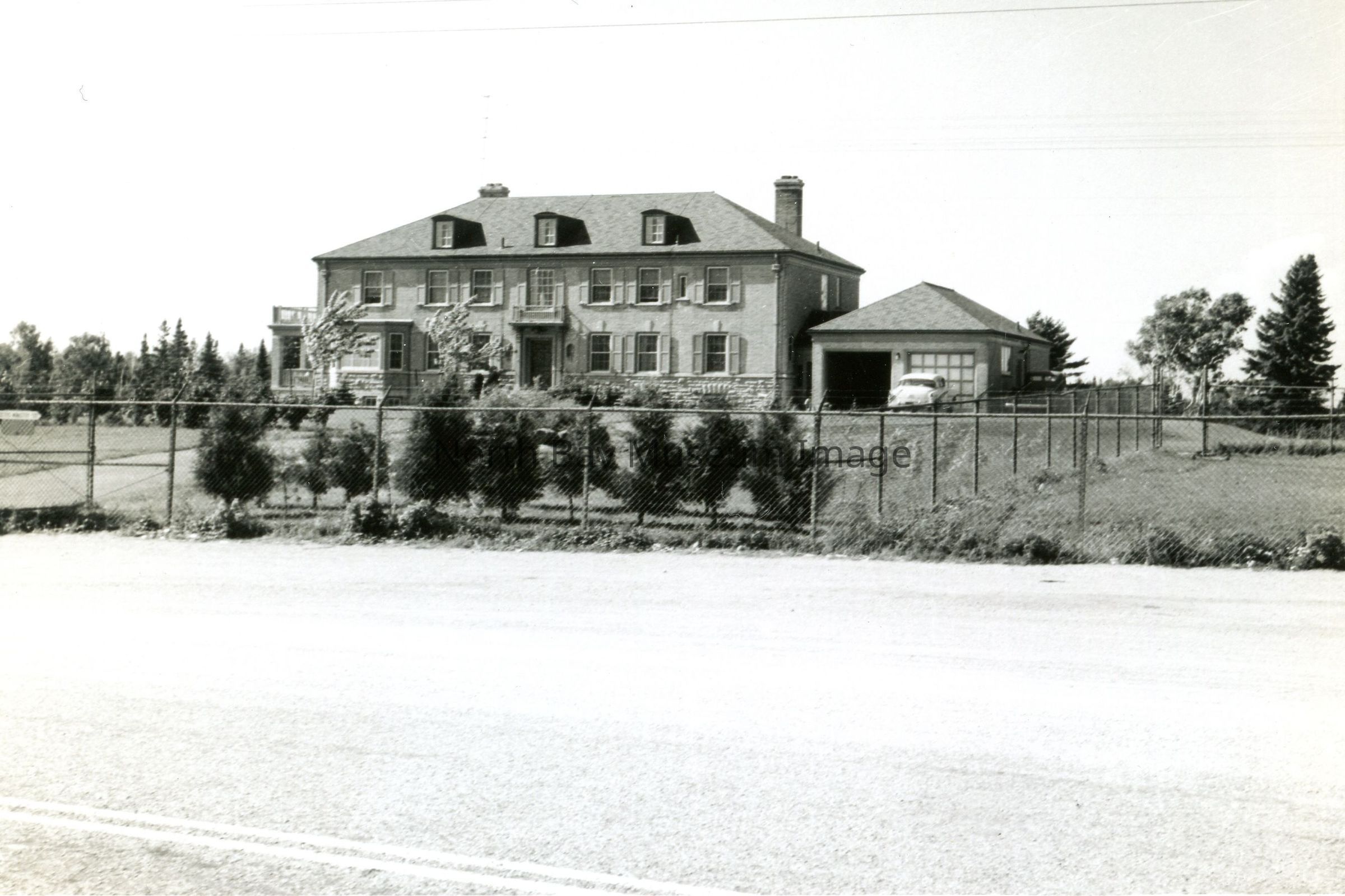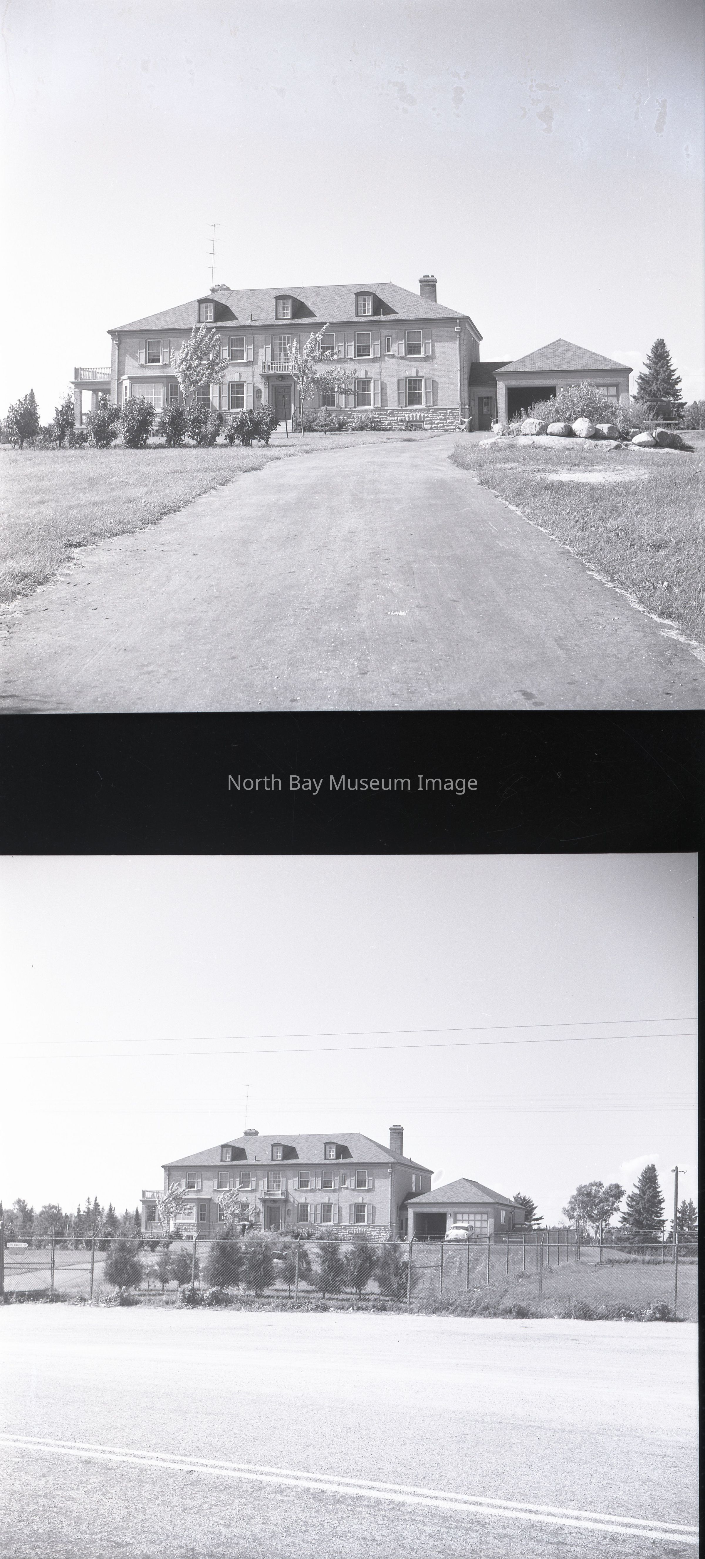 Envelope (a) contains the photograph and negative (b-h) of the Dionne Quints home in Corbeil. The photos show the large home where the Quints lived in Corbeil. The images also show the fence surrounding the the home to keep out tourists. A part of the Forder Collection. The photographers number is 10j1. All the publications of the images are written on the envelopeCreator