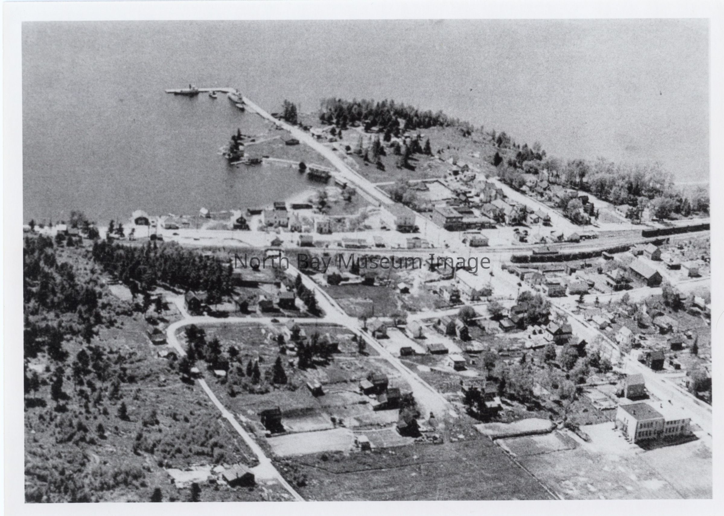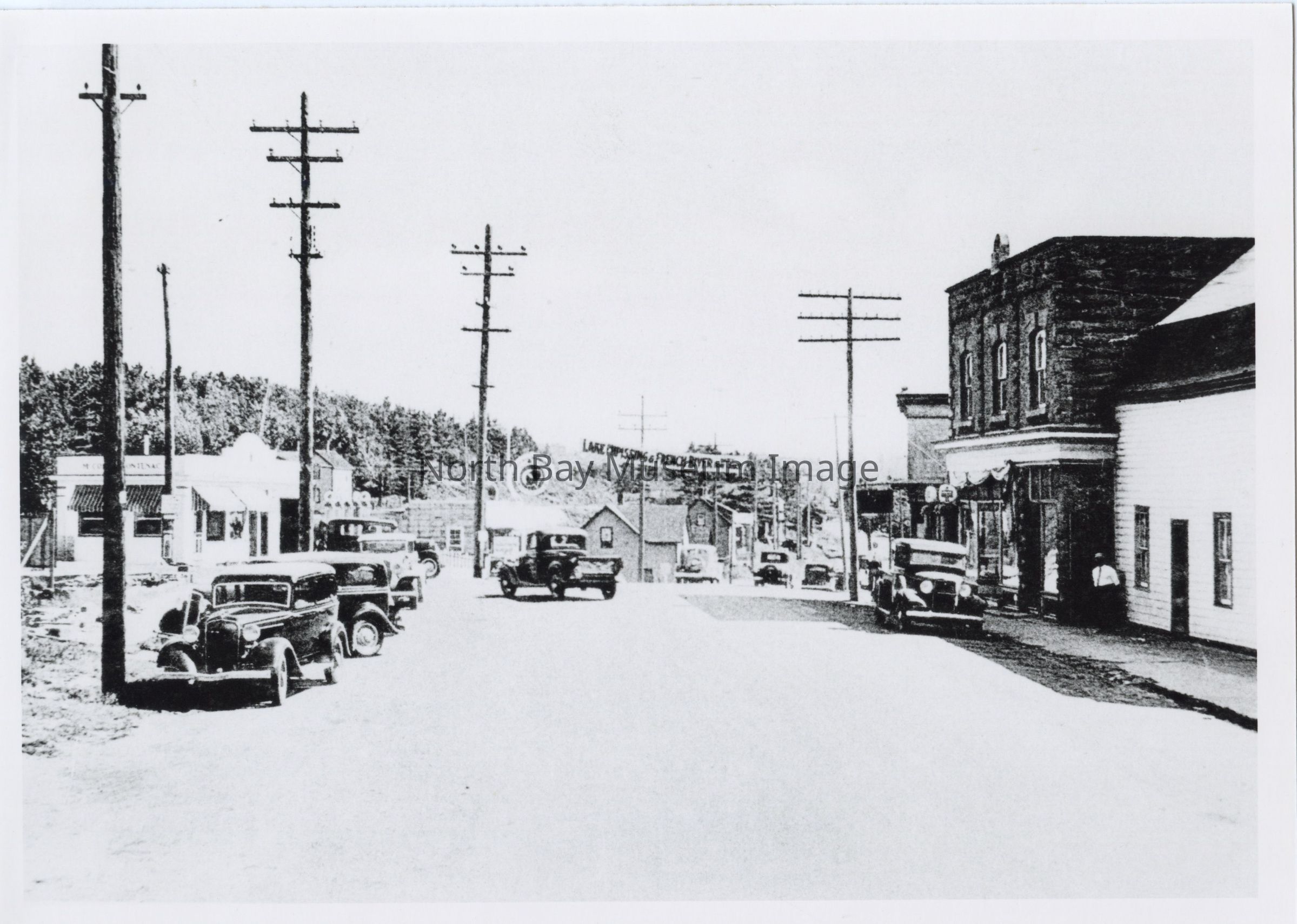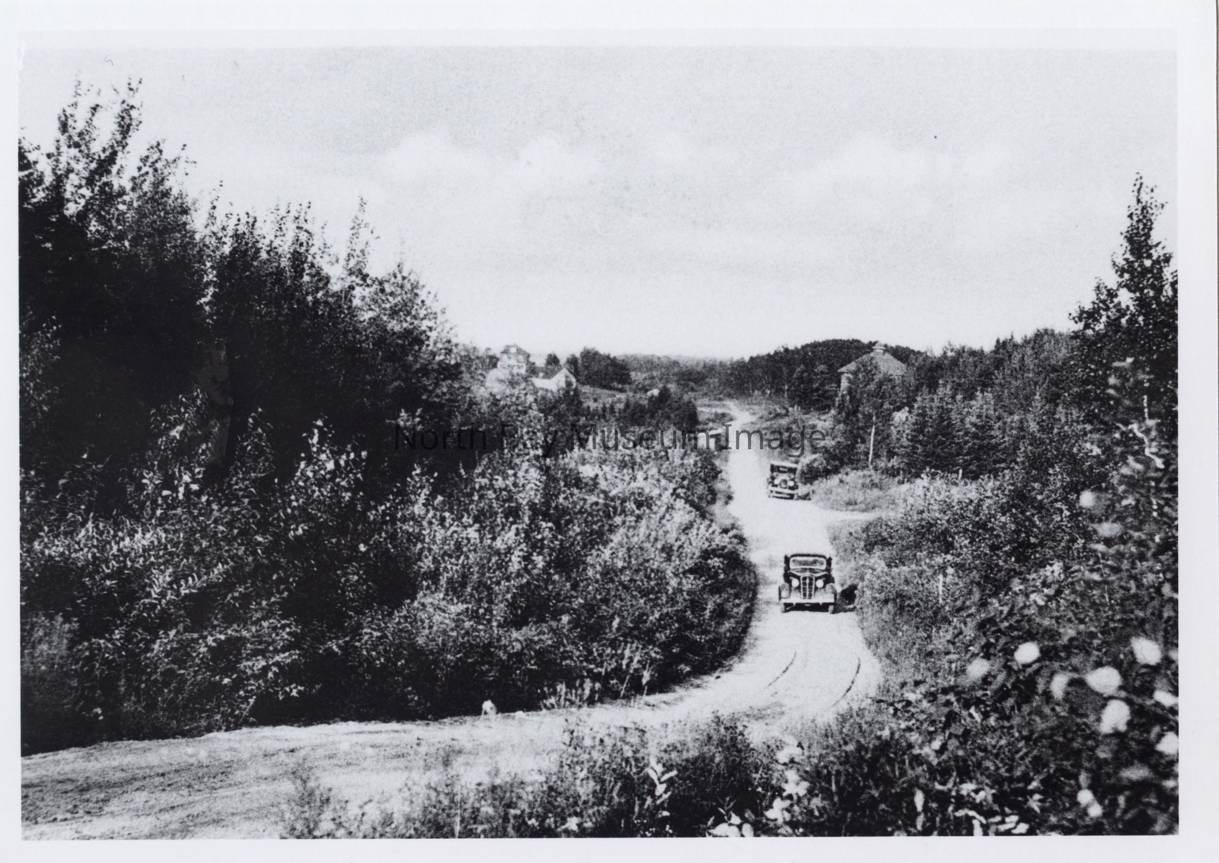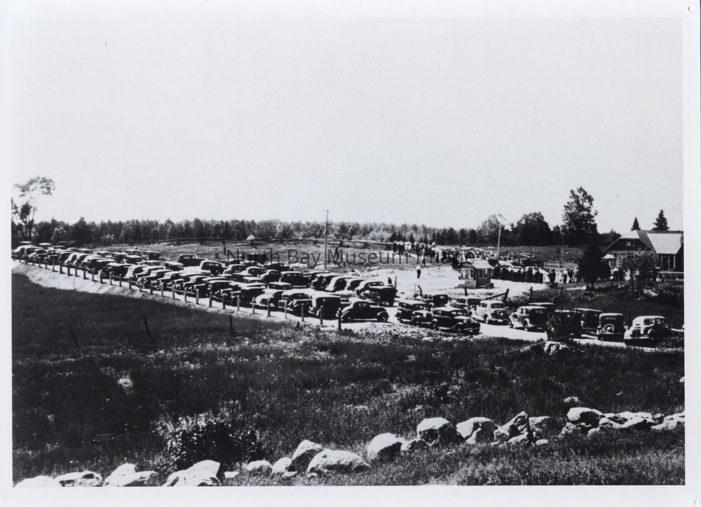 023.20.22b: 4 men in front of Dionne Quintuplets house with "No Admittance" sign.