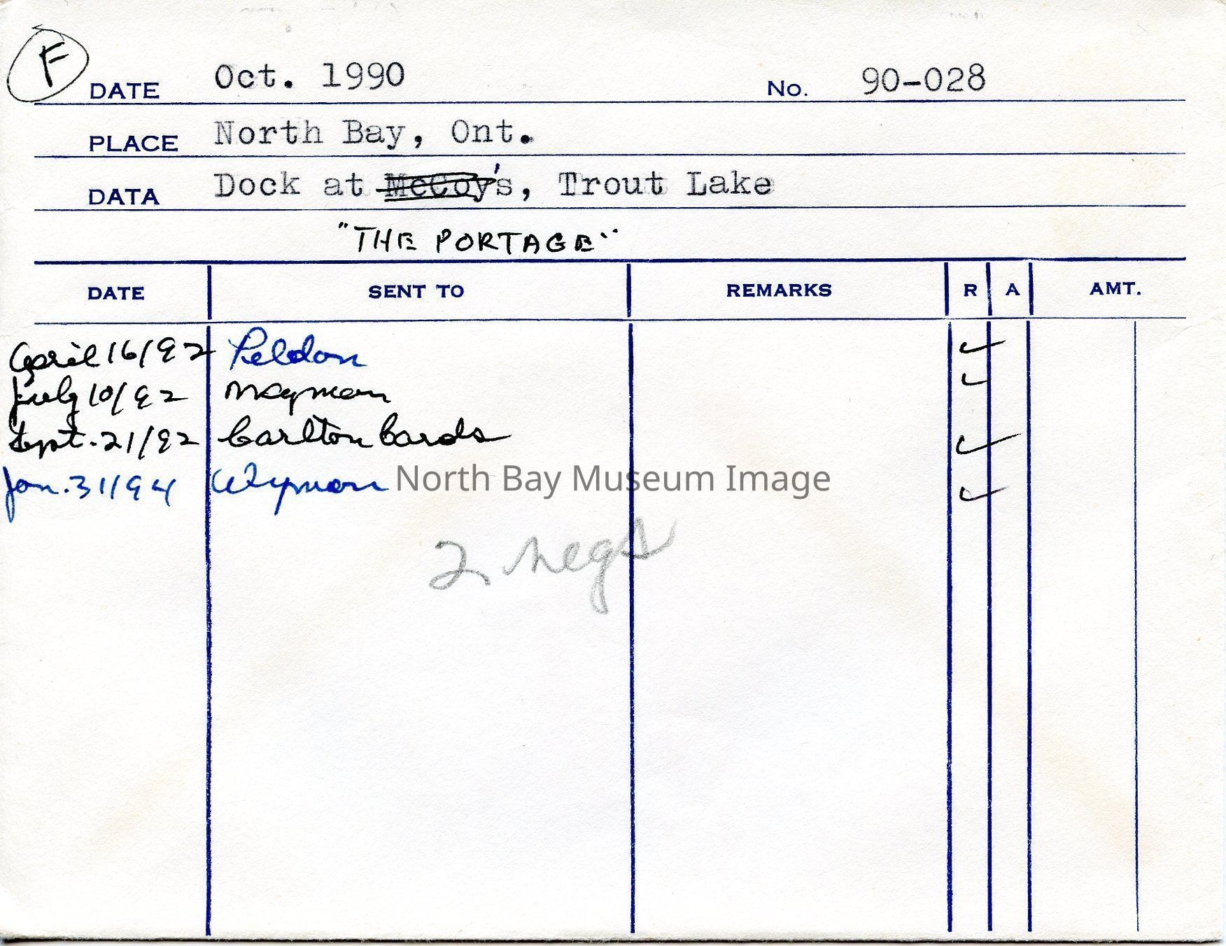 b- Negative of Trout Lake at dock of "The Portage"Creator