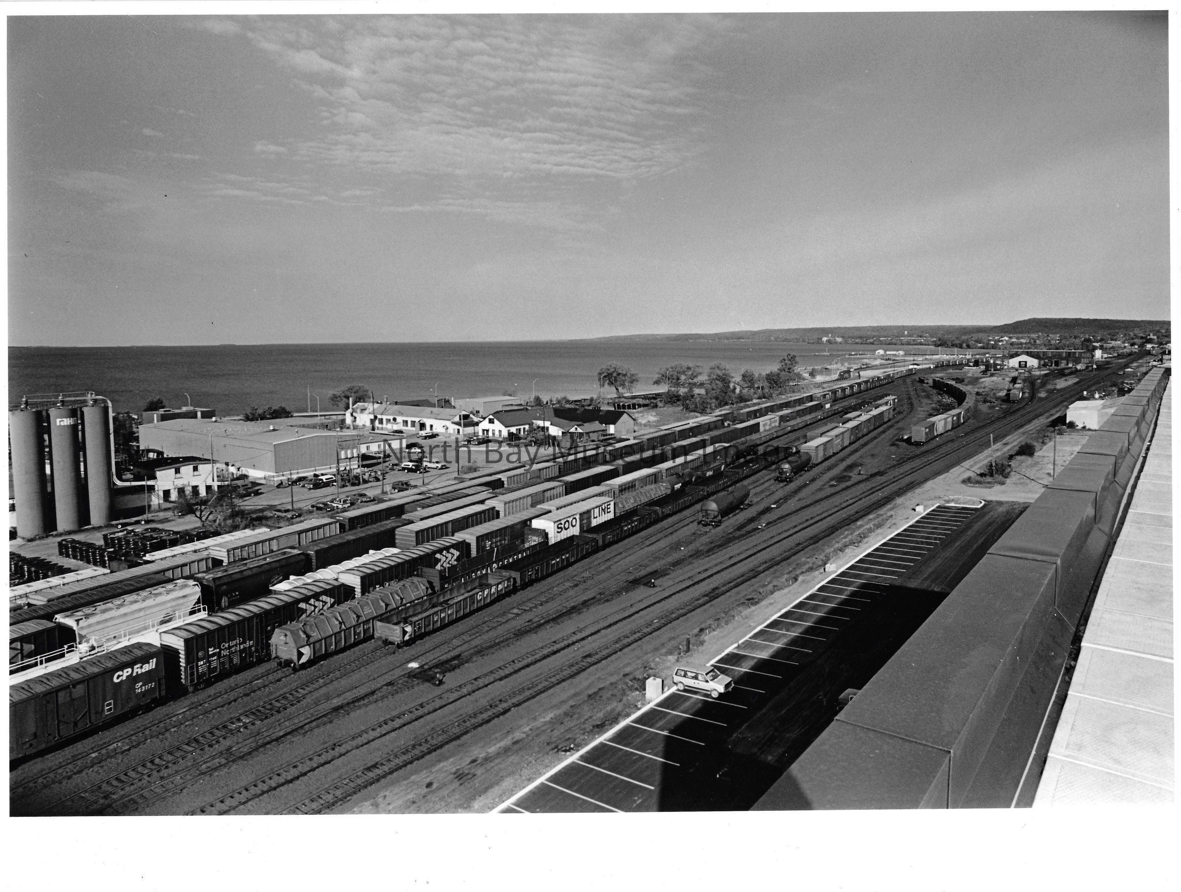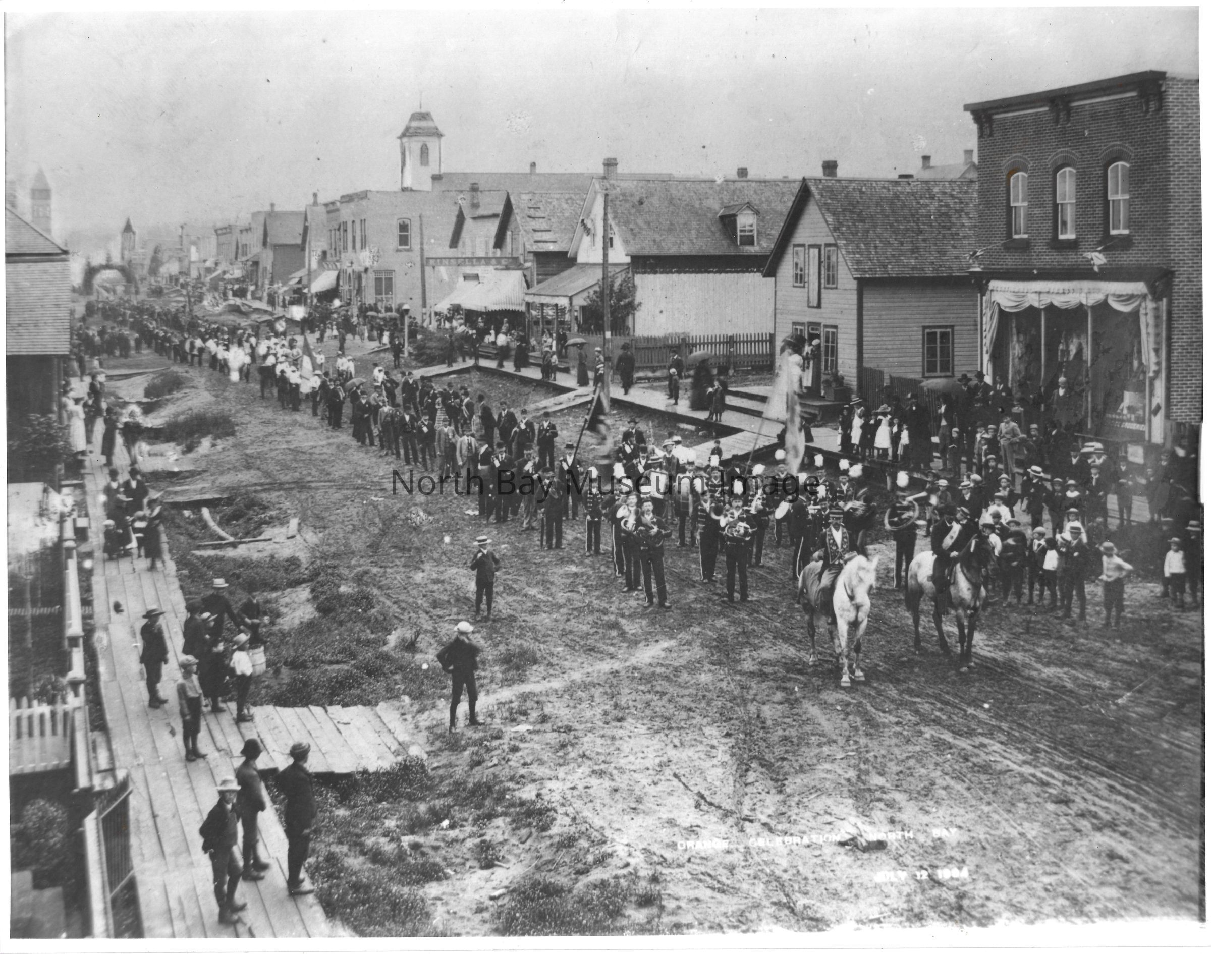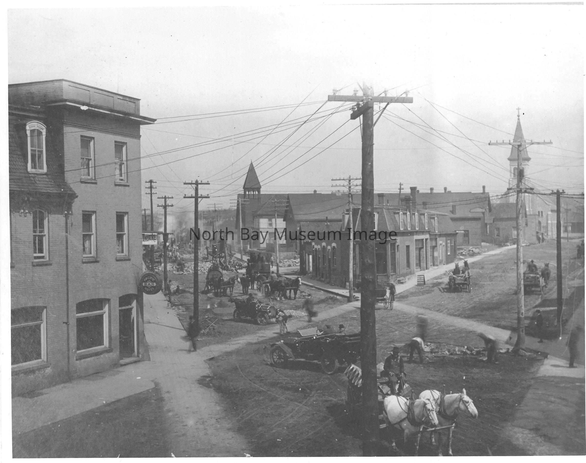 Large scale photos of early downtown North Bay before road construction, old home week and photos of CN railyards.