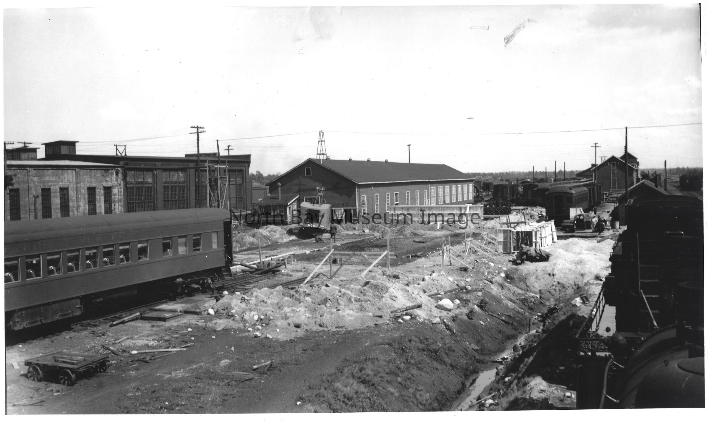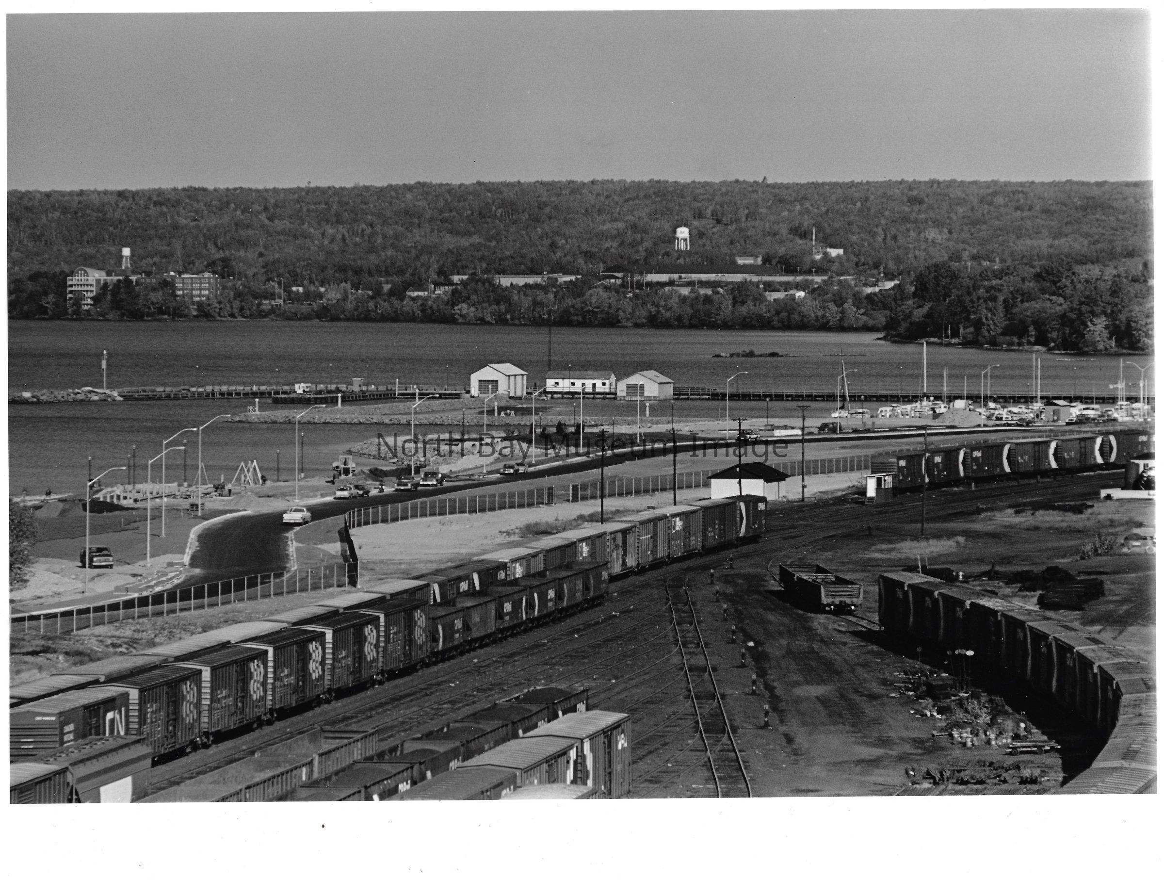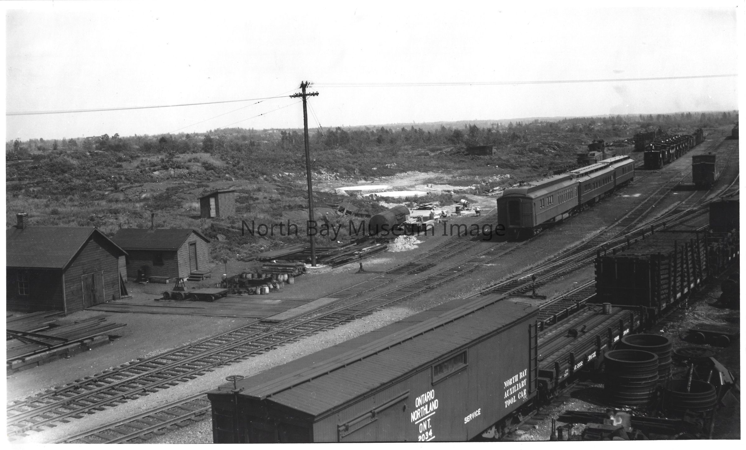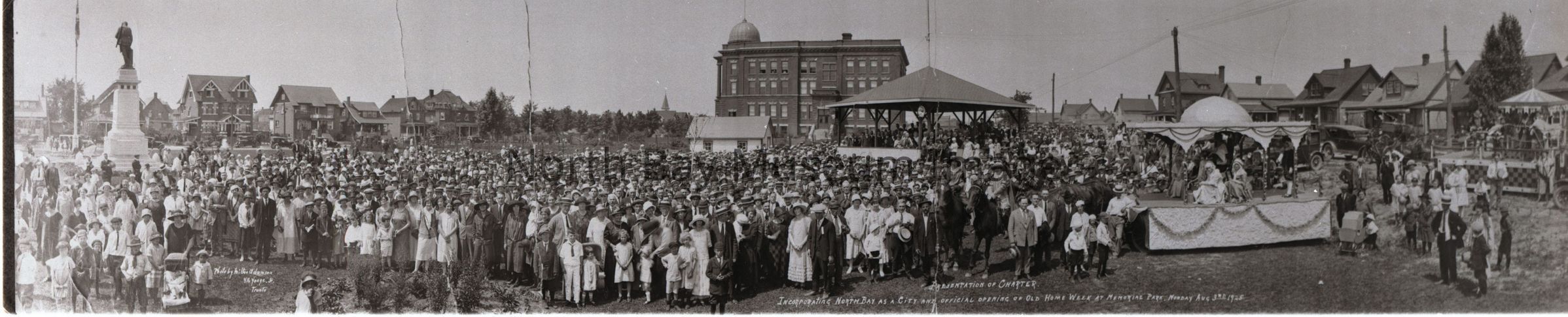Large scale photos of early downtown North Bay before road construction, old home week and photos of CN railyards.