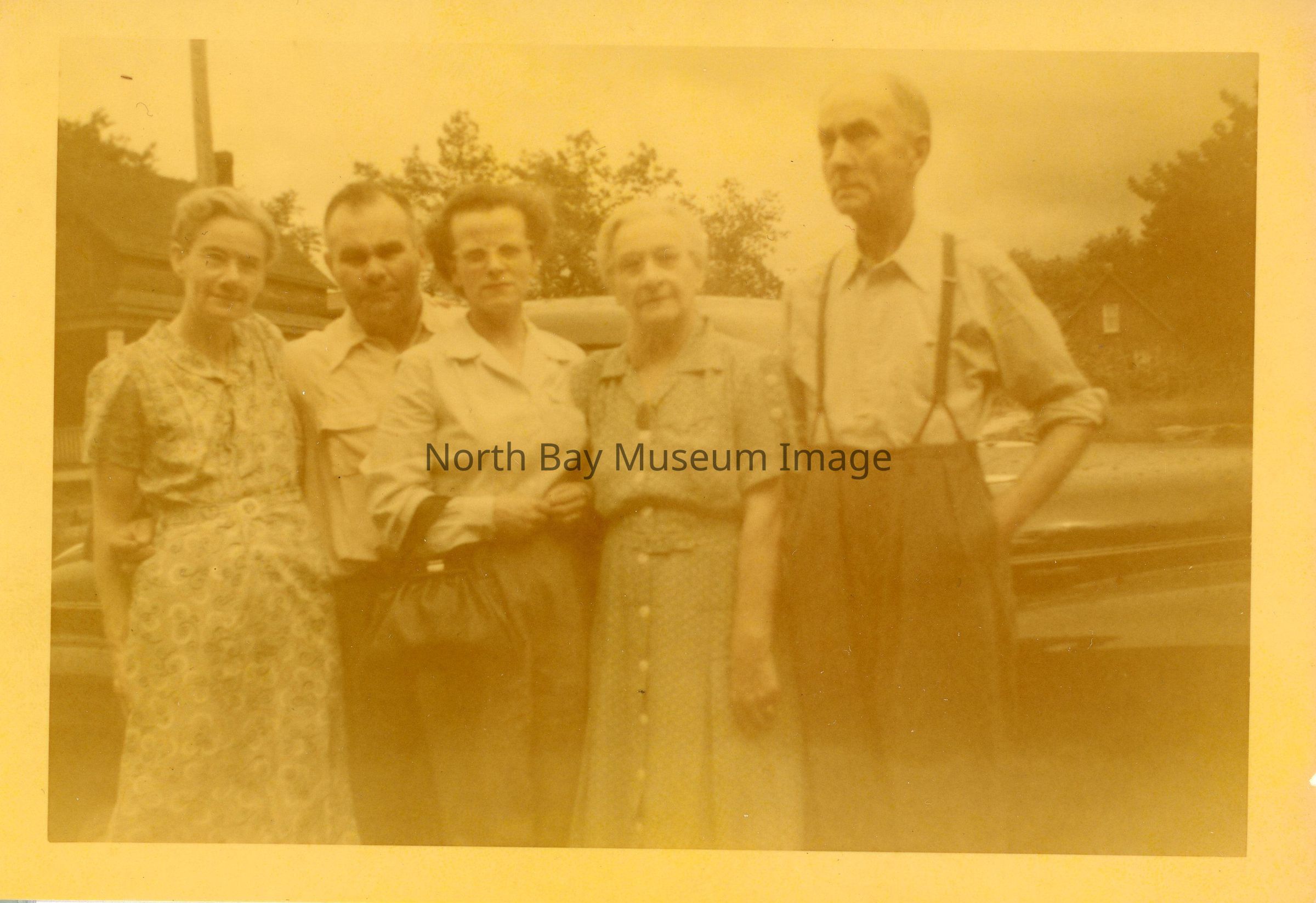 Photograph of Physlis (sister to Kae and Ralph) Elston, Ralph and his wife Laura Elston, Frank Elston and his wife.