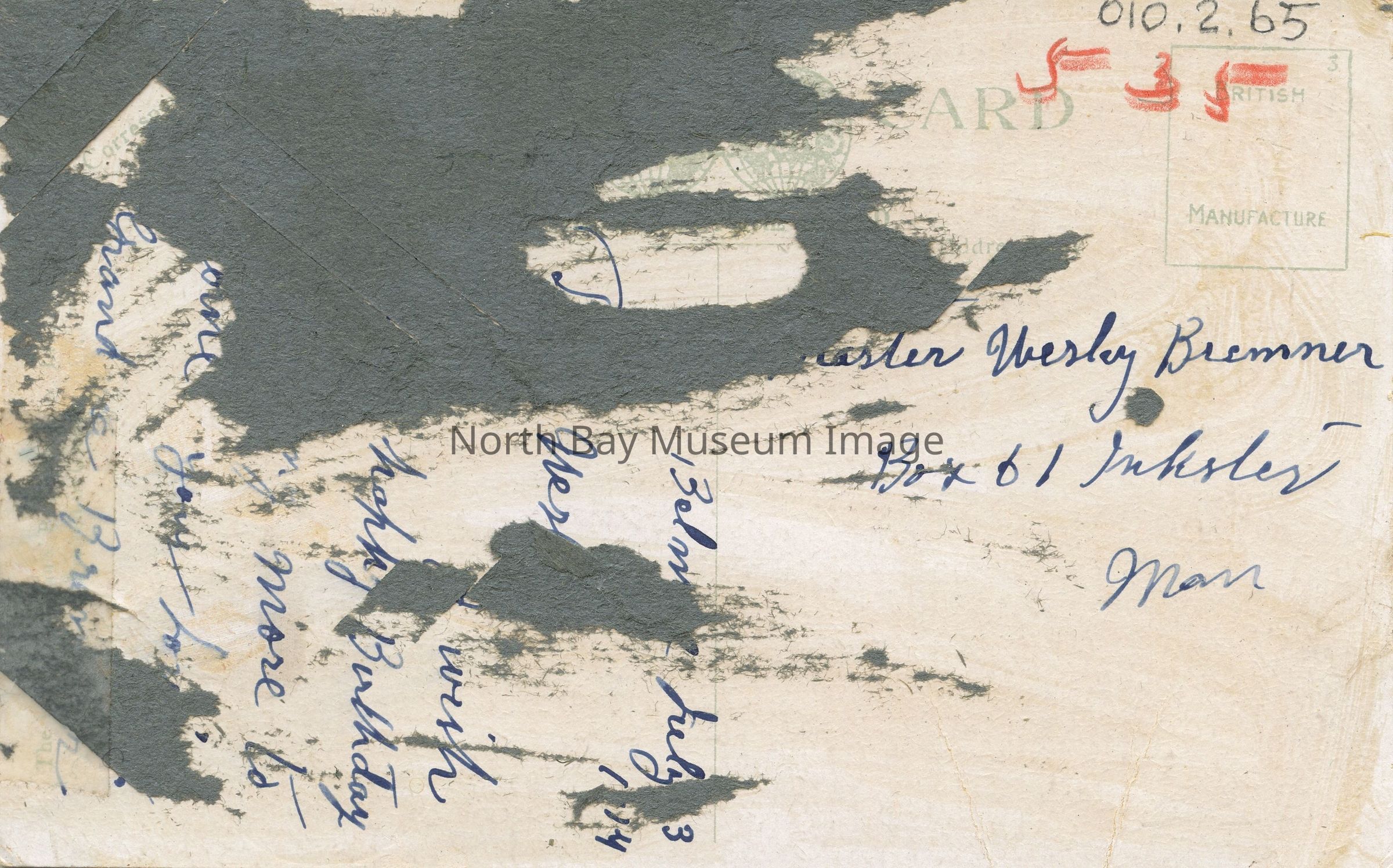 Addressee - Master Wesley Bremner, Box 61, Inkster, Man.