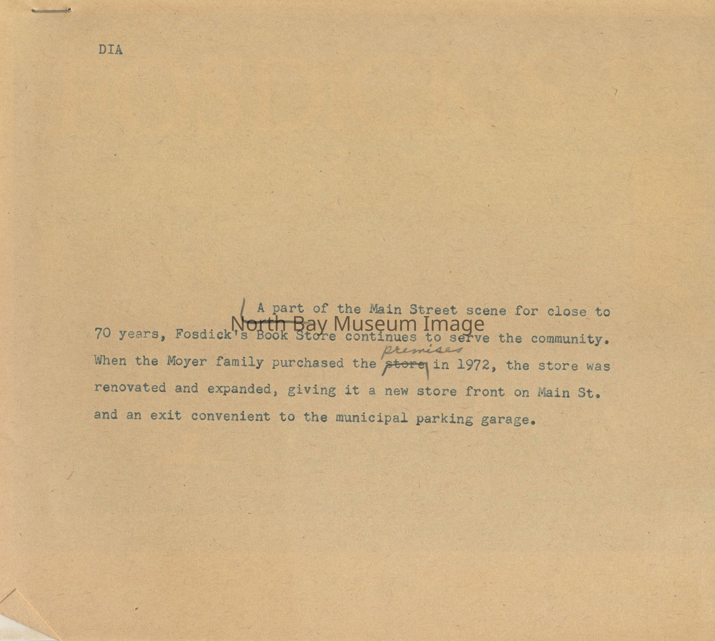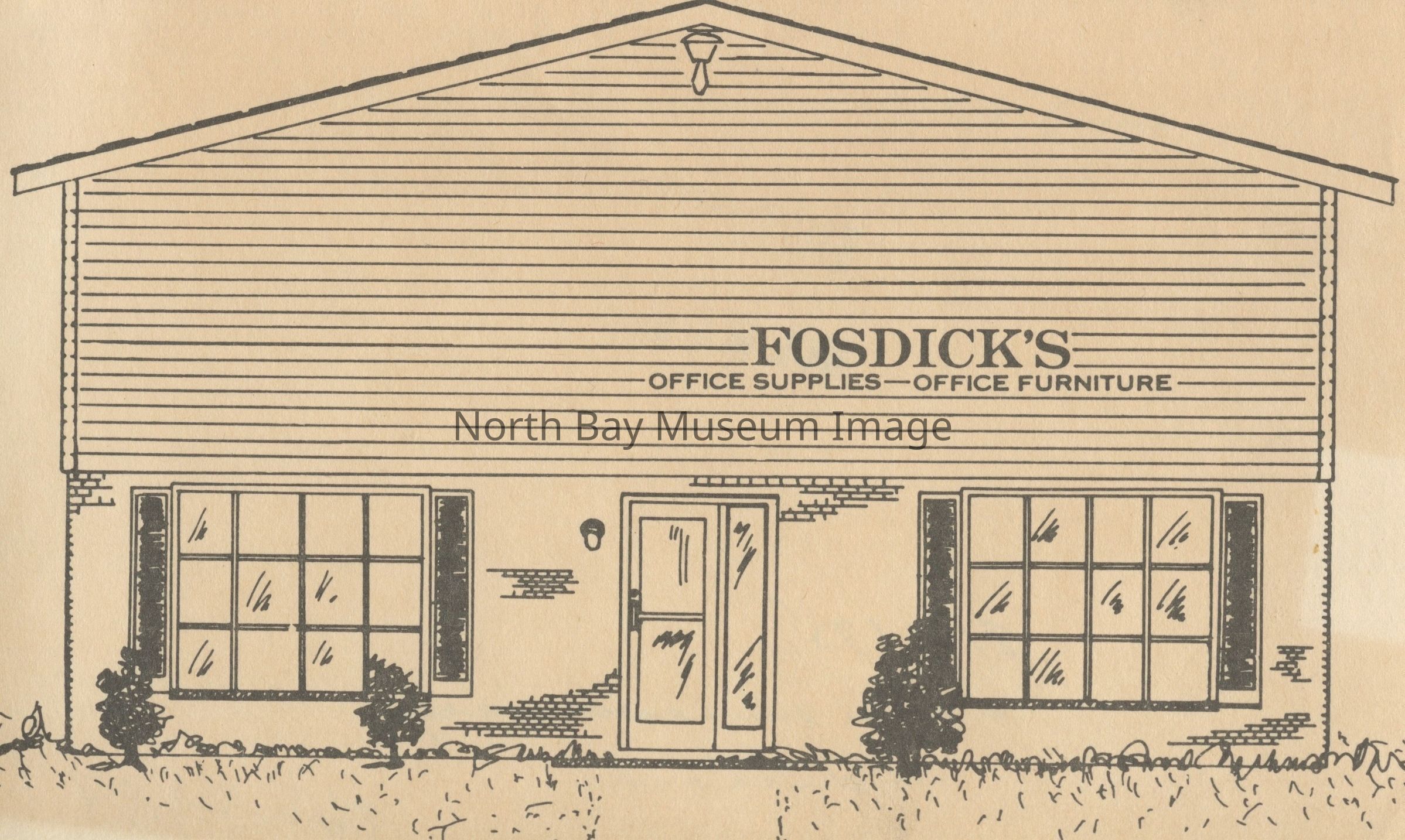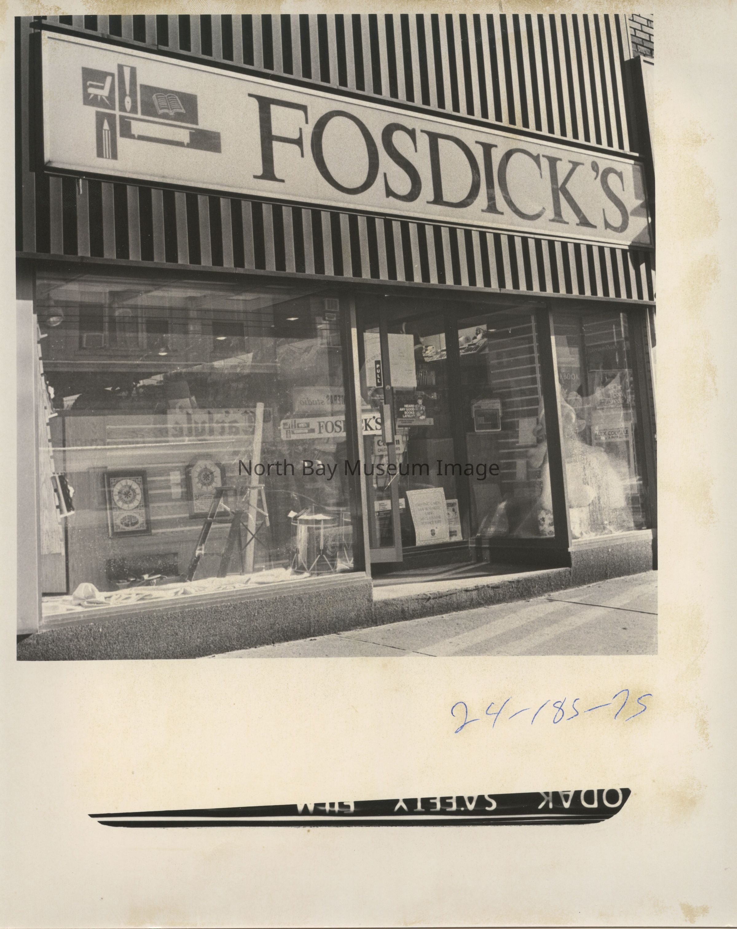Photos of exterior of Fosdick's bookstore, office supply and furniture store.
