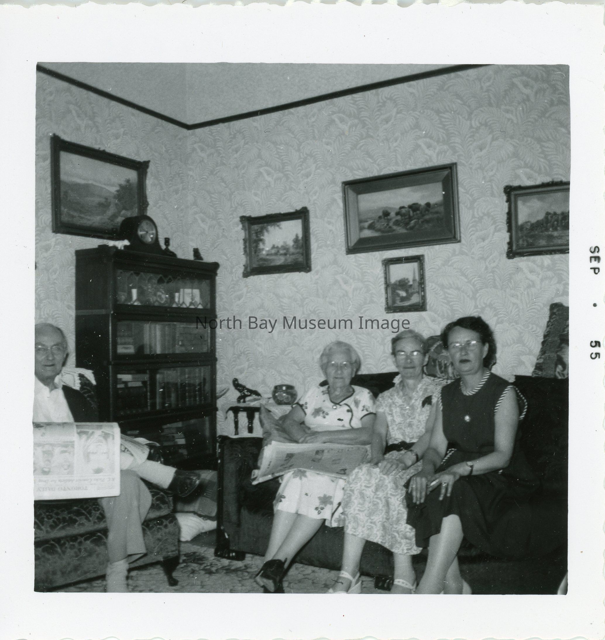 Photograph of Frank, Laura, Phylis, and Kae in their living room of the house on McIntyre Street.