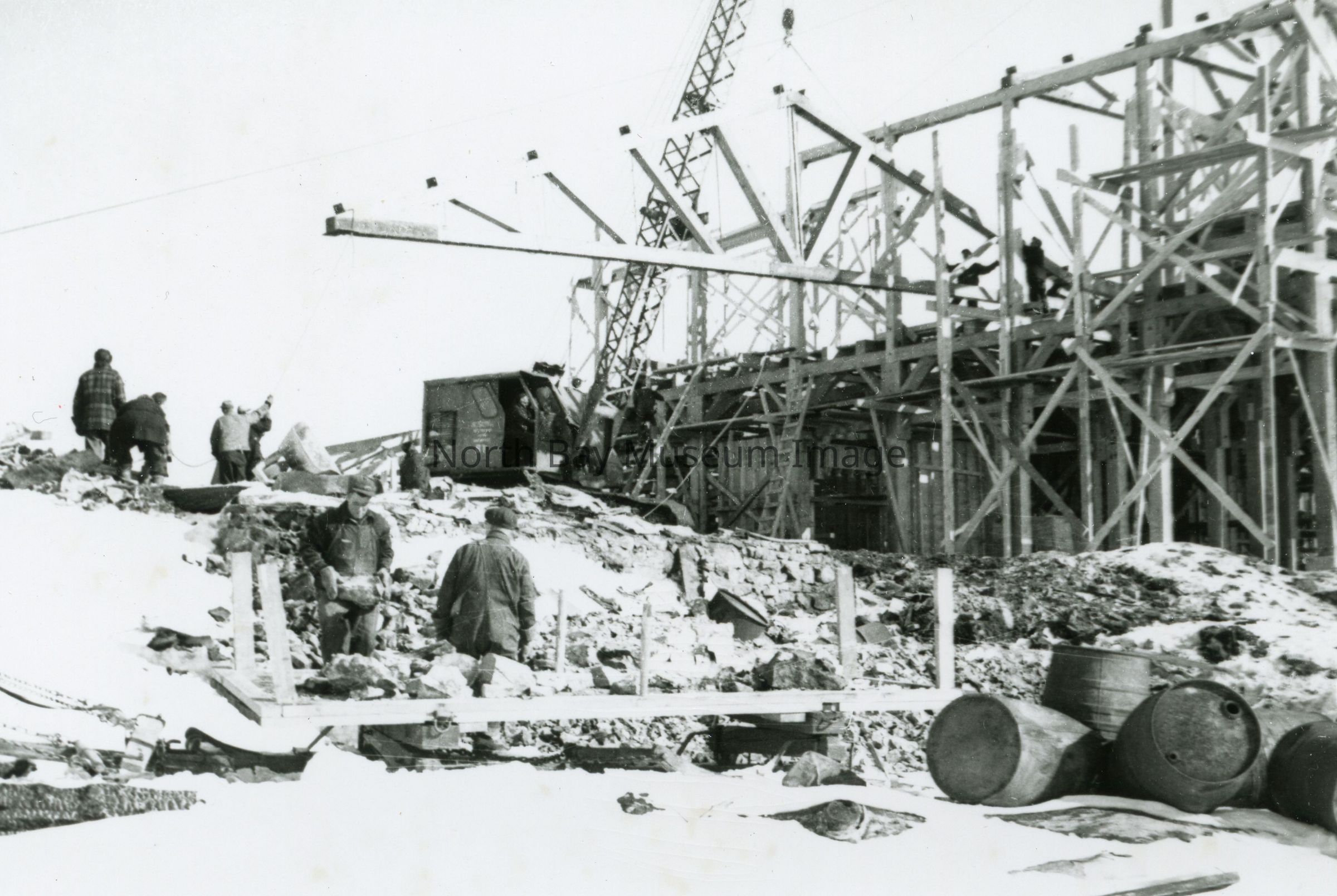 Black and white photo album of the Geo. Gordon Lumber Mill construction. Originally accessioned A131.