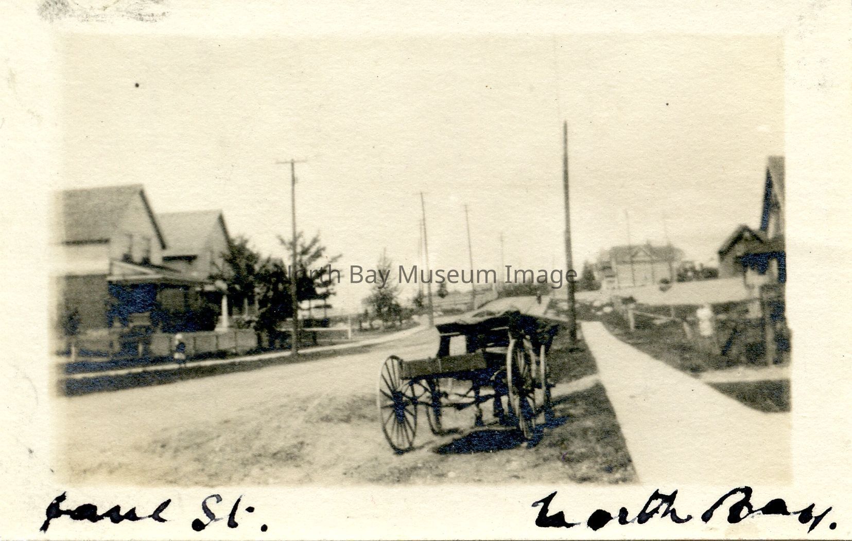 Photograph of Jane St., North Bay - Black & white. - 2.3 x 1.3. - View of Jane St. with wagon in foreground.