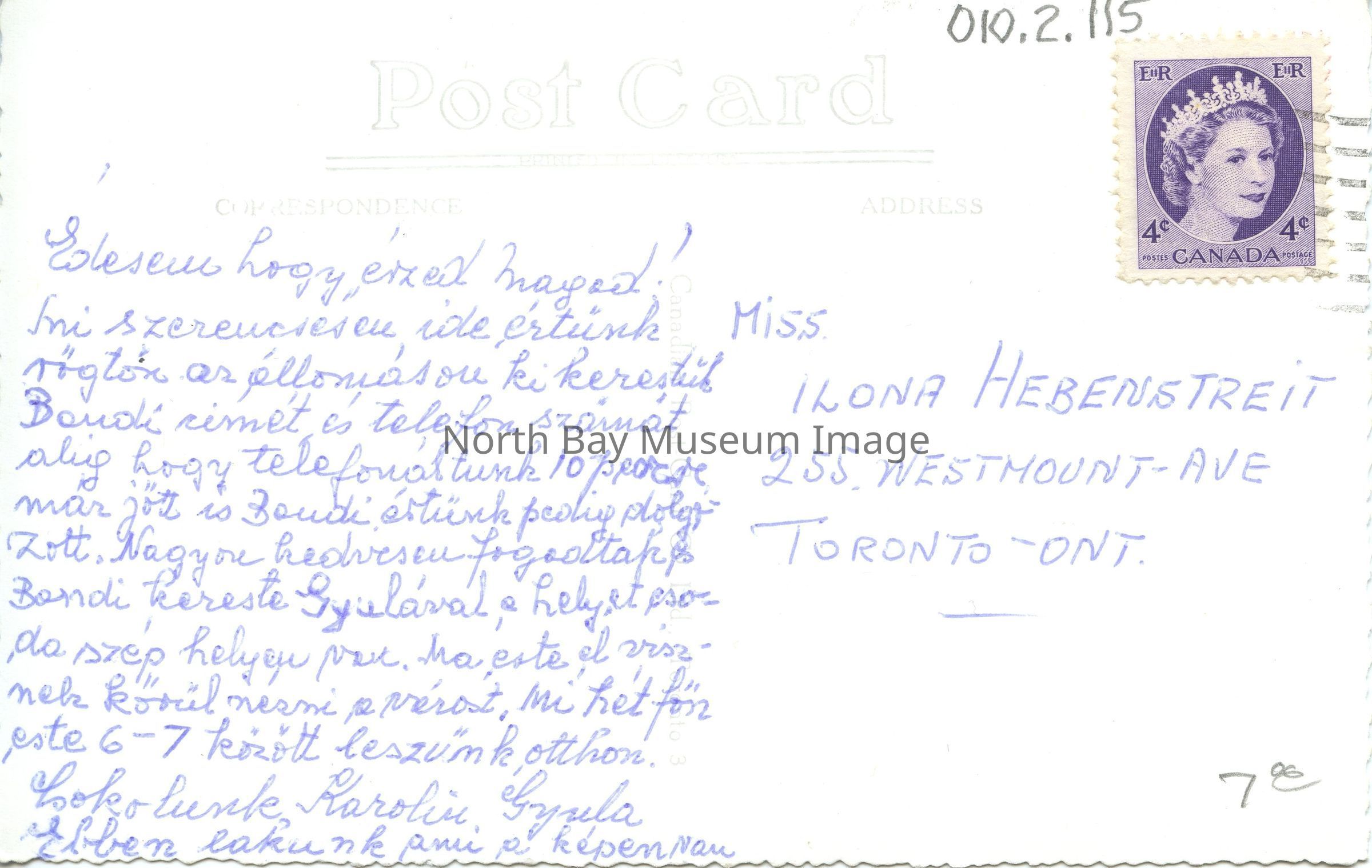 Addressee: Miss Ilona Hebenstreit, 255 Westmount Ave, Toronto, Ont.
