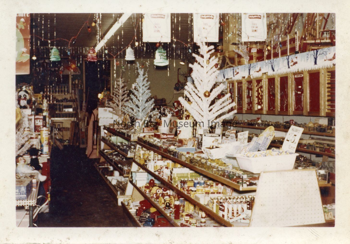 Photo of John Halliday & Son Hardware showing interior of store at Christmas.