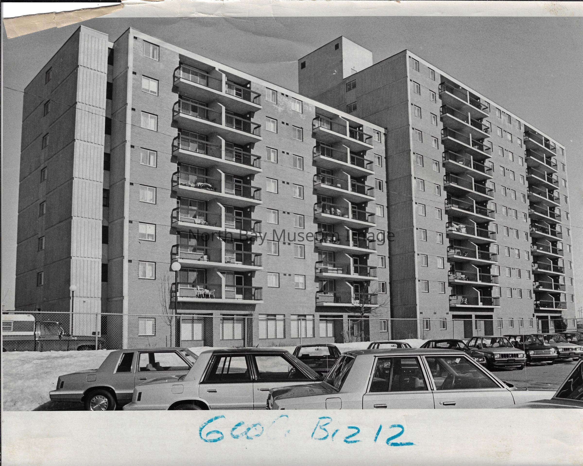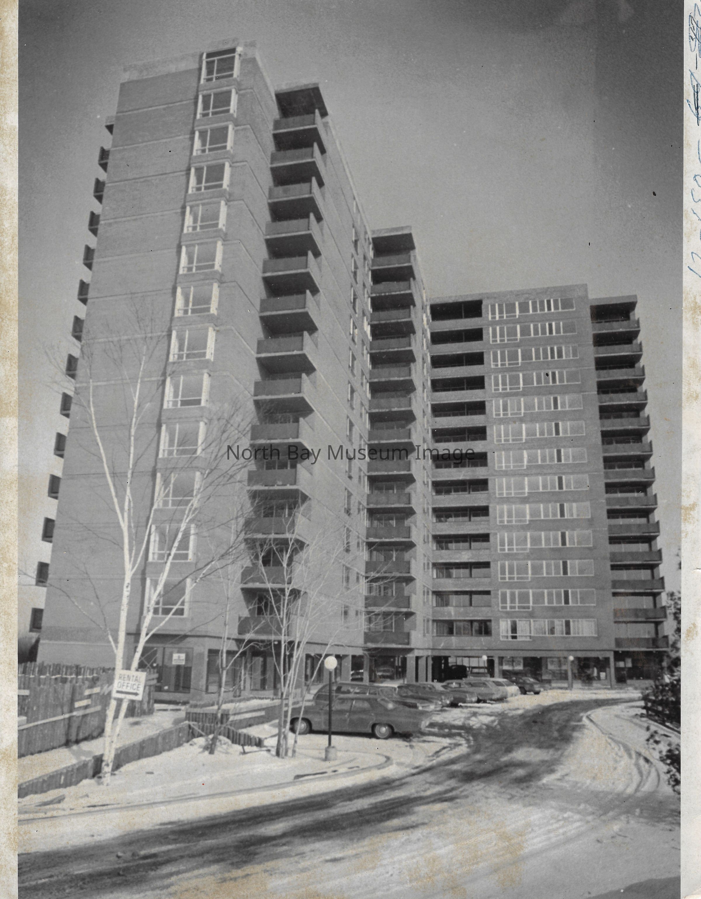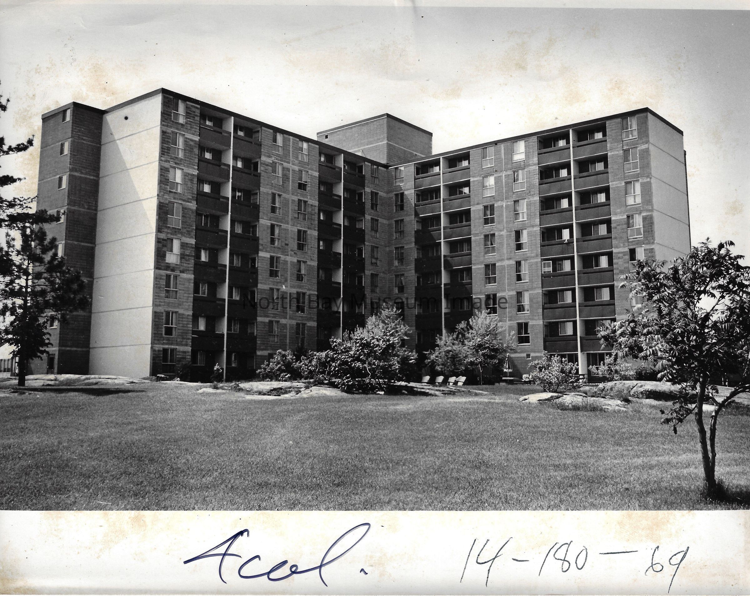 Photos and newspaper articles concerning construction for Lakeview Towers, Woodlands, Edgewater and Golden Age highrises.