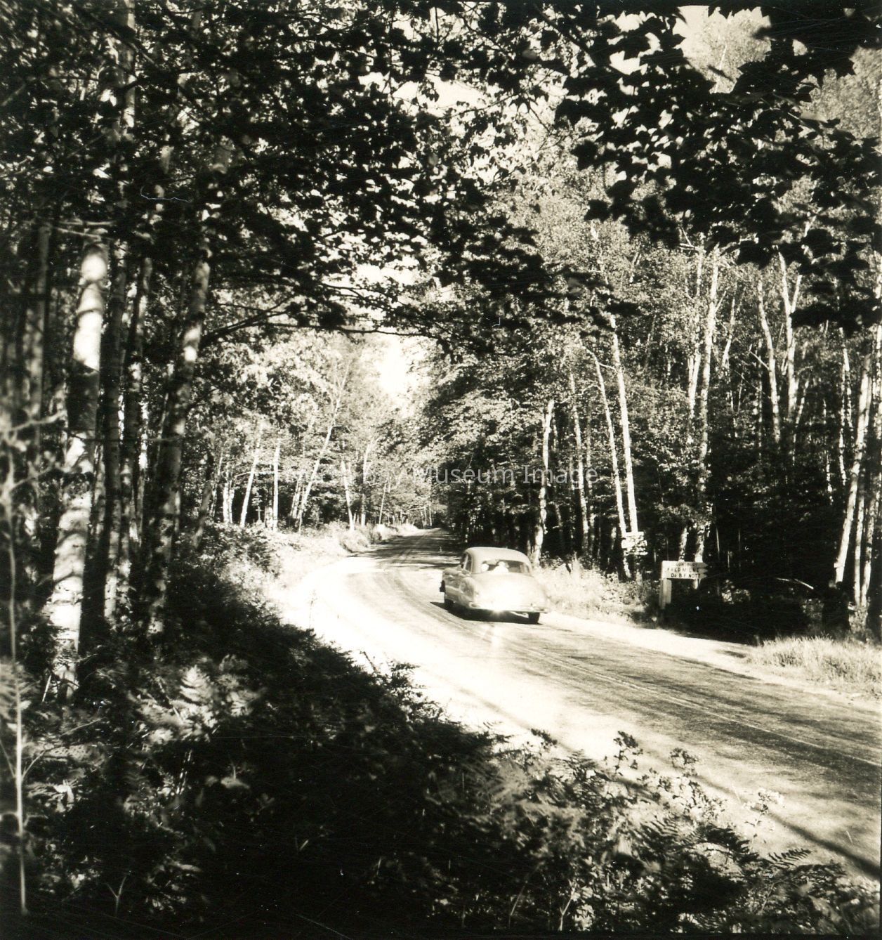 Envelope (a) contains photographs (b) of Highway 63. The images show a car driving on Highway 63. The image shows a car driving along highway 63. The highway appears to be amongst the bush, as there are lots of trees surrouding the car and the highway respectively. A part of the Forder Collection. The Photographers original photo number in 1A58. All of the publications are listed on the envelope.Creator
