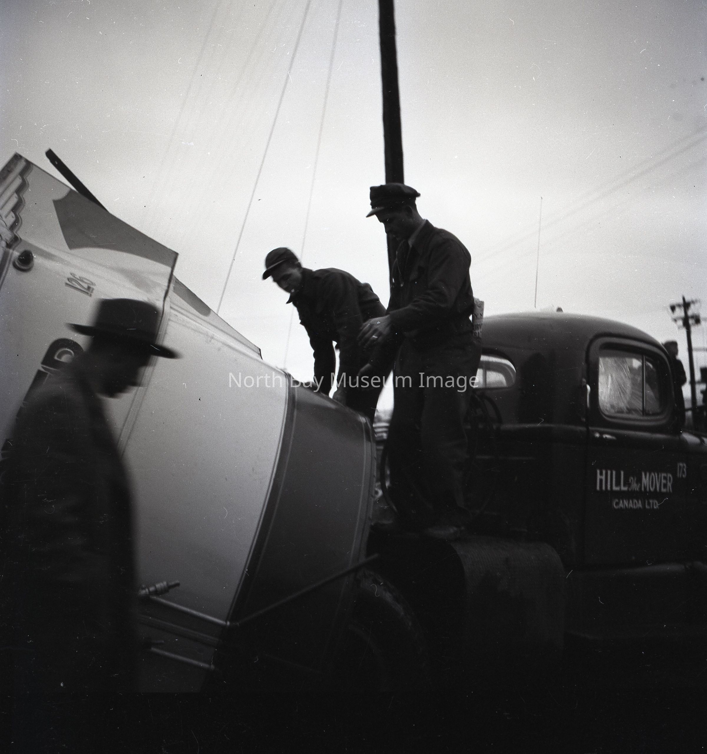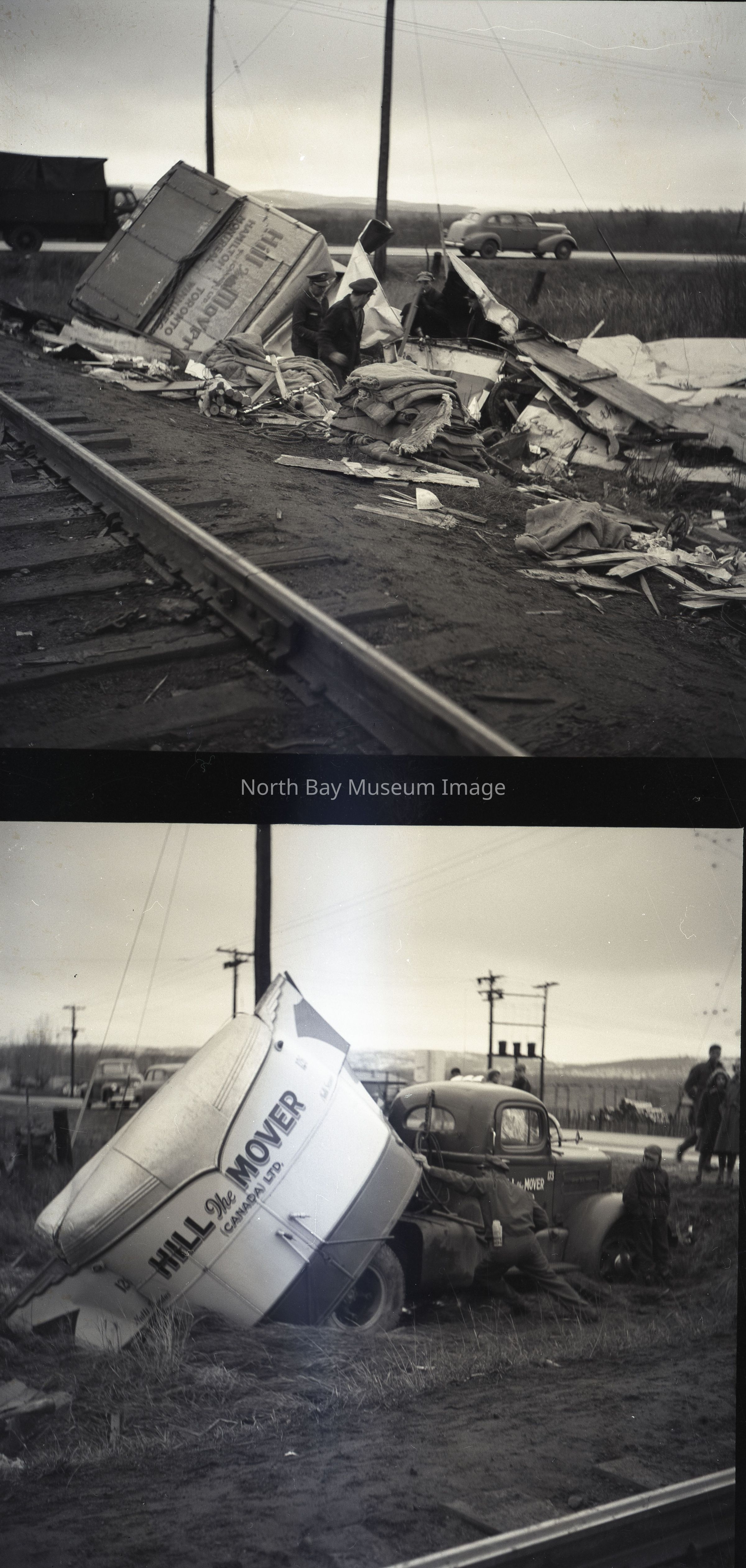 019.60.436a - Envelope. Inscriptions: "Hill the Mover Wreck", "O.N.R. crossing east entrance", "Deisel engines cut moving van in two", Nov. 8, 1950".