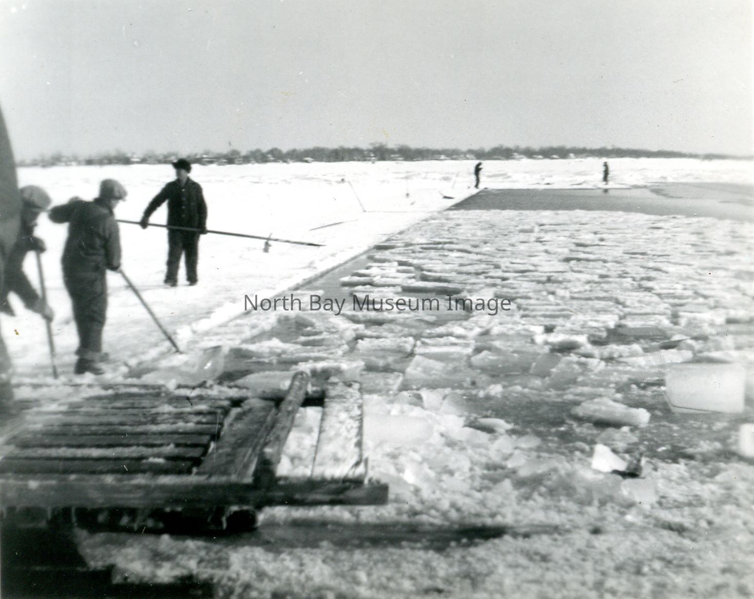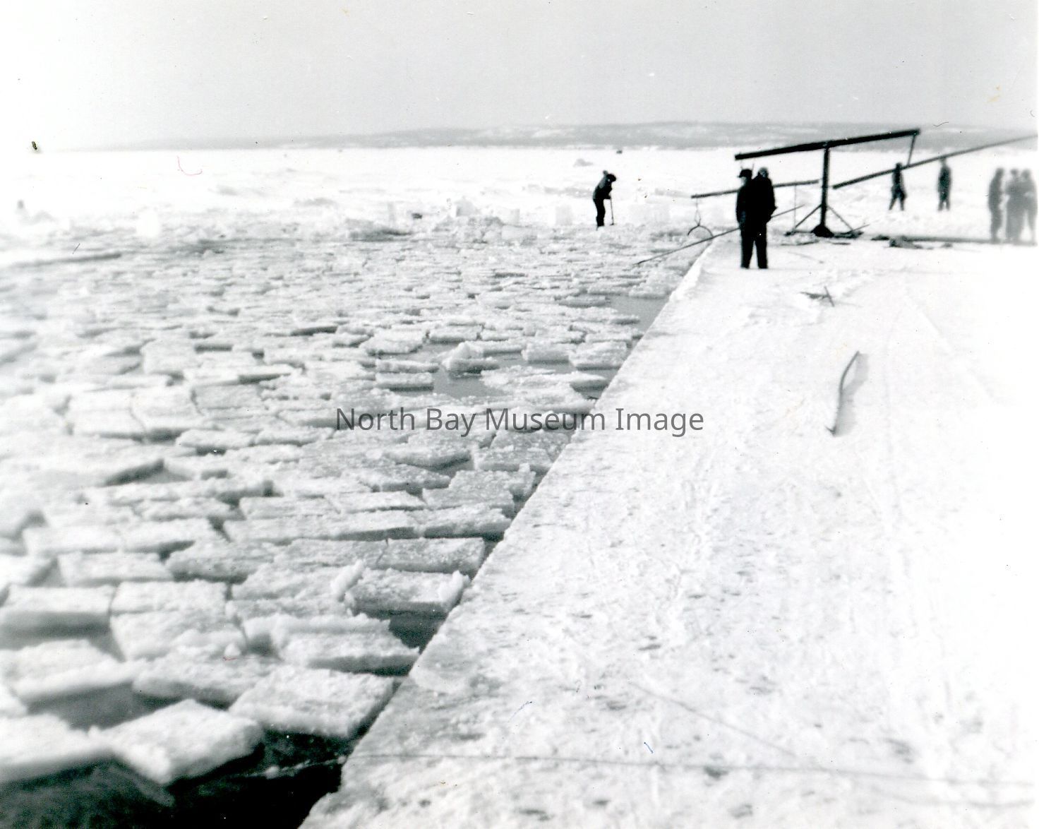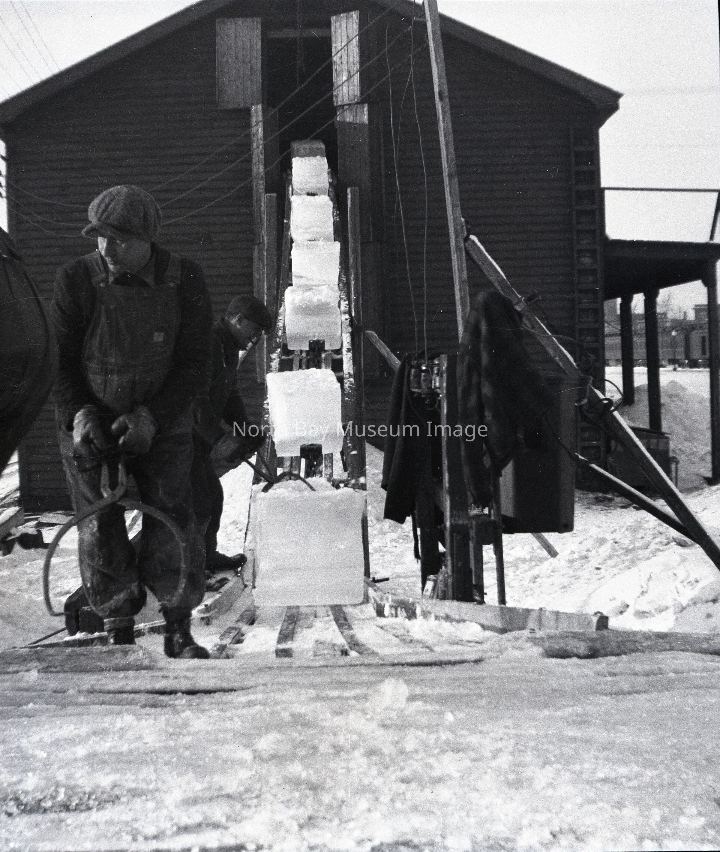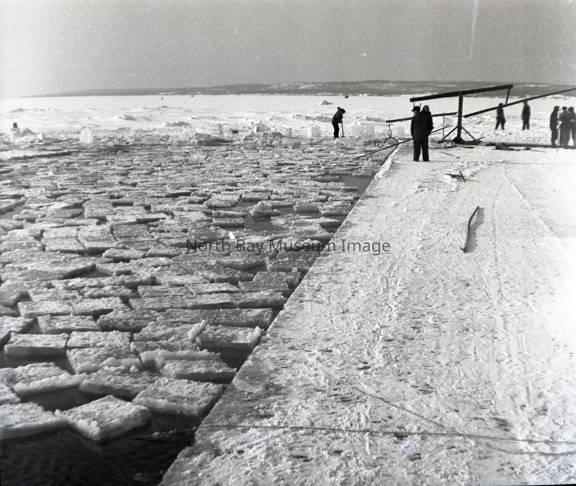 Envelope (a) containing photos and negatives (b-q) of Ice Harvest on Lake Nipissing. Photos include men removing ice, horses transporting ice, and related machinery. Photographer William Forder's original number was 85 A-G. Places published are printed on the front of the envelope.Creator