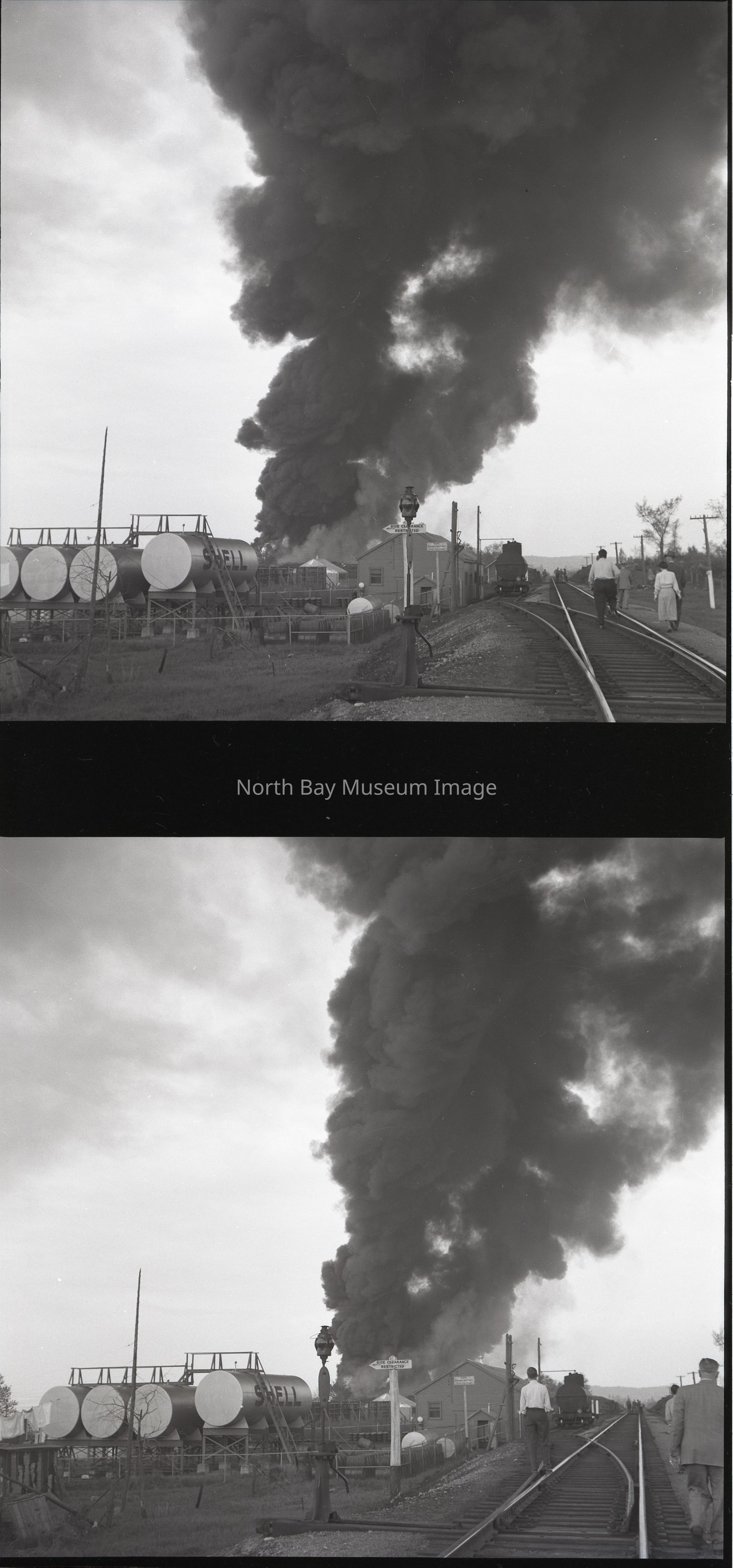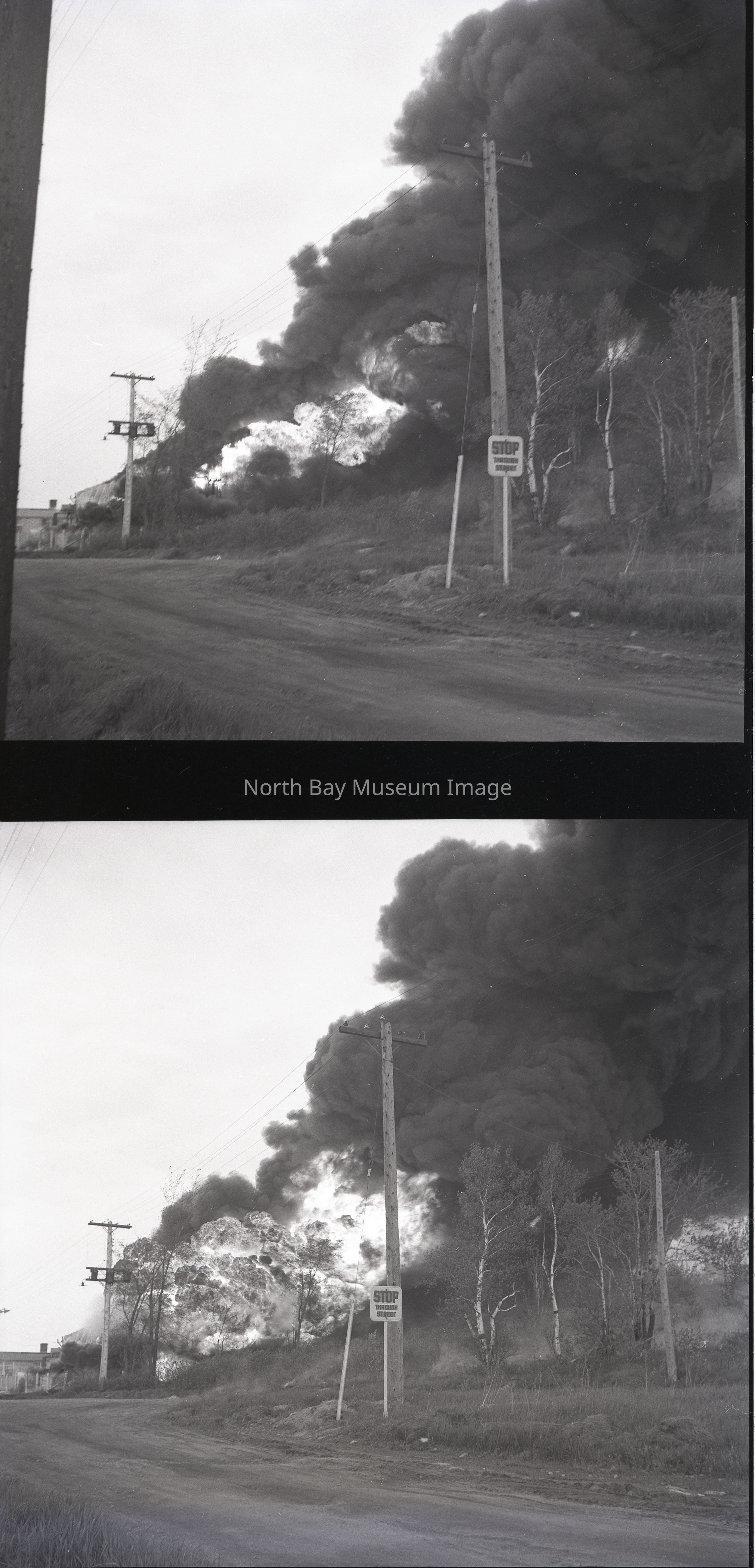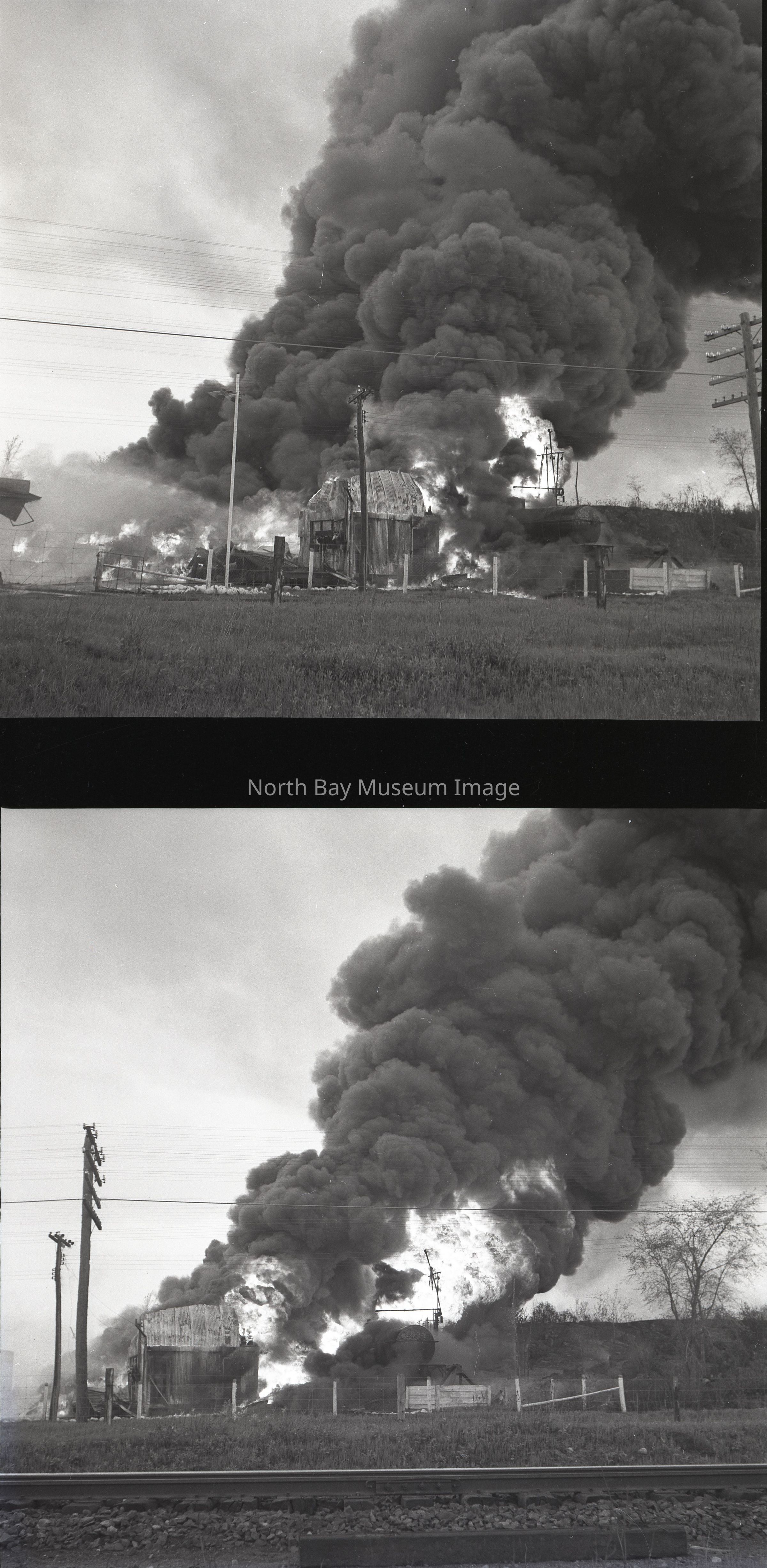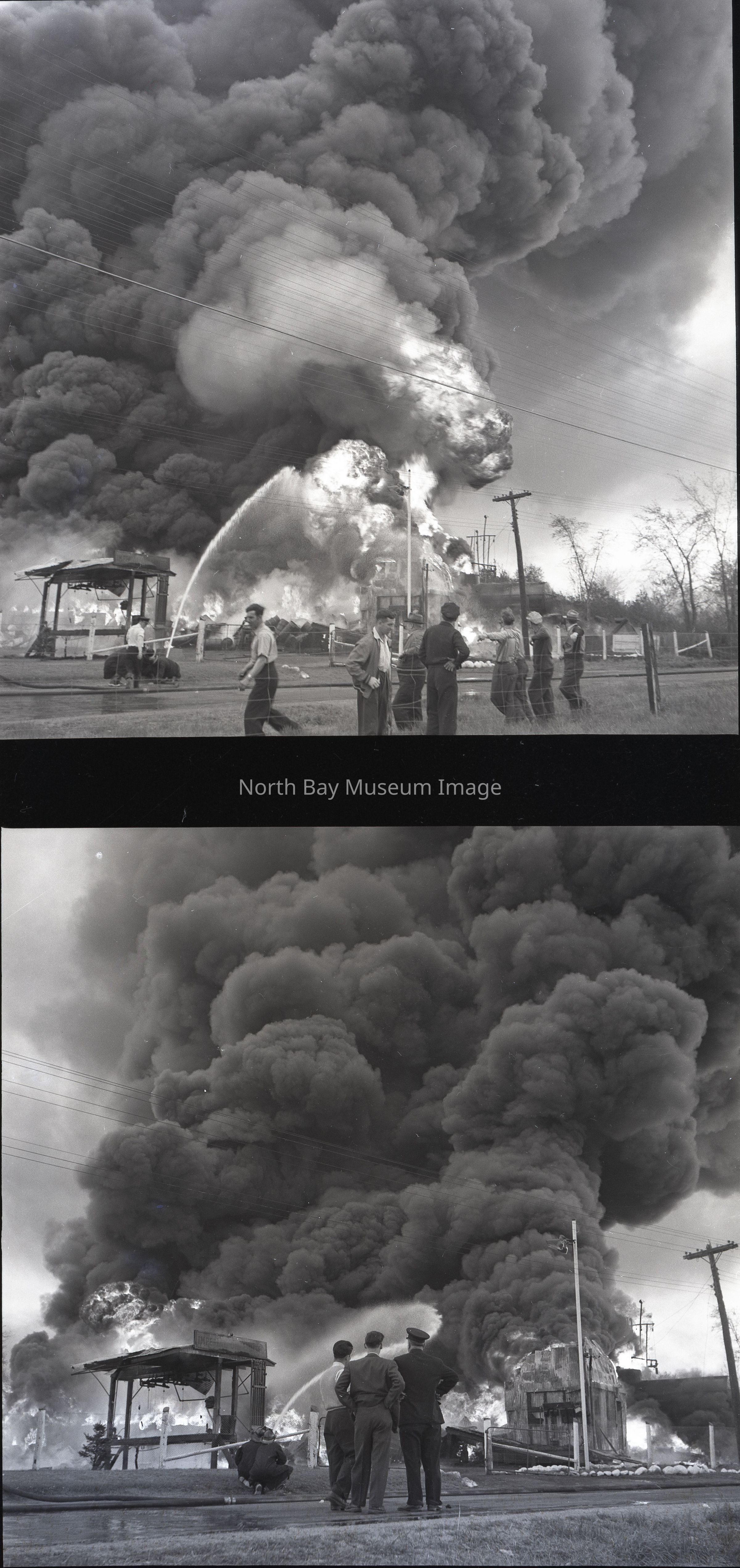 Envelope (a) contains pictures and negatives (b-r) of the Imperial Oil Warehouse Fire in North Bay on May 30, 1950.