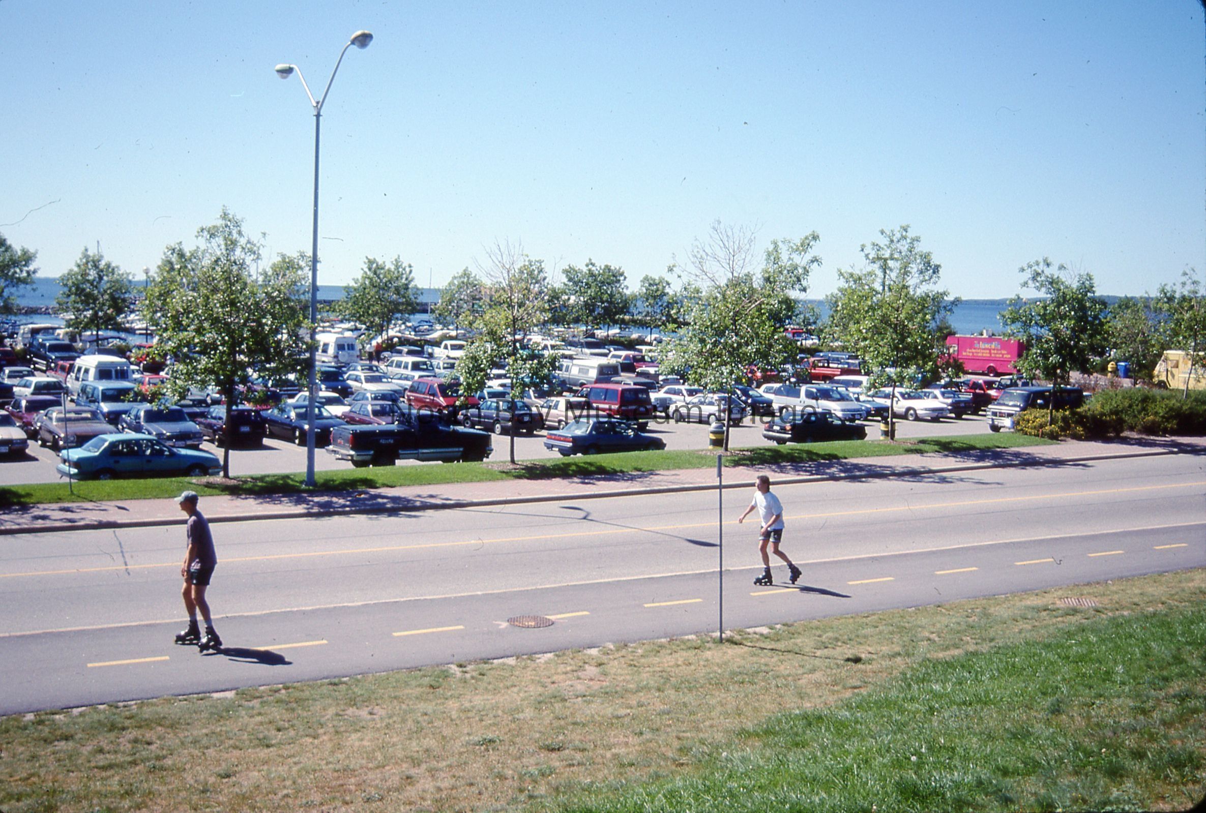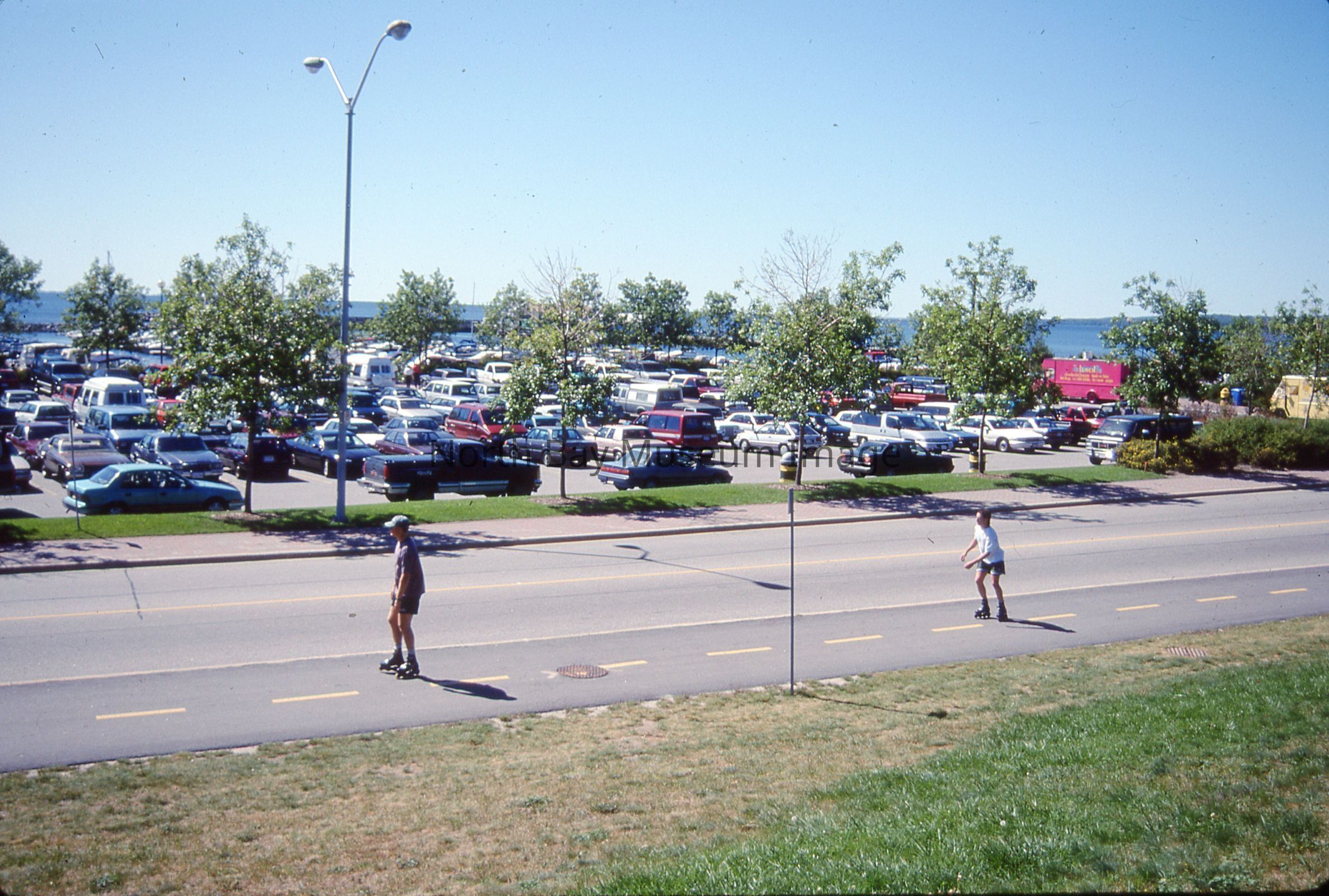 Envelope (a) containing negative (b-e) of North Bay Kate Pace Way by North Bay Waterfront. Photographer William Forder's original number was 95-032