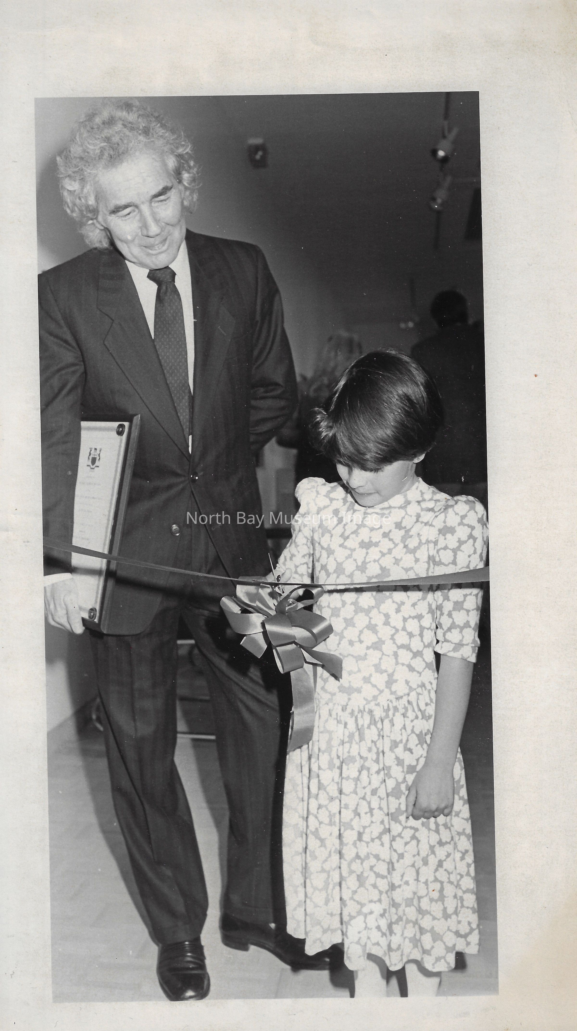 Jessica Kennedy, the great granddaughter of W K P Kennedy cuts the ribbon at the opening ceremony of the Kennedy Art Gallery. See Nugget article "All in the Family." April 30th, 1987. pp. 41