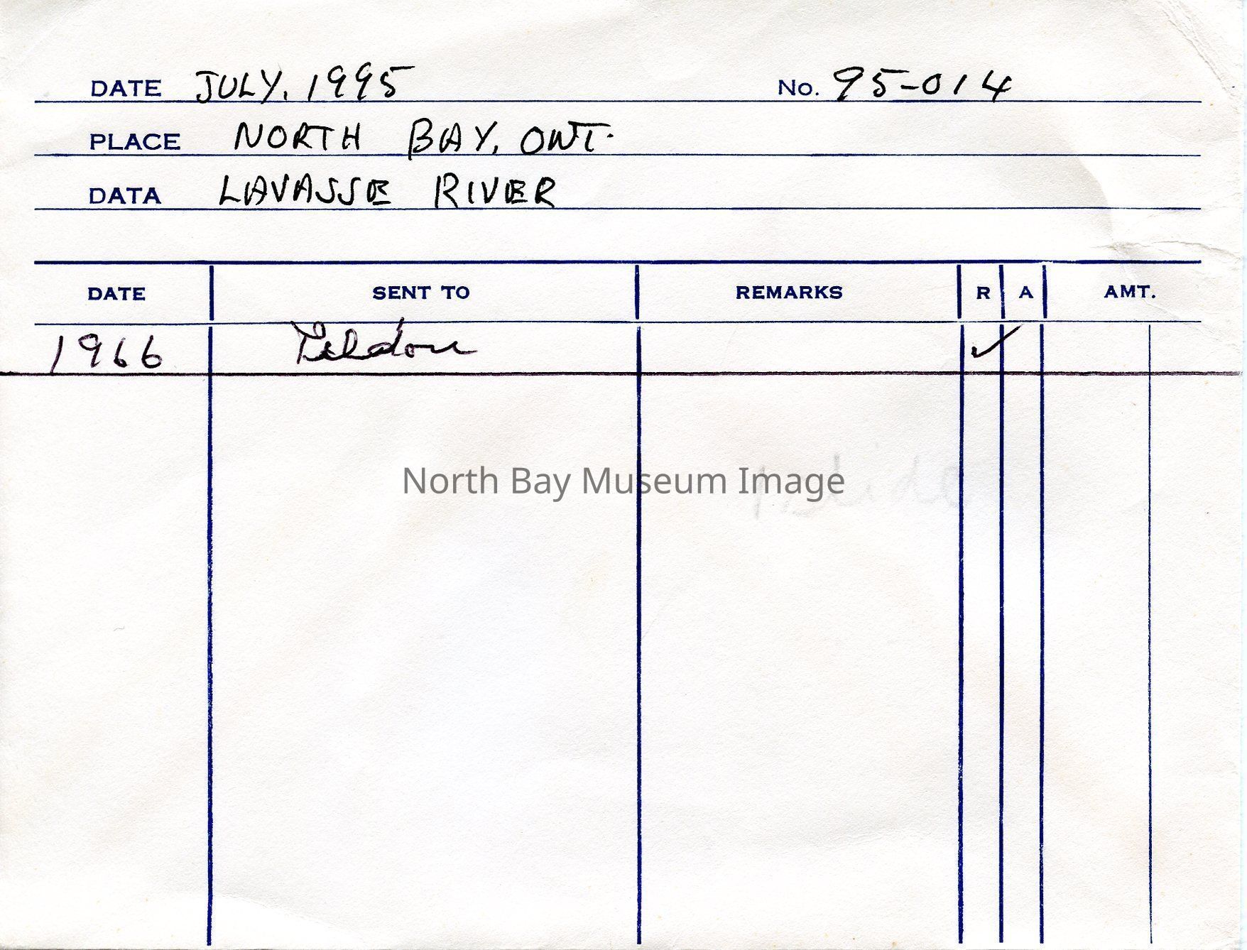 Envelope (a) containing photo (b) and negative (c) of La Vase River open water with snow.