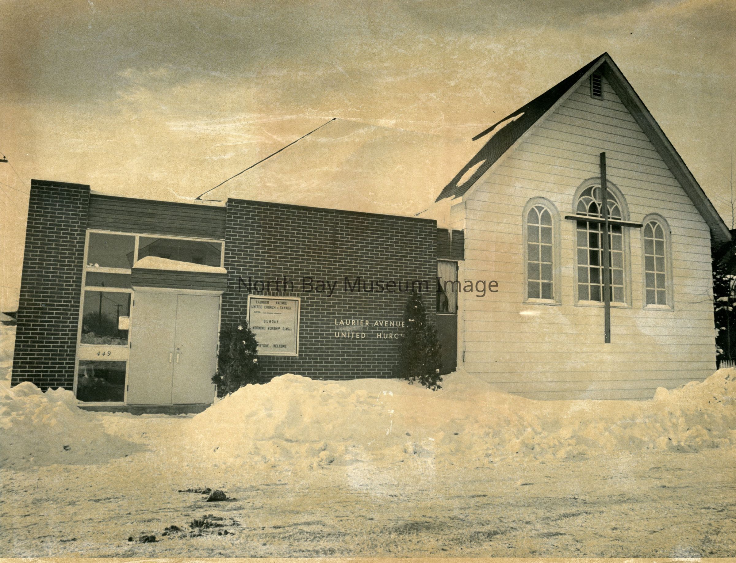 022.01.153d Laurier Avenue United Church celebrates 55 years of service. In article is a picture of the church in the winter time