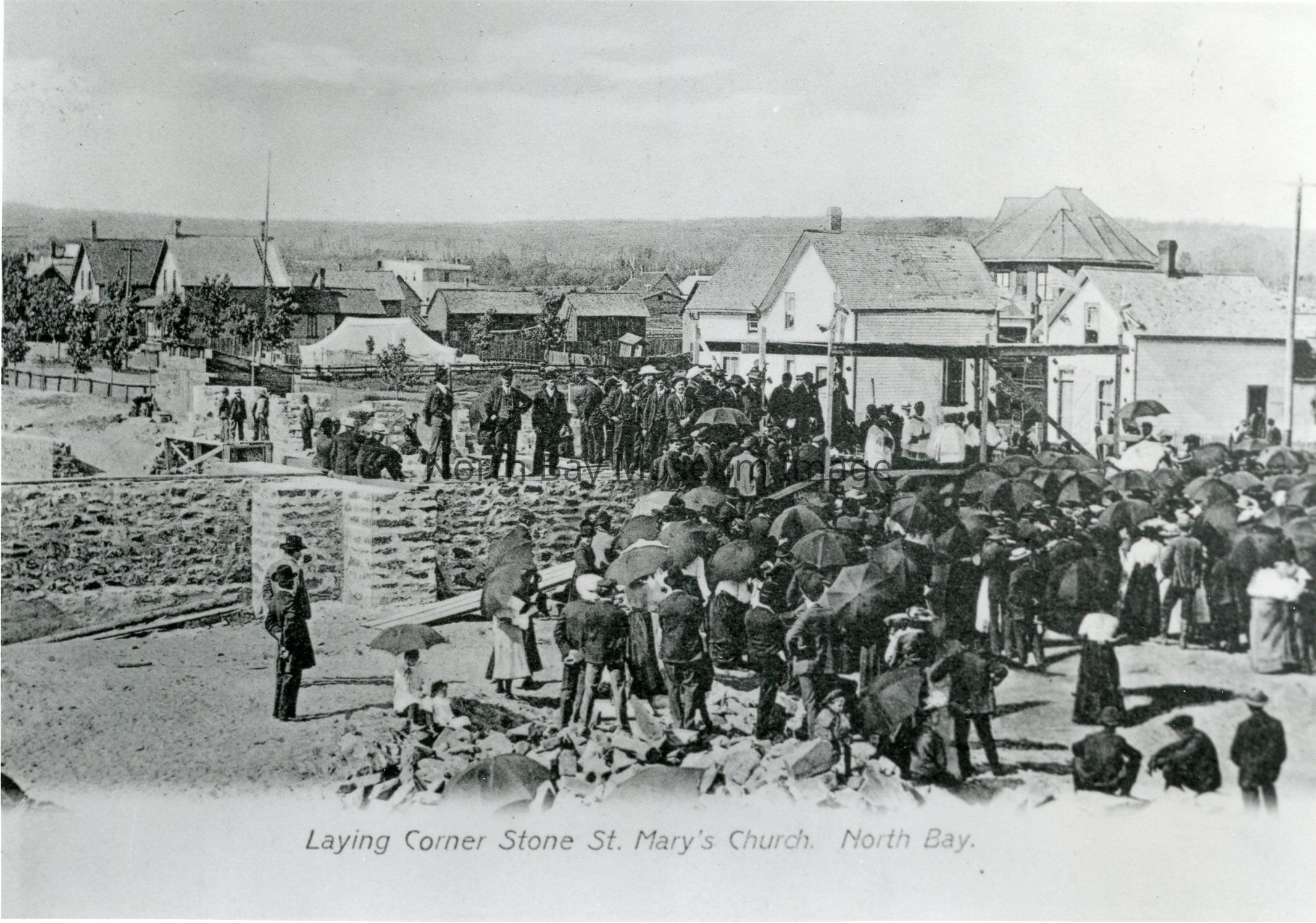 -Note: "Laying corner stone, St, Mary's Church, North Bay", printed