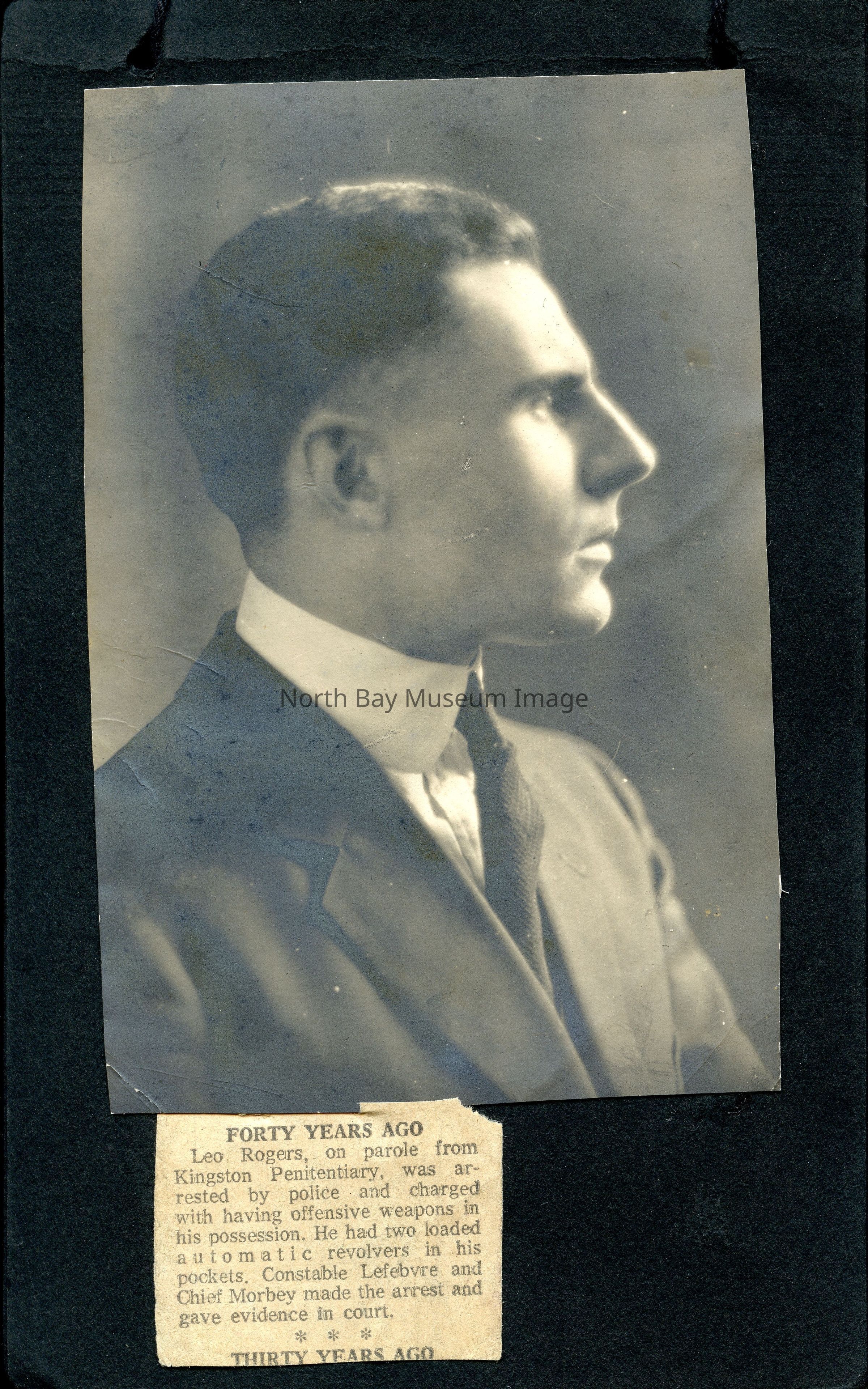 "I believe you are dealing with a criminal too dangerous to be at large," one time Chief of Police William Raynor, wrote in a letter to the parole board. Even as a teenager, "he was the worst man I ever had to deal with." He returned to North Bay after seven years and was soon in custody for robbery. Rogers escaped from the North Bay Court House May 17 th, 1923. Police suggested a loaded gun had somehow been slipped to him amid the lax security of a crowded 1920s courtroom. That night, the fugitive himself phoned police and invited them down into an ambush near the waterfront in West Ferris. In the ensuing gun battle, one officer was shot in the thigh. By midnight, a posse of 20 men was formed to spend the night guarding the area and looking out for the fugitive.