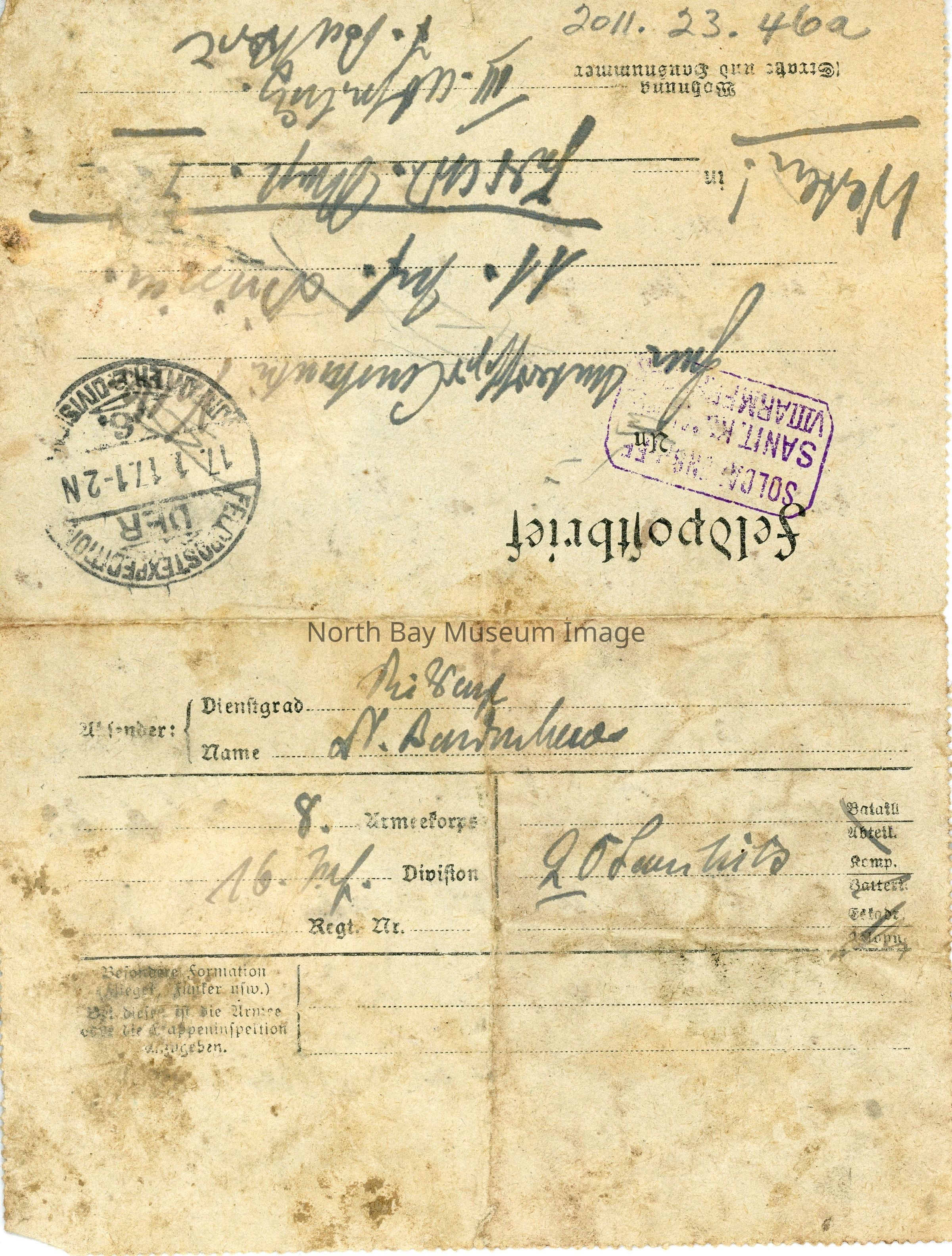 Letter written in German from Hubert B. to Constantin translated and transcribed in 2010.
