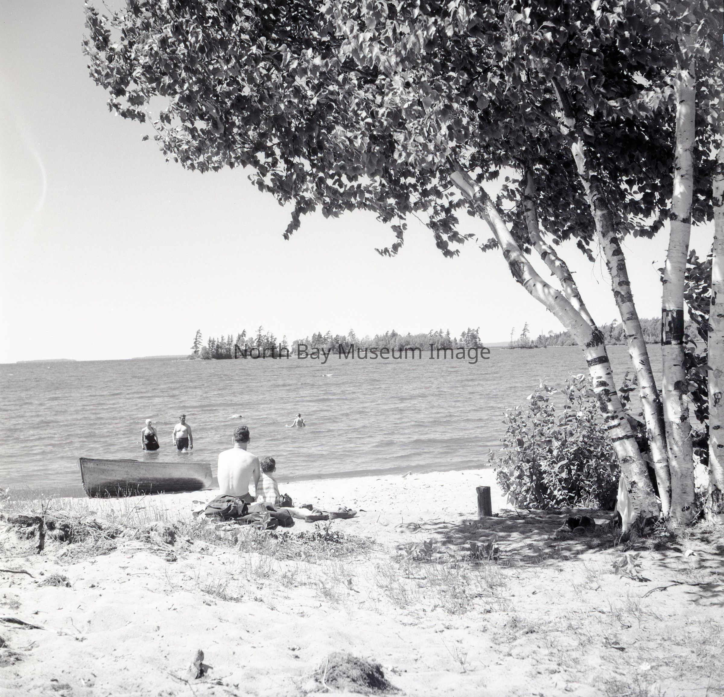 Envelope (a) containing photo and negative (b-c) of Lighthouse Beach with people swimming in the water. Forder's original number was 1A163. Envelope has places published listed on front.Creator
