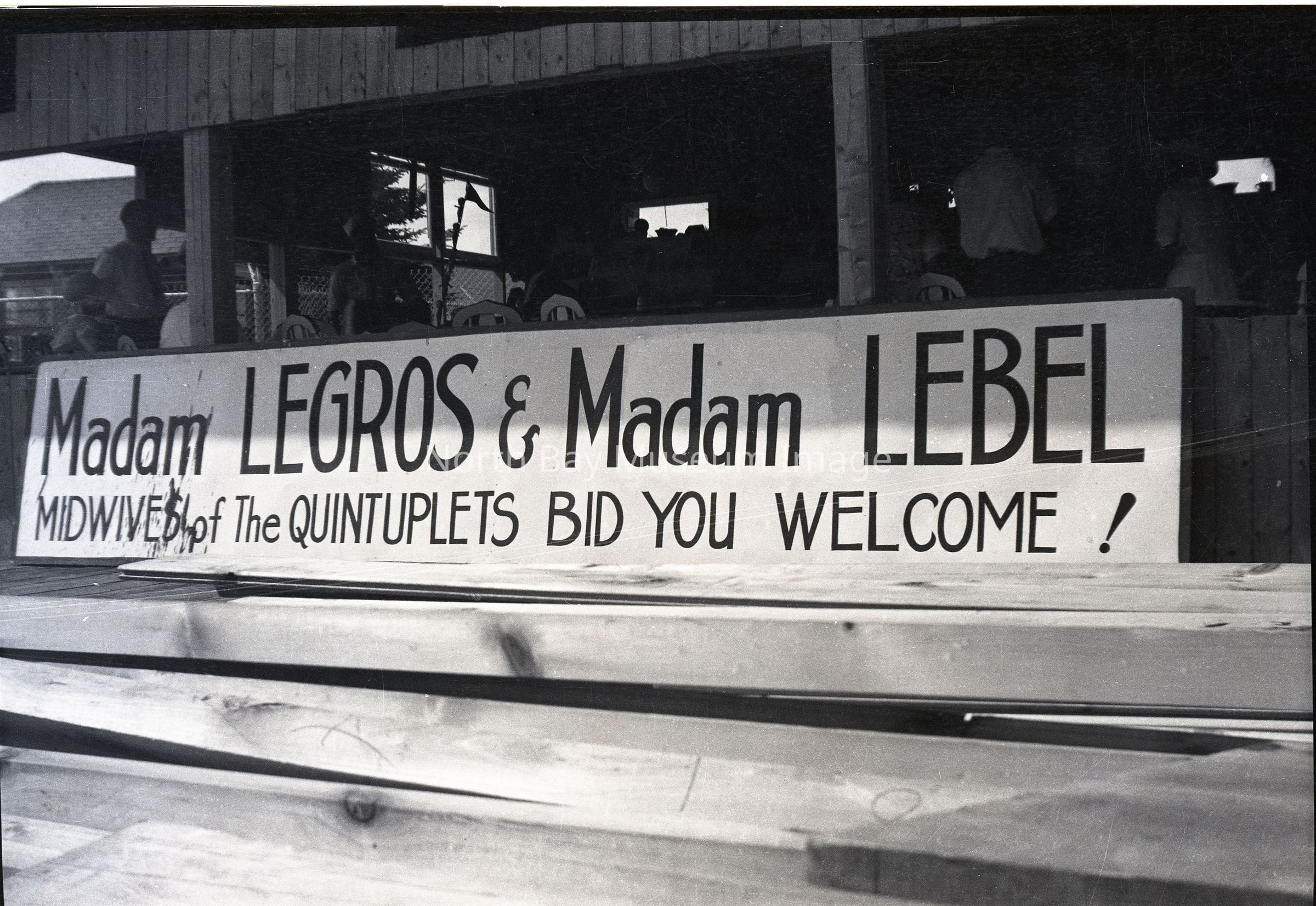 "Madam Legros and Madam Lebel: Midwives of the Quintuplets Bid You Welcome" SignEntry/Object ID